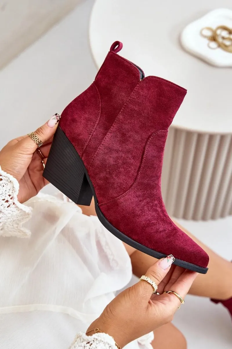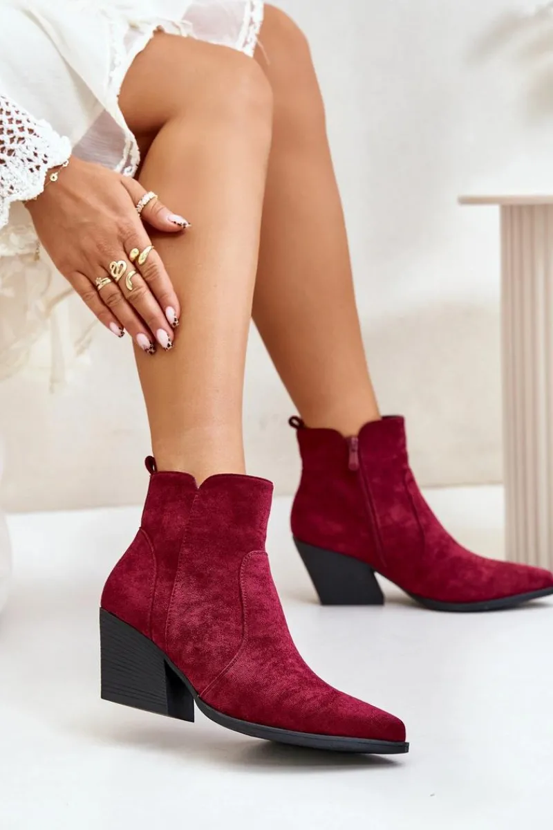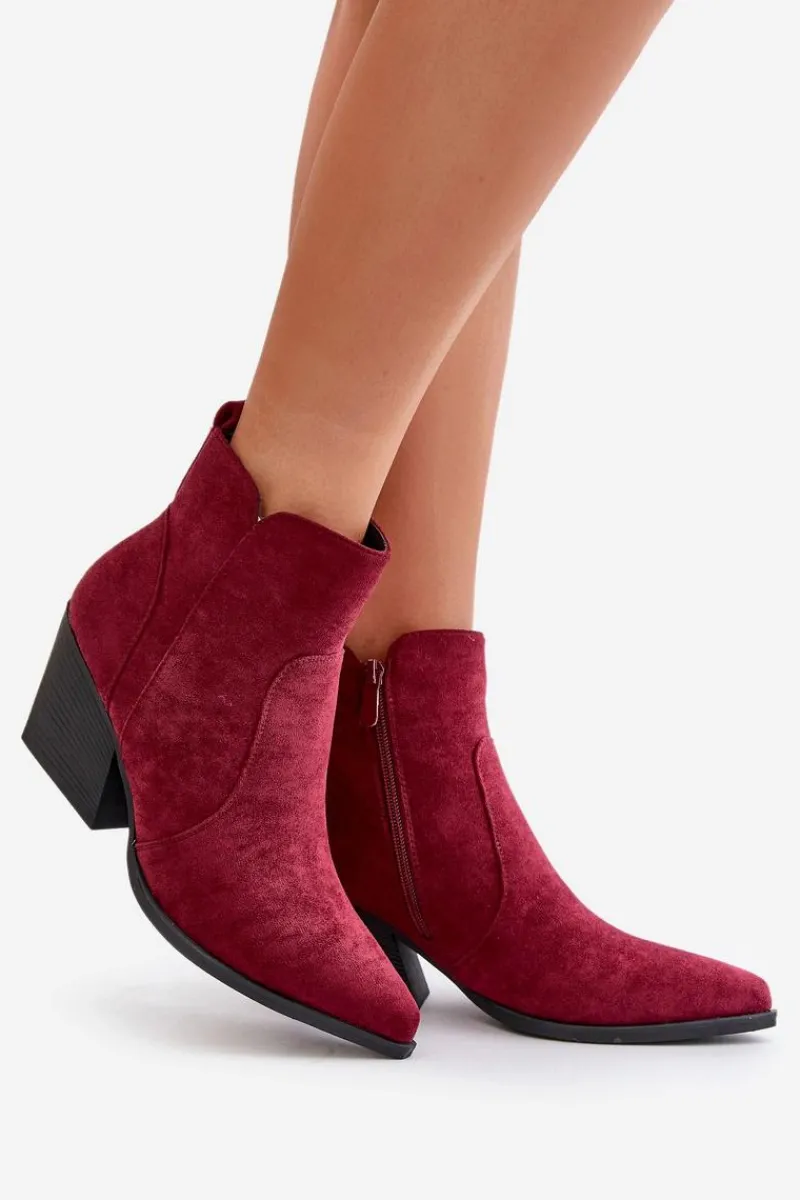 Botki w stylu kowbojek, wykonane z eko zamszu, to idealny wybór na chłodniejsze dni. Osadzone na stabilnym obcasie typu słupek, zapewniają komfort noszenia i elegancję. Szpiczaste noski optycznie wysmuklają nogi, dodając sylwetce lekkości. Wnętrze ocieplone kocem obuwniczym gwarantuje ciepło, a suwak ułatwia zakładanie i zdejmowanie butów. Idealne do jesiennych stylizacji. Przy wyborze rozmiaru prosimy sugerować się tabelą rozmiarów.