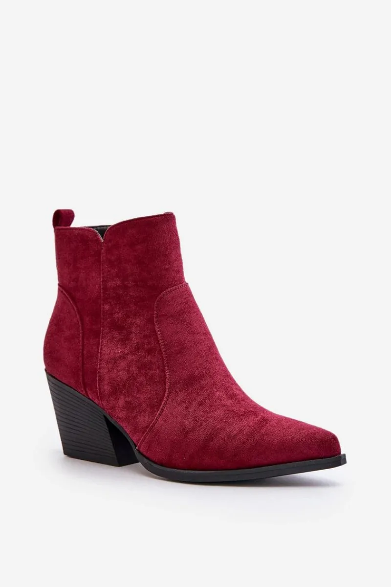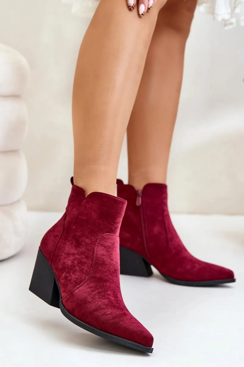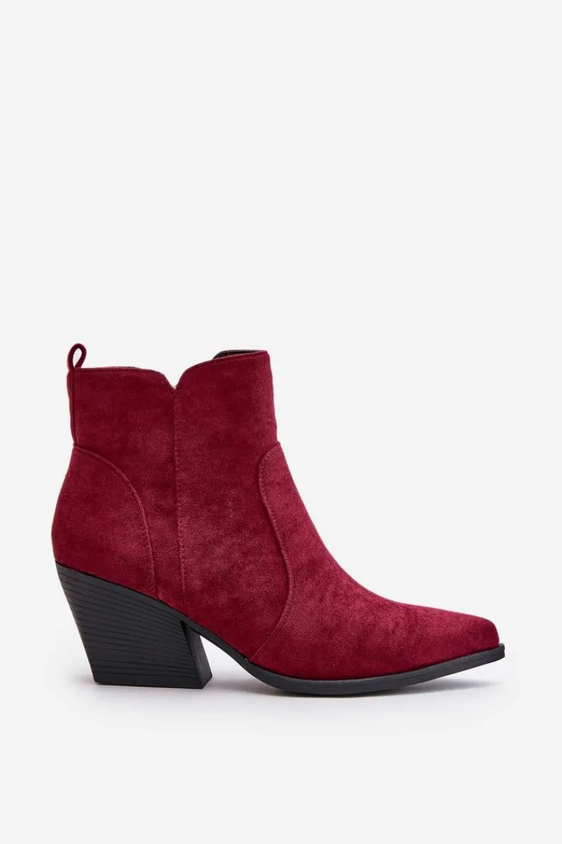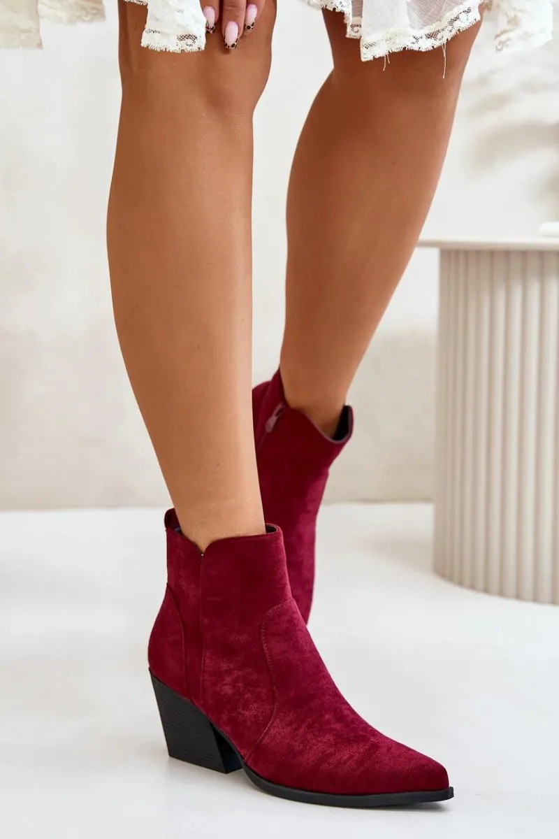 Botki w stylu kowbojek, wykonane z eko zamszu, to idealny wybór na chłodniejsze dni. Osadzone na stabilnym obcasie typu słupek, zapewniają komfort noszenia i elegancję. Szpiczaste noski optycznie wysmuklają nogi, dodając sylwetce lekkości. Wnętrze ocieplone kocem obuwniczym gwarantuje ciepło, a suwak ułatwia zakładanie i zdejmowanie butów. Idealne do jesiennych stylizacji. Przy wyborze rozmiaru prosimy sugerować się tabelą rozmiarów.