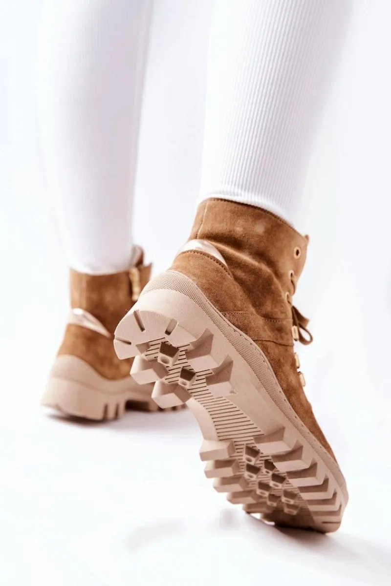 Trapero-botki zostały wykonane z naturalnej skóry. Posiadają traperową, grubą podeszwę, która będzie idealnie izolować od zimnego podłoża. Wiązanie sprawia, że można dopasować je do tęgości nogi. Buty w środku posiadają ocieplenie w postaci koca obuwniczego oraz sztywny zapiętek. Sprawdź pozostałą naszą ofertę ocieplanych botków! Przy wyborze rozmiaru prosimy sugerować się tabelą rozmiarów.