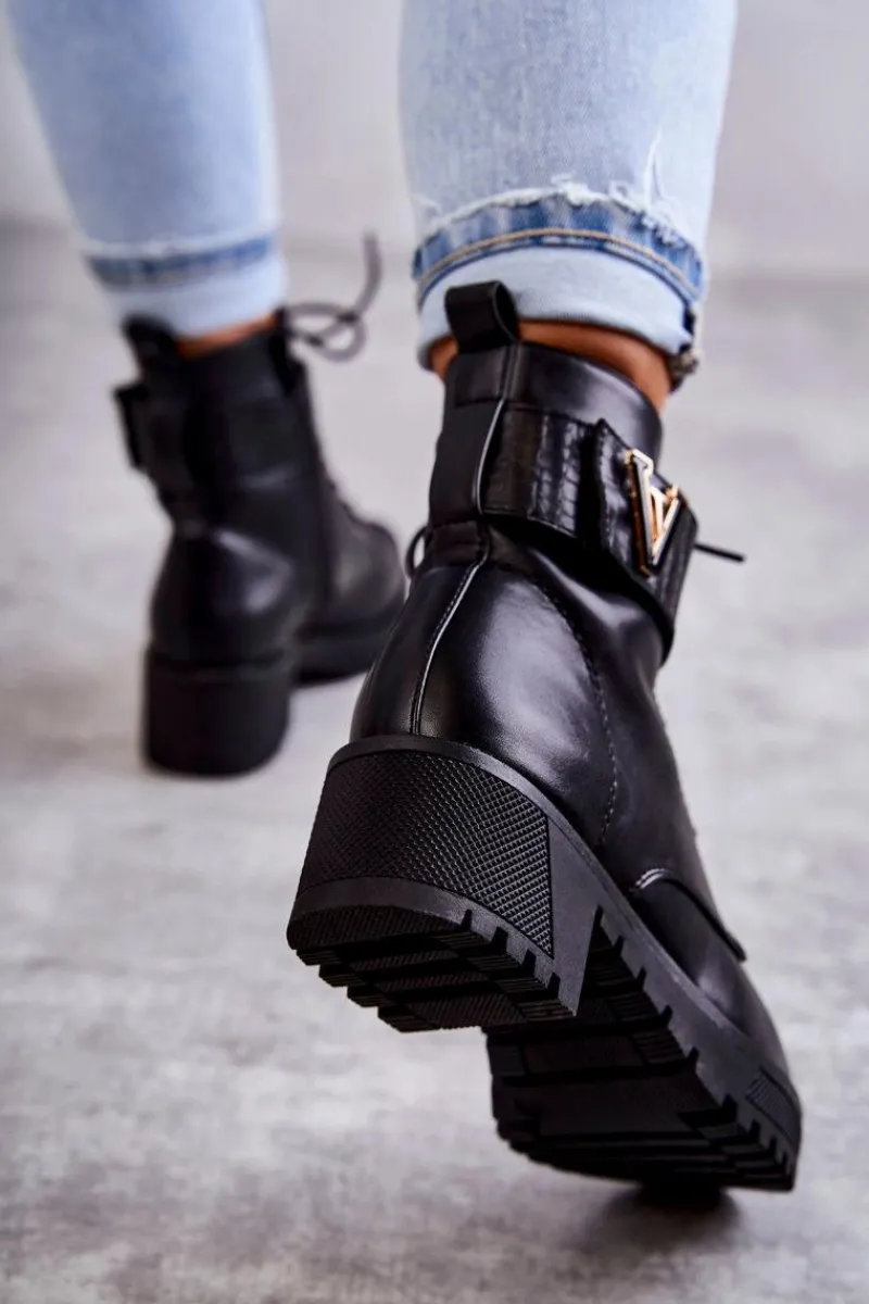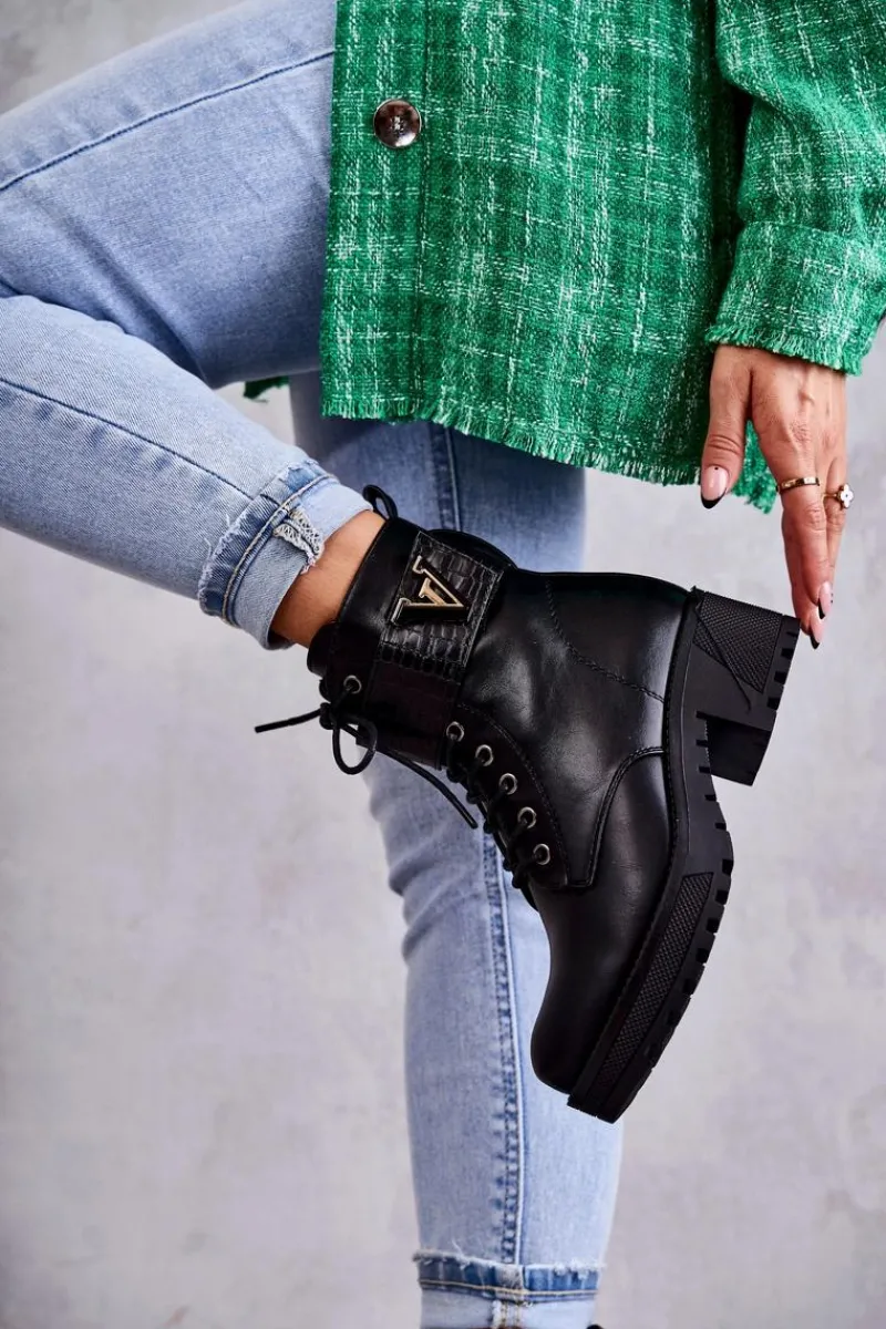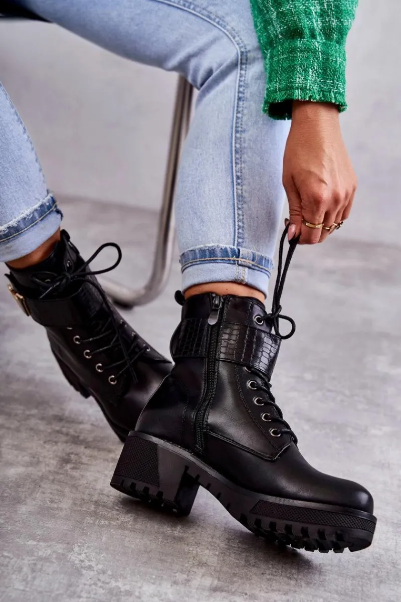 Ocieplane botki – workery świetnie sprawdzą podczas sezonu jesiennego. Zostały wykonane z eko skóry. Posiadają usztywniany zapiętek. Model z klasycznym wiązaniem oraz suwakiem z boku cholewki. Dodatkowo posiadają pasek na rzep z emblematem. Osadzone na platformie z płaskim obcasem. W środku znajduje się koc obuwniczy, który świetnie ochroni przed zimnem. Przy wyborze rozmiaru prosimy sugerować się tabelą rozmiarów.