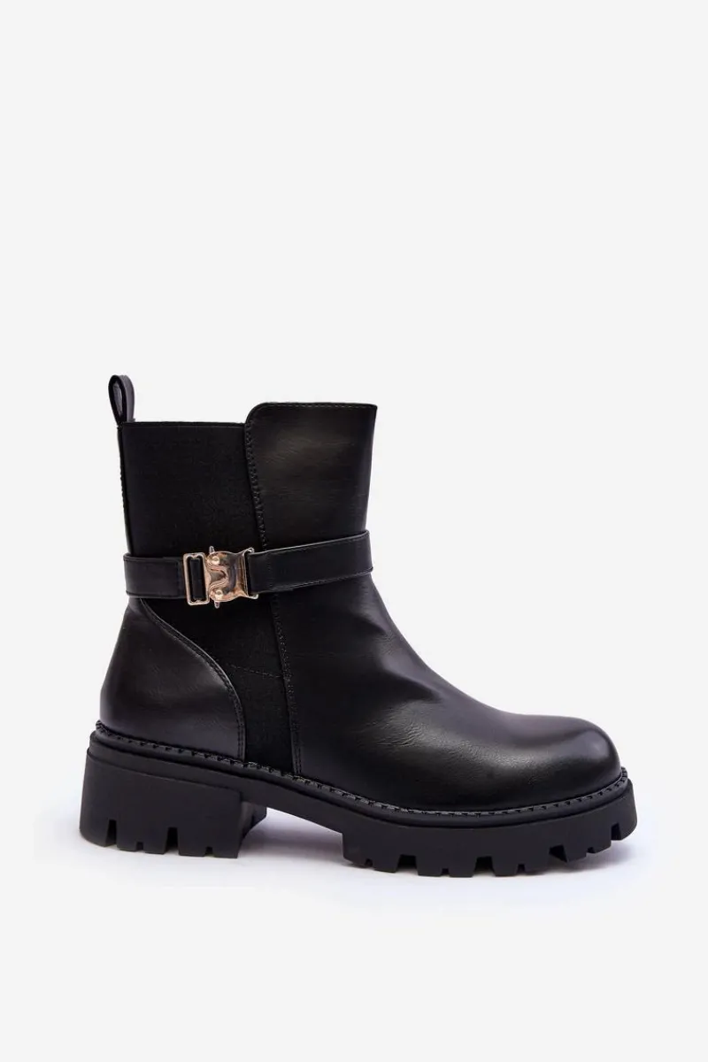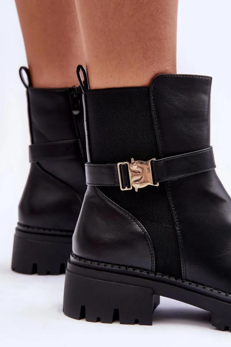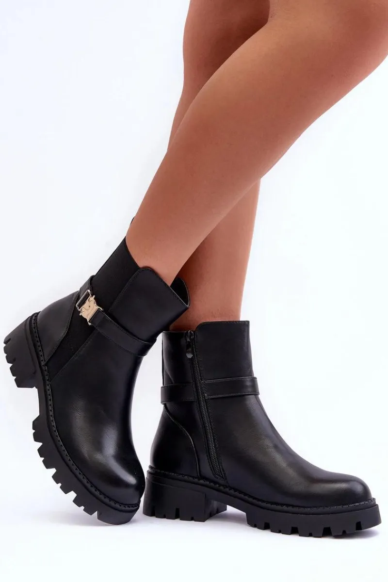 Klasyczne damskie sztyblety zostały wykonane z eko skóry. Zapinane na suwak z boku buta. Wewnątrz ocieplone kocem obuwniczym. Na cholewce znajduje się pasek z ozdobą. Model ten osadzony jest masywnej platformie i płaskim obcasie. Zapiętek jest usztywniony. Buty te świetnie sprawdzą się w sezonie wiosenno-jesiennym. Przy wyborze rozmiaru prosimy sugerować się tabelą rozmiarów.