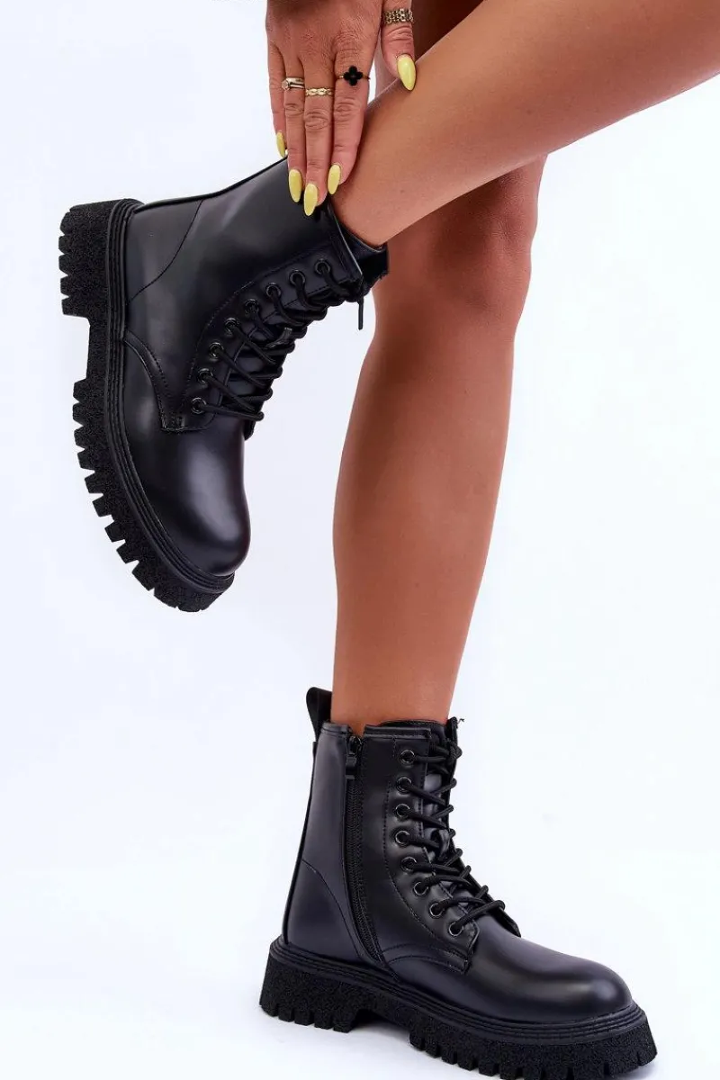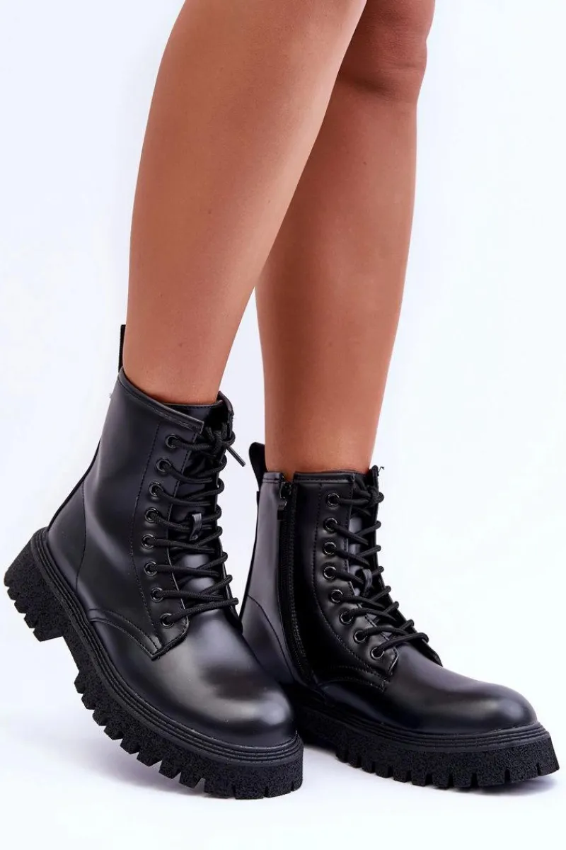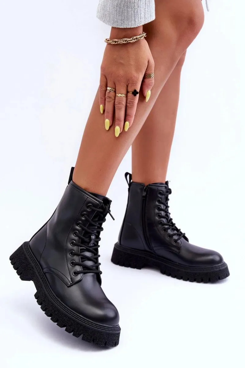 Wygodne botki damskie zostały wykonane eko skóry. Osadzone na masywnej platformie i płaskim obcasie. Posiadają zapinanie z boku na suwak oraz dodatkowe sznurowanie Zapiętek w tym obuwiu jest usztywniany. Model ten jest idealny na jesienne dni! Koniecznie powinnaś je mieć w swojej szafie! Przy wyborze rozmiaru prosimy sugerować się tabelą rozmiarów.