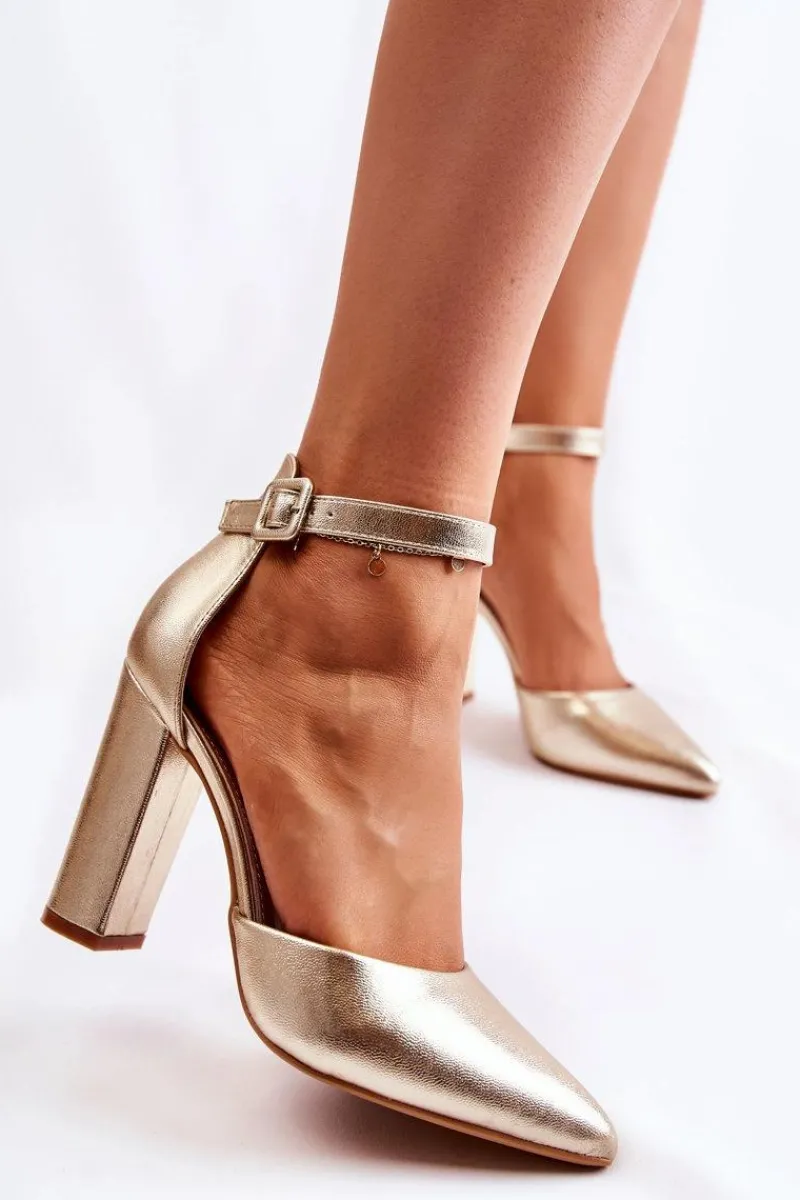 Hot Boto Skórzane Czółenka Na Wysokim Słupku Złote Salira