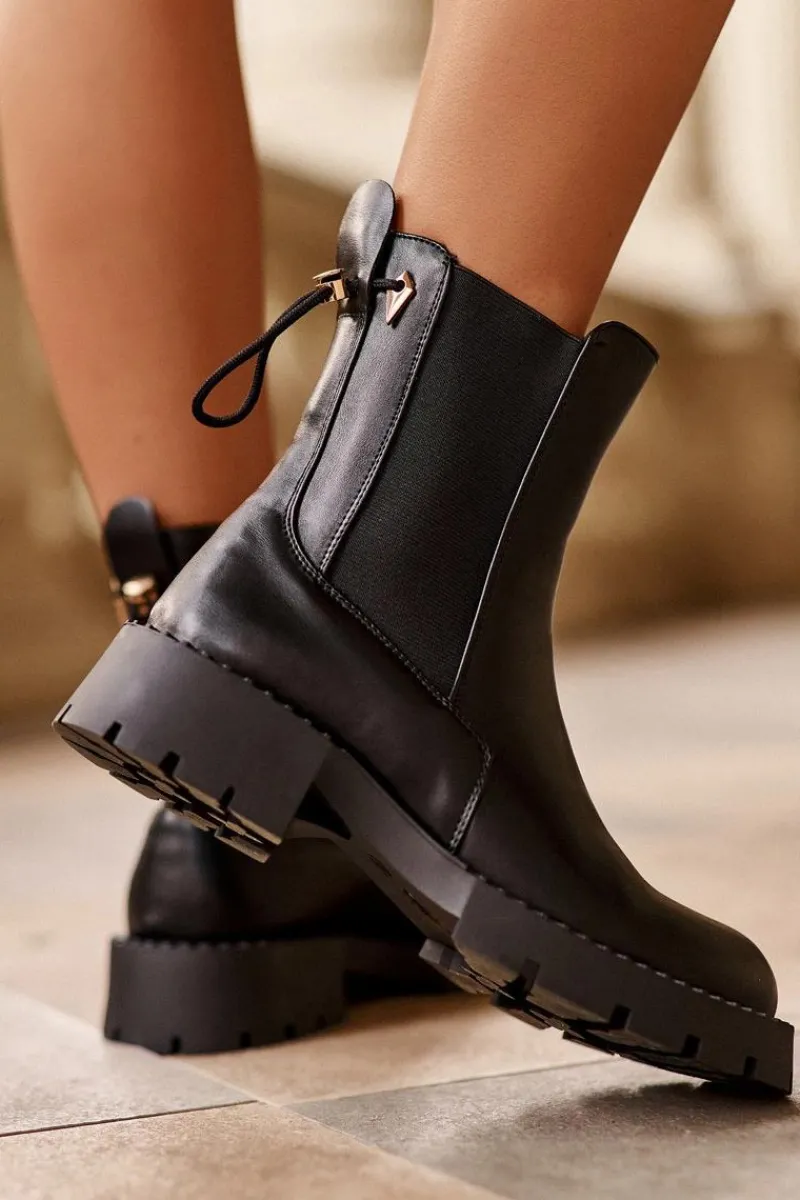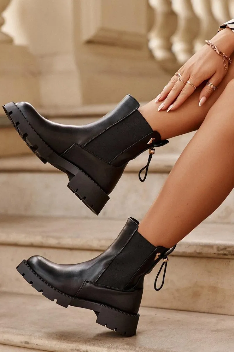 Hot Boto Skórzane Klasyczne Sztyblety Botki Damskie Czarne Harleia
