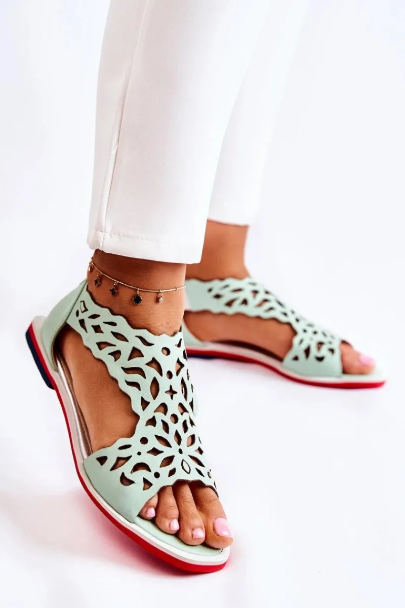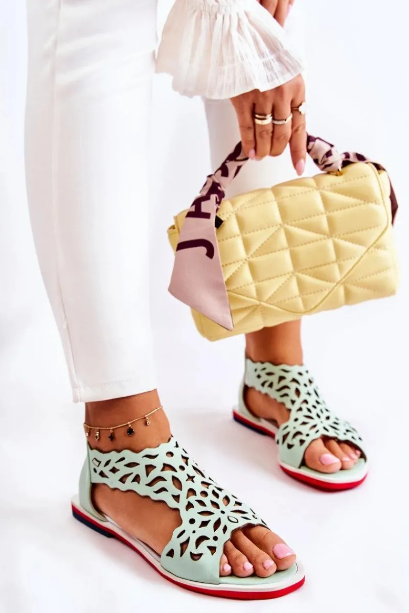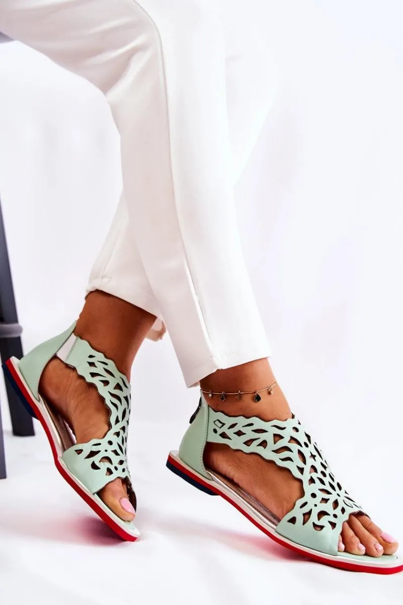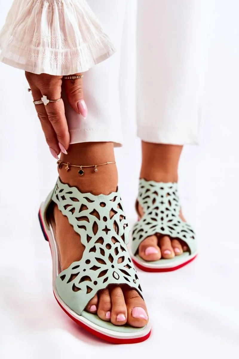 Hot Boto Skórzane Lekkie Ażurowe Sandały Zielone Alima