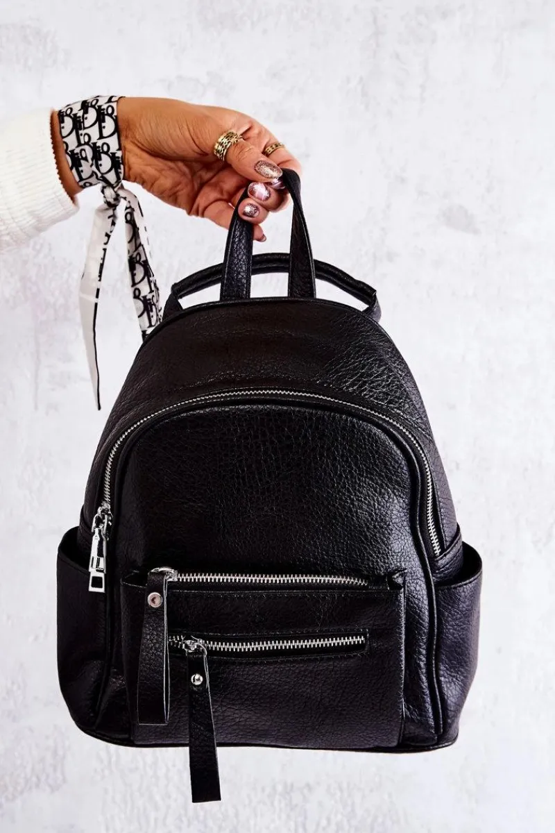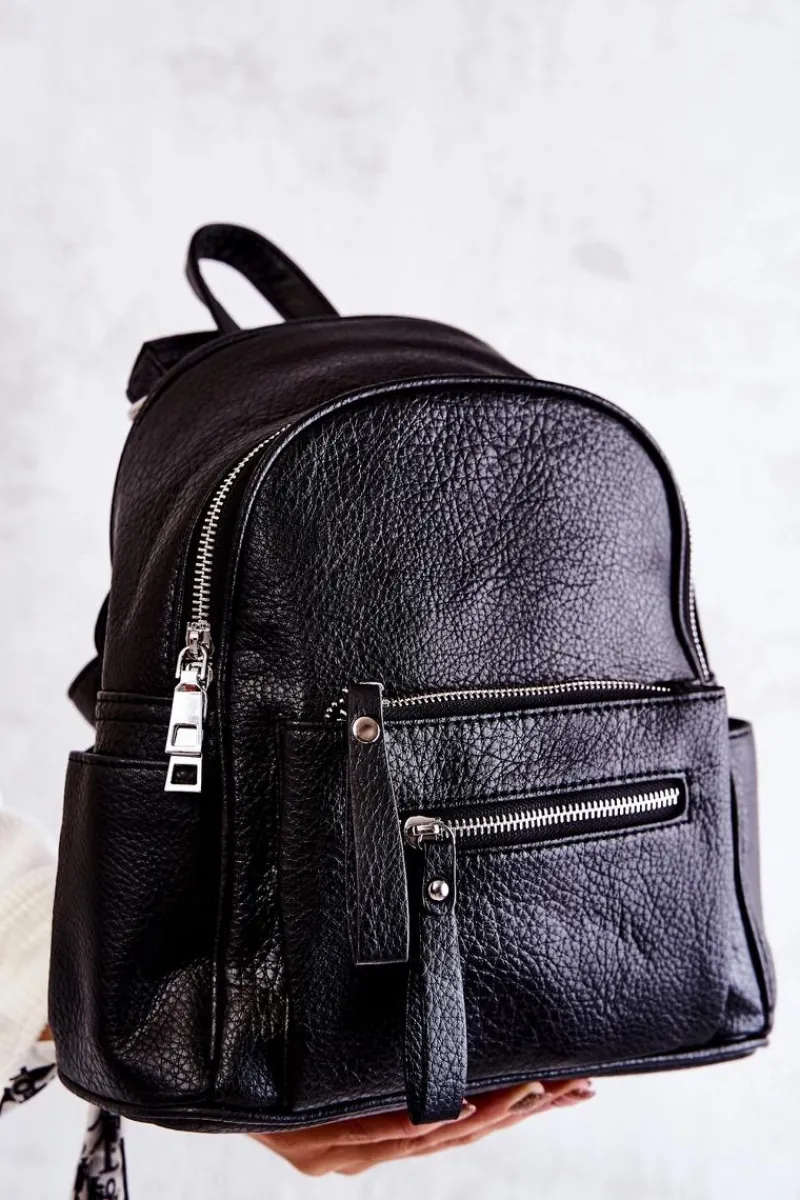 Świetny plecak na różne podróże – te małe i te duże! Idealnie sprawdzi się podczas wycieczek rowerowych, na spotkanie z przyjaciółmi czy niewielkie zakupy! Posiada dużą komorę zapinaną na suwak, w której znajduje się mała otwarta kieszeń oraz kieszeń zapinana na suwak. Po bokach plecaka znajdują się otwarte kieszenie. Z zewnętrznej strony plecak posiada dwie kieszonki zapinane na suwak – jedną mniejszą, drugą większą. Na tyle natomiast znajduje się także jedna kieszeń zapinana na suwak. Paski plecaka są regulowane, dlatego możesz go odpowiednio dopasować do własnych potrzeb. Został wykonany z zewnątrz z eko skóry, natomiast środek jest wykonany z tkaniny.