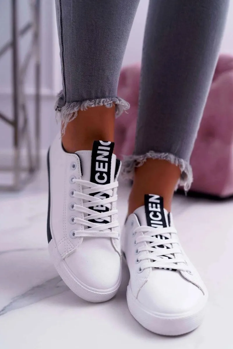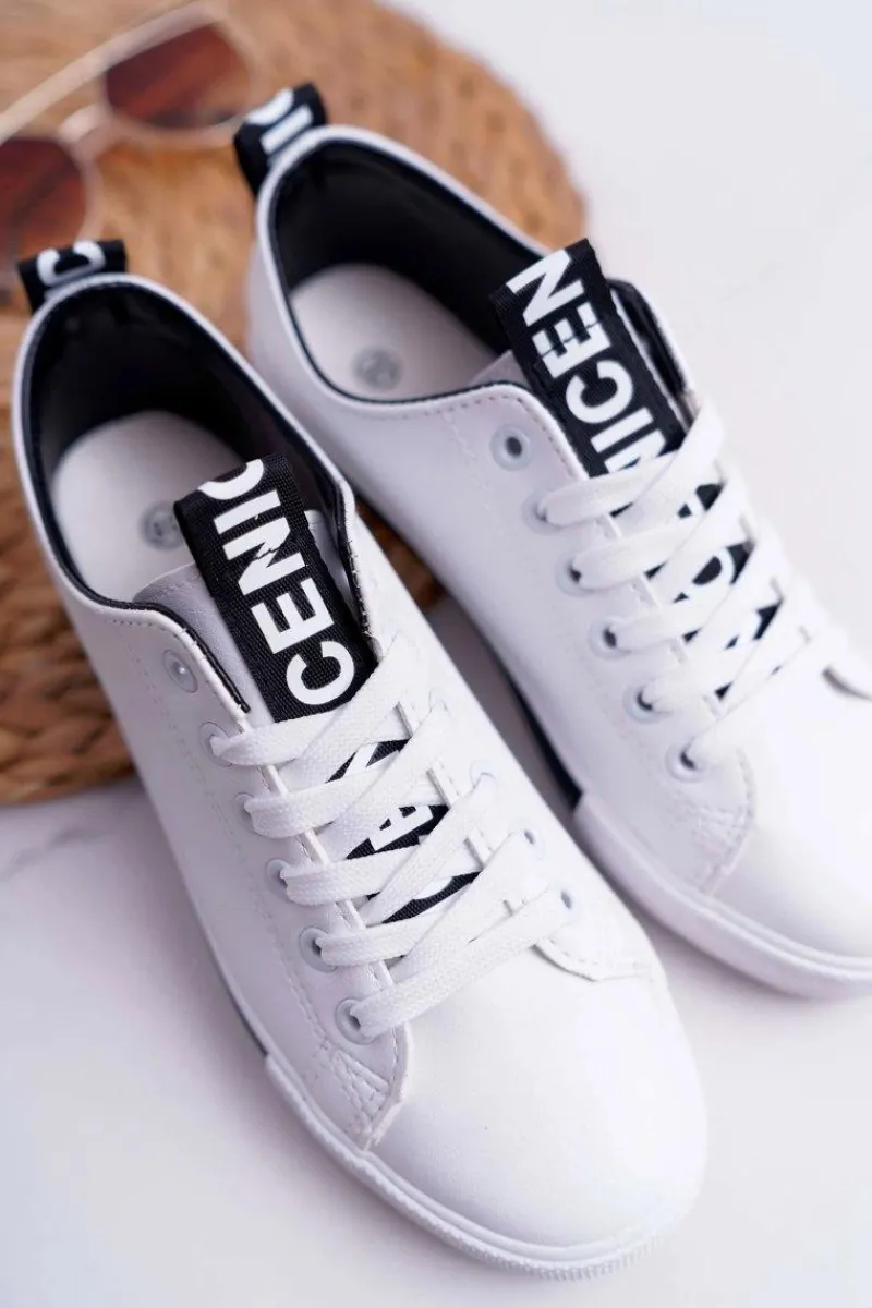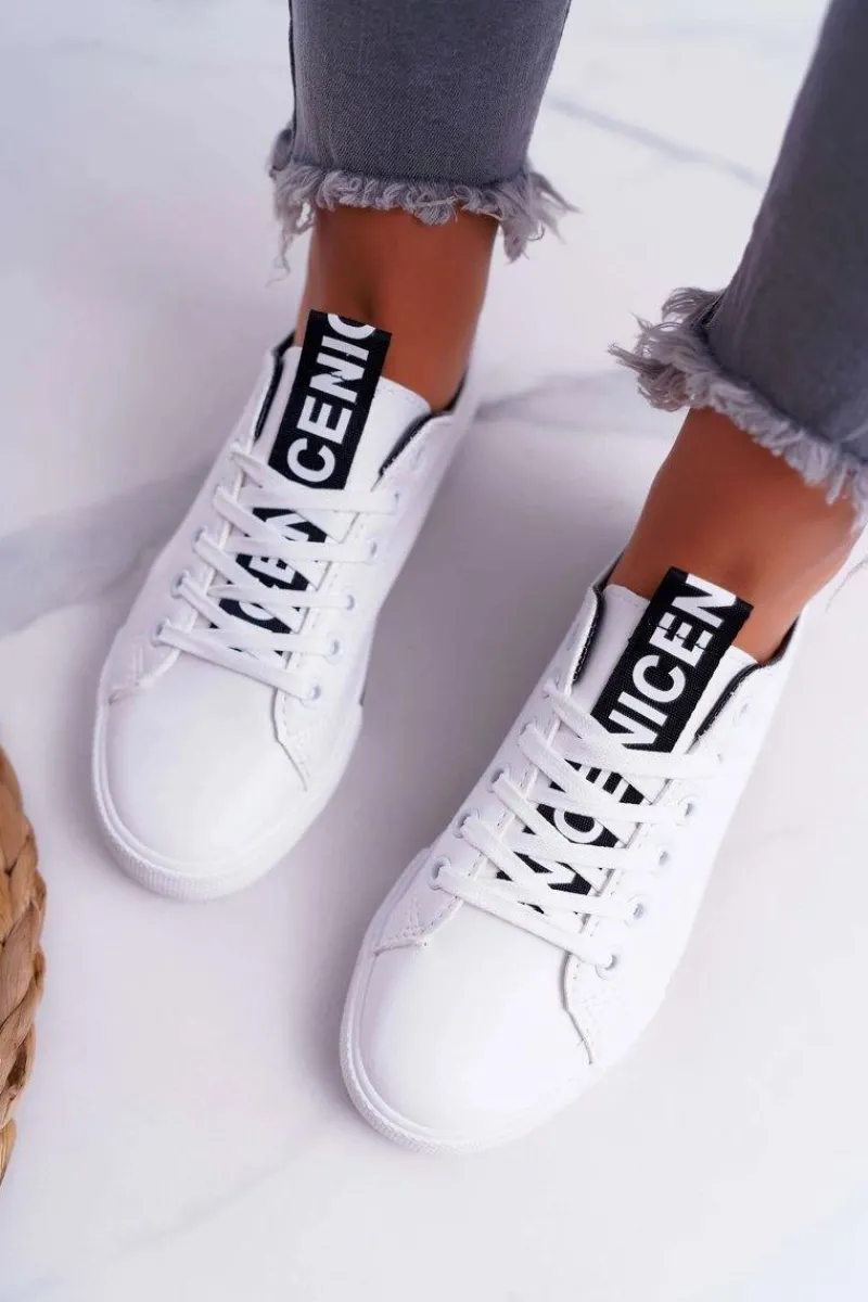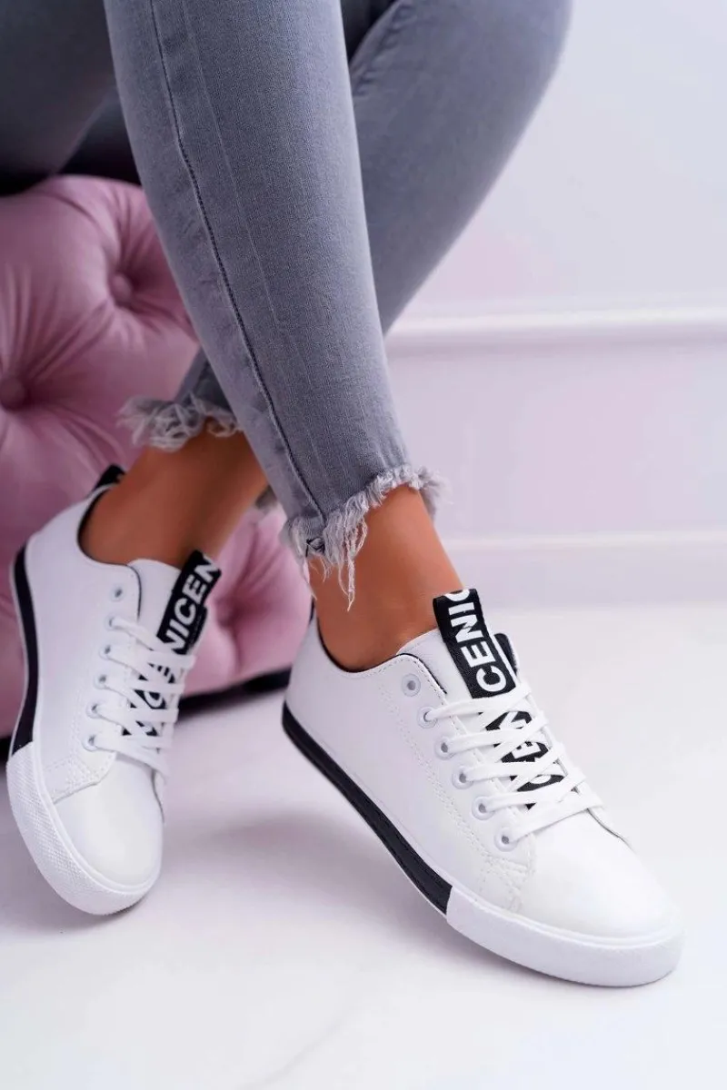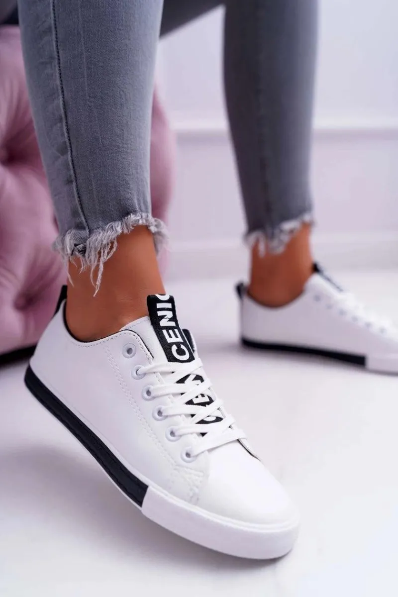 Hot Boto Trampki Damskie Białe Czarny Pasek Nigrid