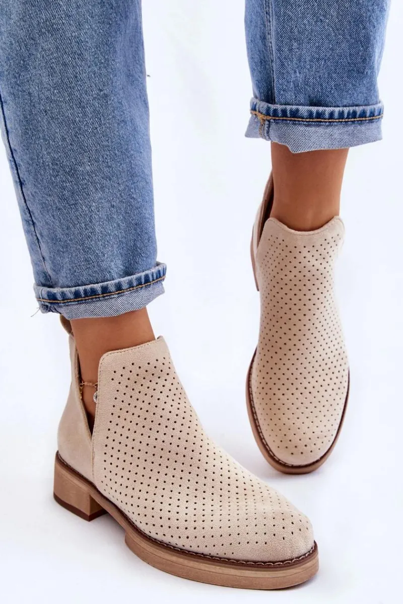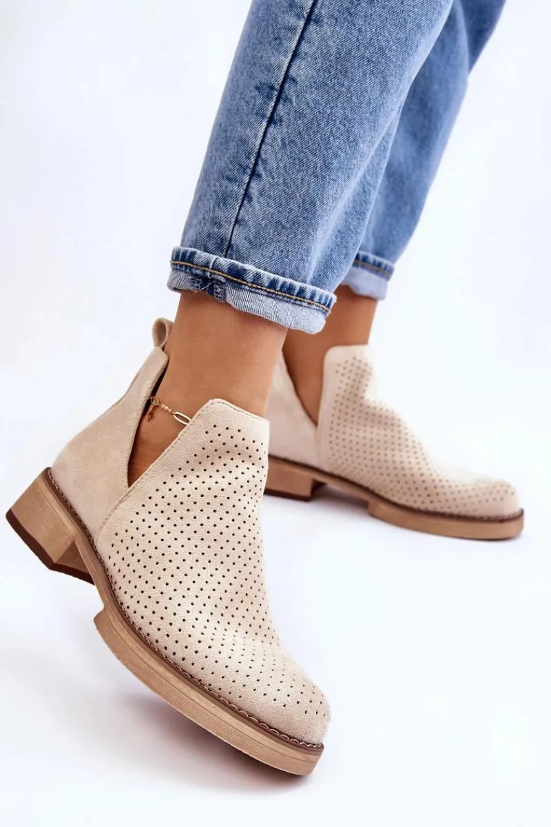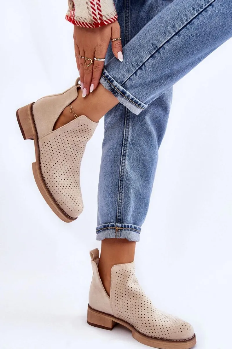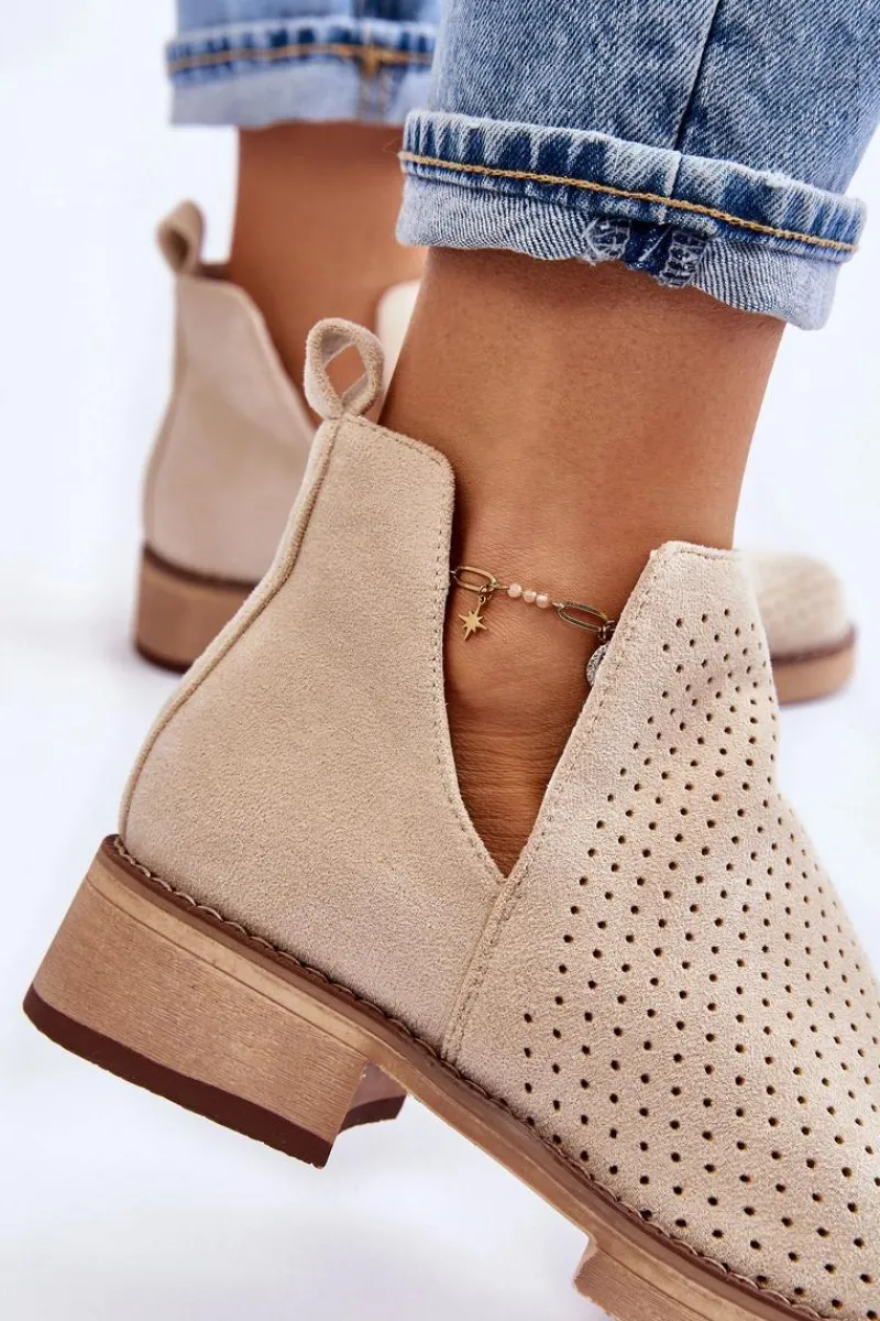Hot Boto Zamszowe Ażurowe Botki Na Płaskim Obcasie Beżowe Angie