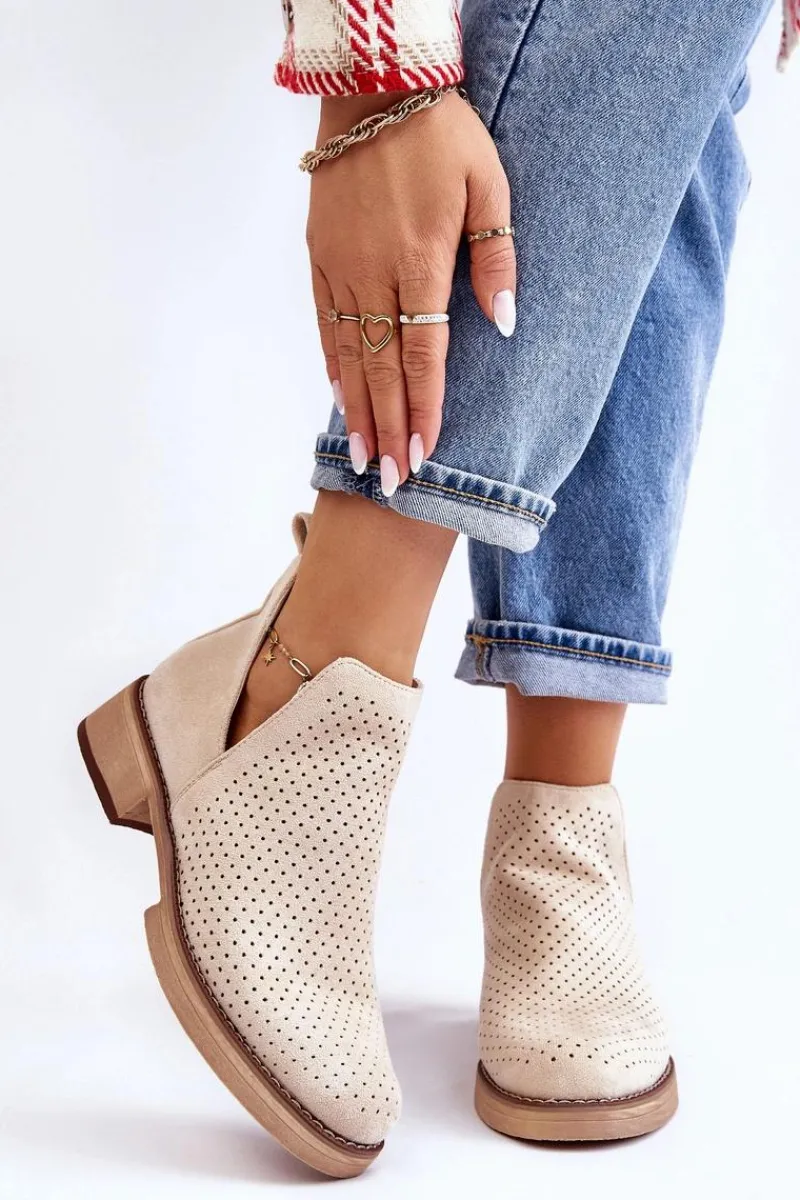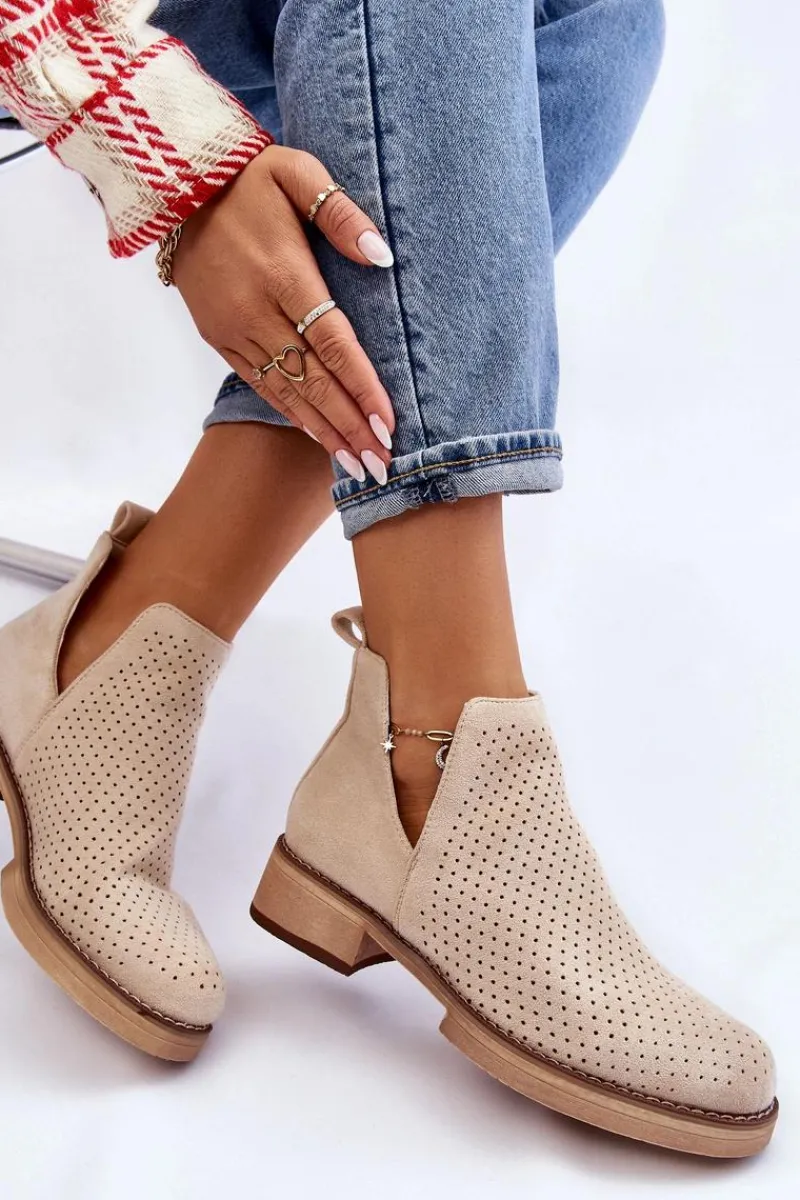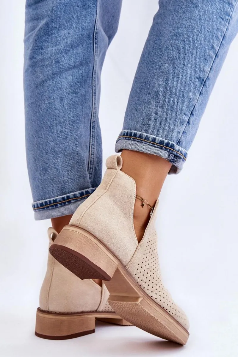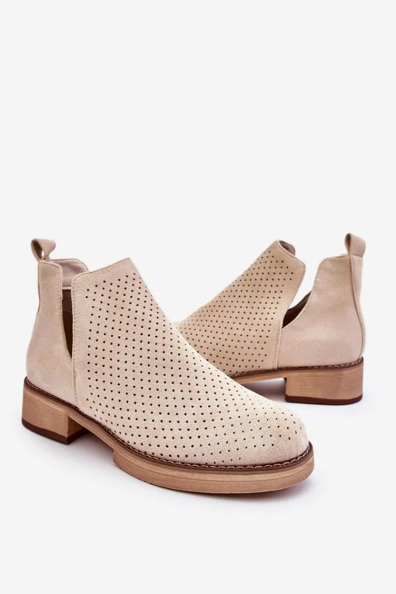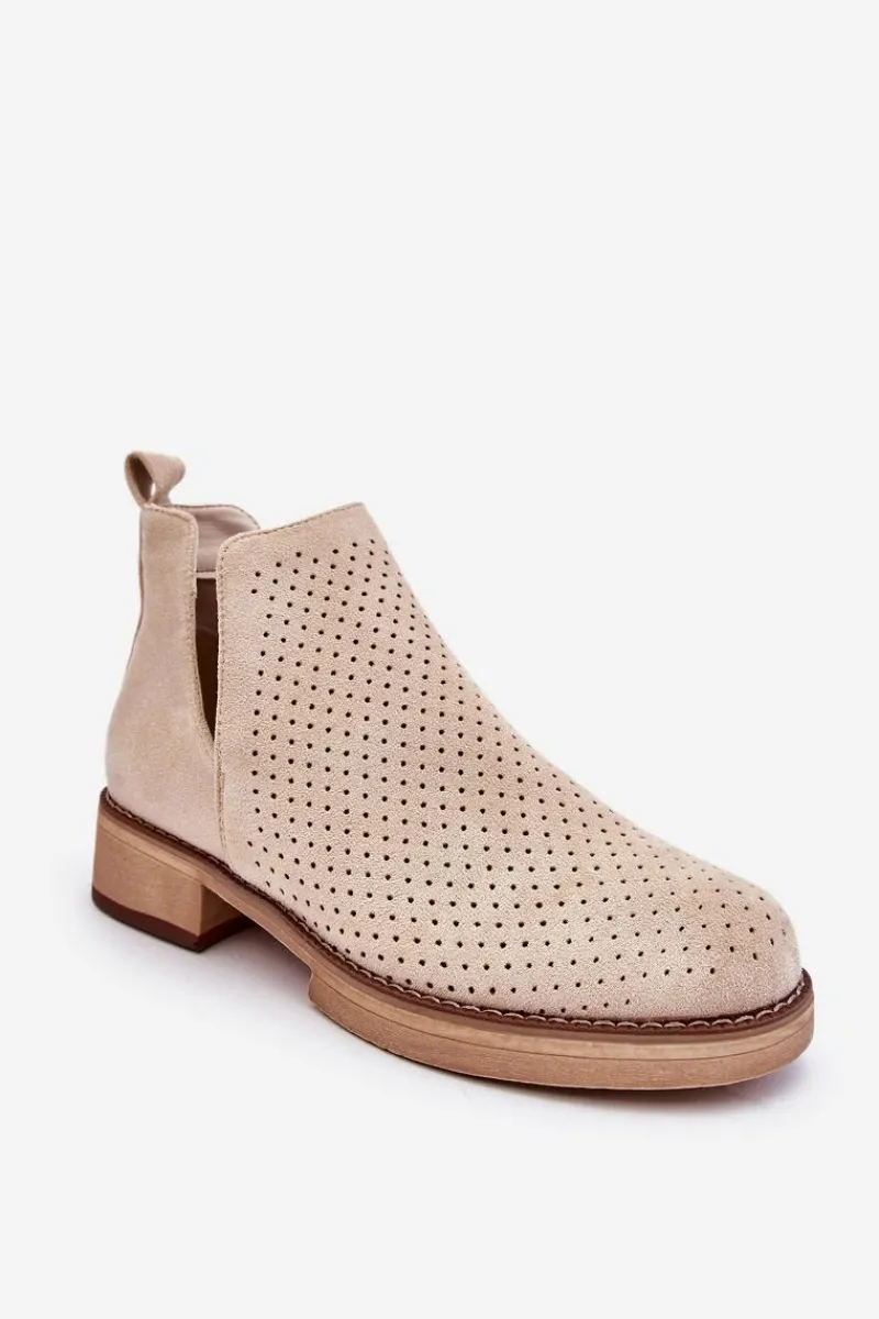 Hot Boto Zamszowe Ażurowe Botki Na Płaskim Obcasie Beżowe Angie