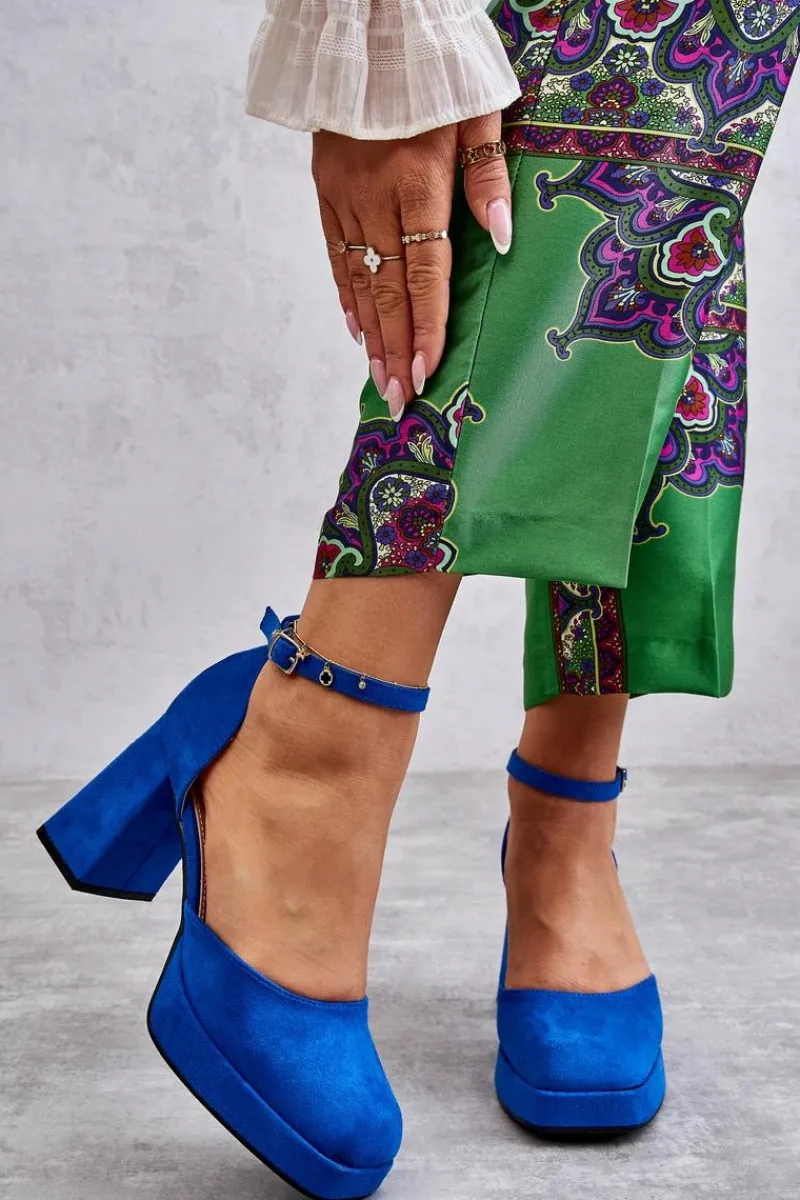 Wyjątkowe czółenka wykonane z wysokiej jakości eko skóry. Posiadają regulowany pasek zapinany na sprzączkę. Osadzone na masywnym, wyższym obcasie w postaci klocka. Zapiętek jest usztywniany, a nosek kwadratowy. Miękka wkładka z eko skóry zapewni wygodę podczas użytkowania. Dodatkowo buty posiadają delikatną platformę. Przy wyborze rozmiaru prosimy sugerować się tabelą rozmiarów.