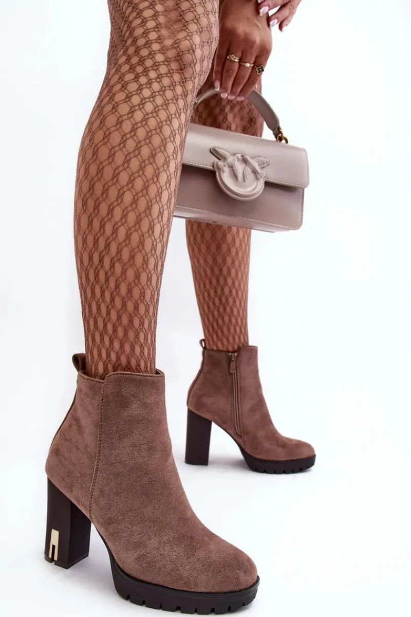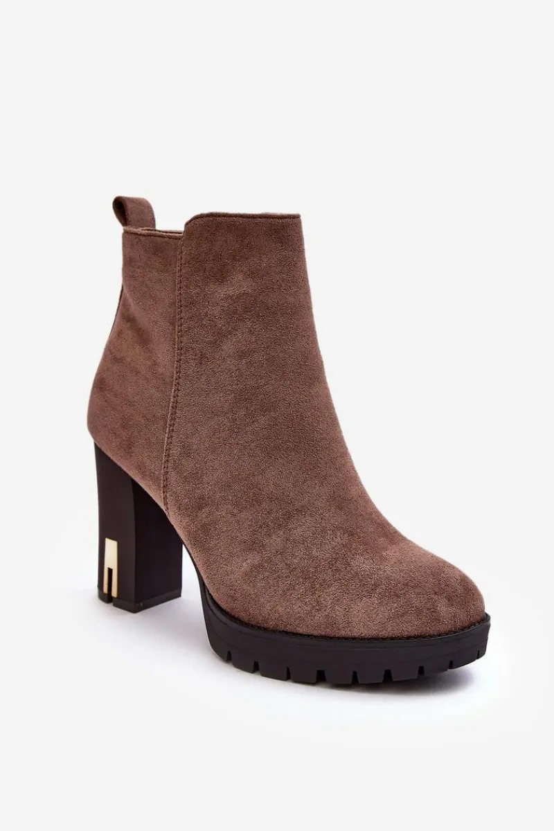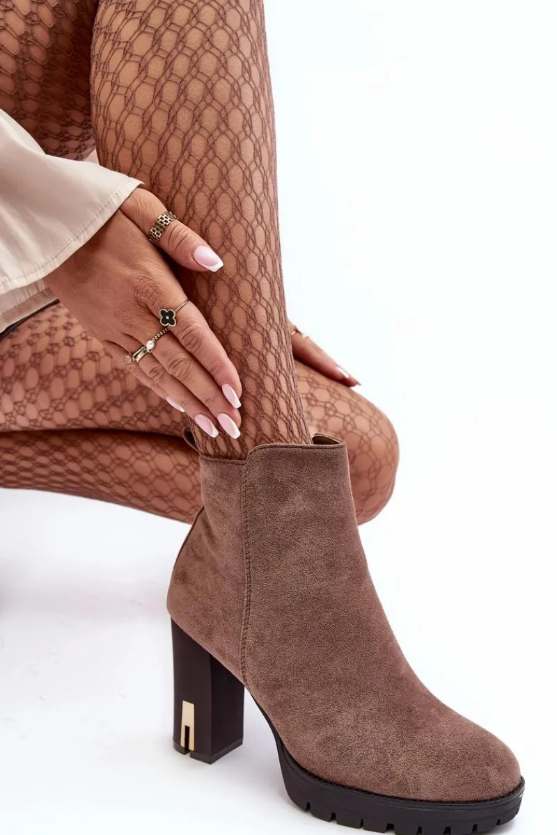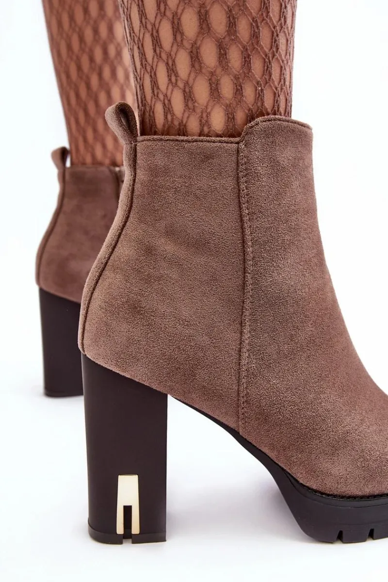 Klasyczne botki damskie zostały wykonane z miłego w dotyku eko zamszu. Osadzone na obcasie w postaci słupka. Buty te posiadają migdałowy nosek oraz usztywniany zapiętek. Model z suwakiem z boku cholewki. W środku nie posiadają ocieplenia, natomiast wkładka została wykonana z eko skóry. Przy wyborze rozmiaru prosimy sugerować się tabelą rozmiarów.