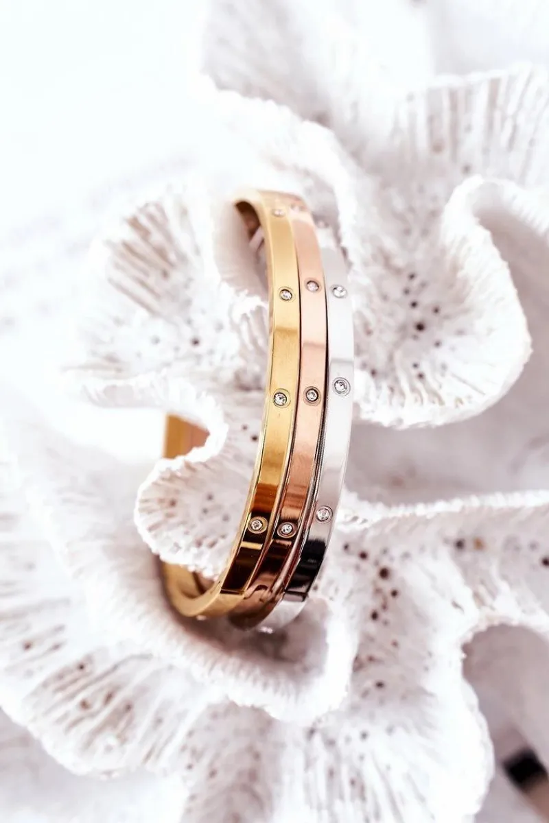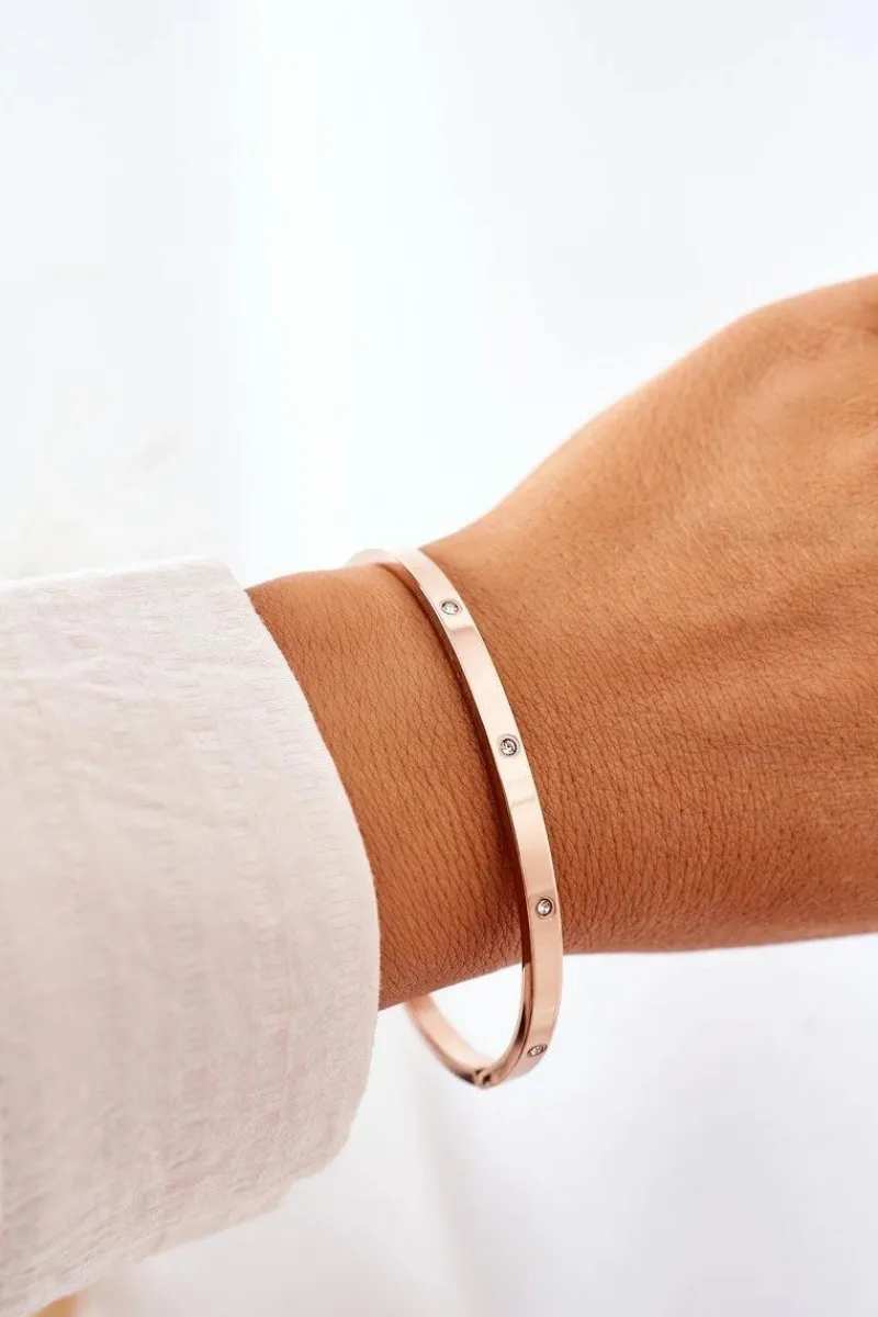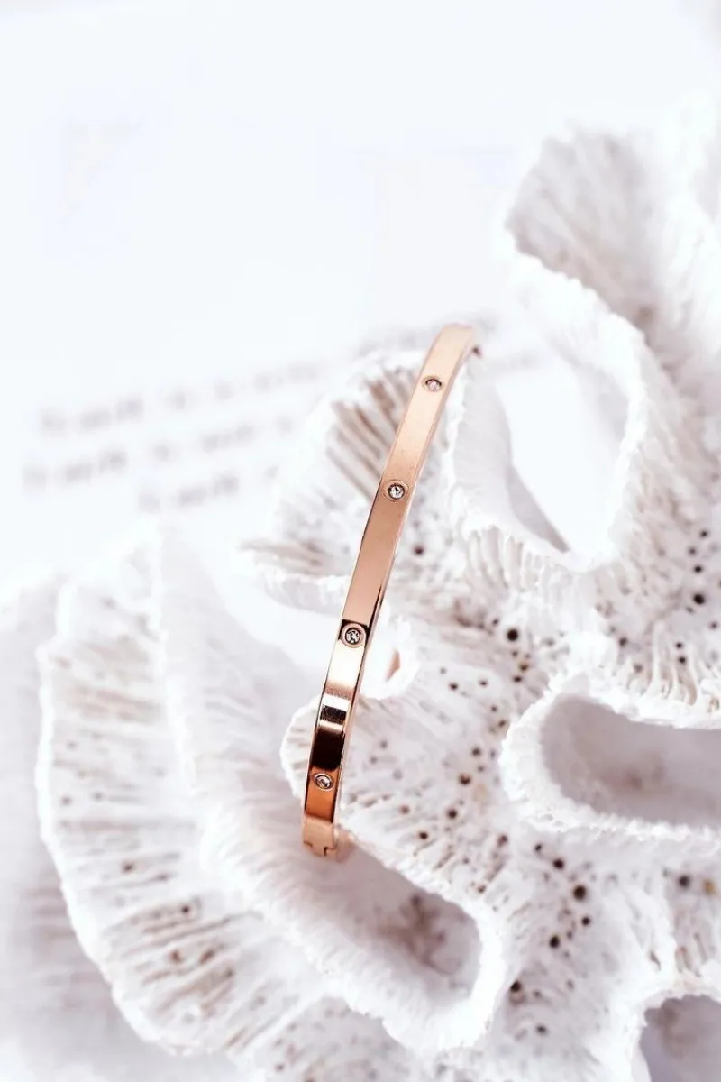 Hot Bransoletka Stalowa Z Cyrkoniami Różowe Złoto Bransoletki