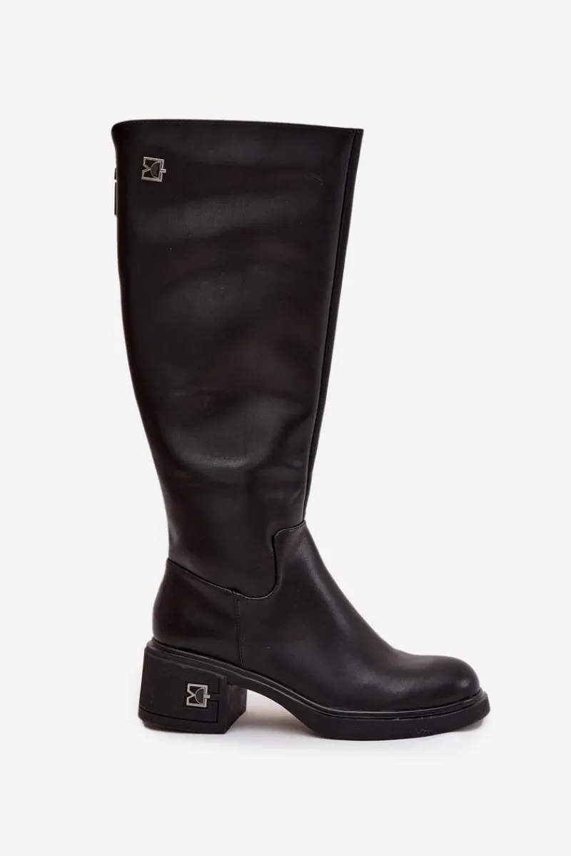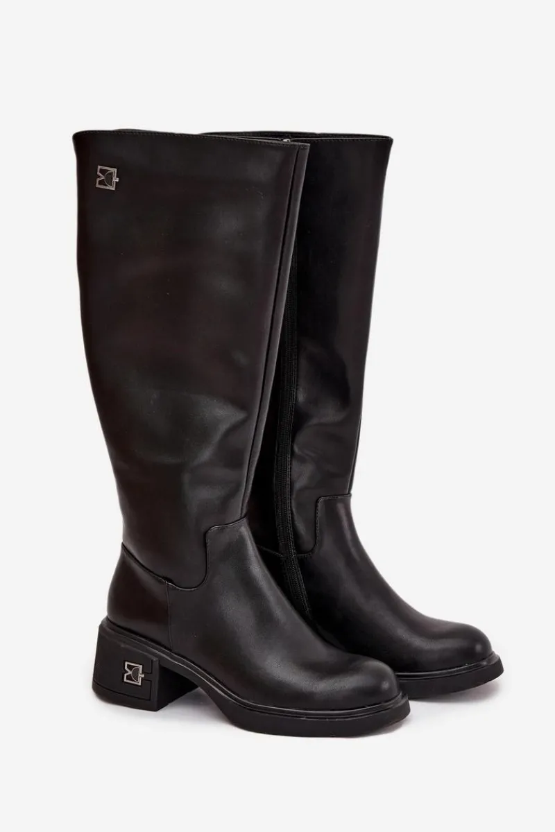 Hot Buty damskie Vinceza Skórzane Kozaki Damskie Na Niskim Obcasie Ocieplane Vinceza 66823 Czarne