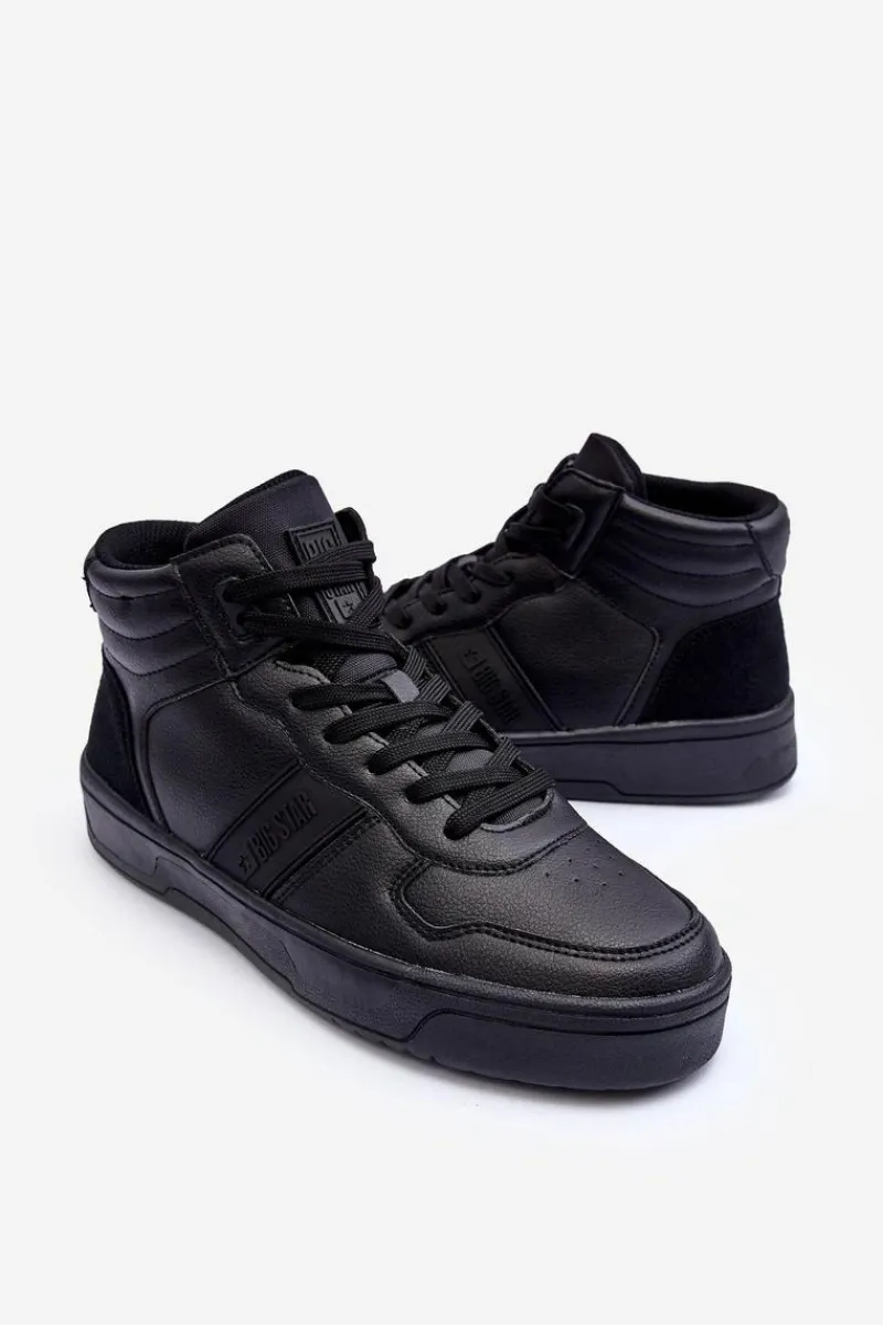 Męskie, wysokie buty sportowe od polskiej marki Big Star zostały wykonane z eko skóry. Buty posiadają wkładkę MEMORY FOAM SYSTEM. Wkładka ta zapamiętuje kształt stopy, zapewnia doskonałe dopasowanie, absorbuje wstrząsy, jest odporna na odkształcenia oraz pozwala na odparowywanie wilgoci i regulacje temperatury. Model ten jest klasycznie sznurowany. Dodatkowo zapiętek w tych butach jest usztywniany. Osadzone na platformie z antypoślizgową podeszwą. Przy wyborze rozmiaru prosimy sugerować się tabelą rozmiarów.