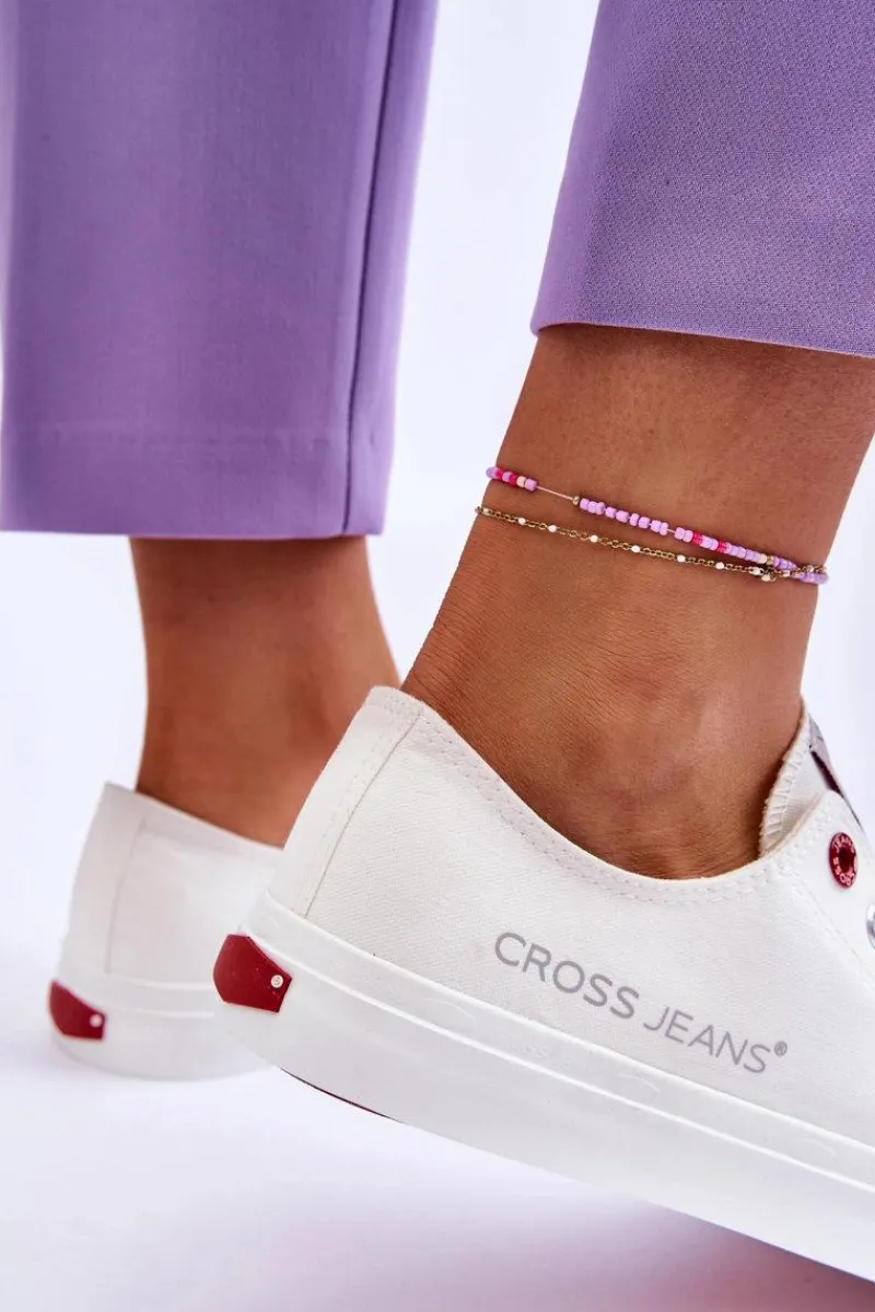 Klasyczne, damskie trampki marki Cross Jeans zostały wykonane z materiału tekstylnego. Buty te idealnie dopasowują się do kształtu stopy. Trampki posiadają miękką, materiałową wkładkę. Dodatkowo usztywniany zapiętek zapewni odpowiednią stabilizację stopy. Podeszwa wykonana z gumowego tworzywa jest antypoślizgowa. Klasyczny, sznurowany model, który łatwo dopasujesz do tęgości stopy. Trampki posiadają wzmocniony, gumowy nosek. Przy wyborze rozmiaru prosimy sugerować się tabelą rozmiarów.