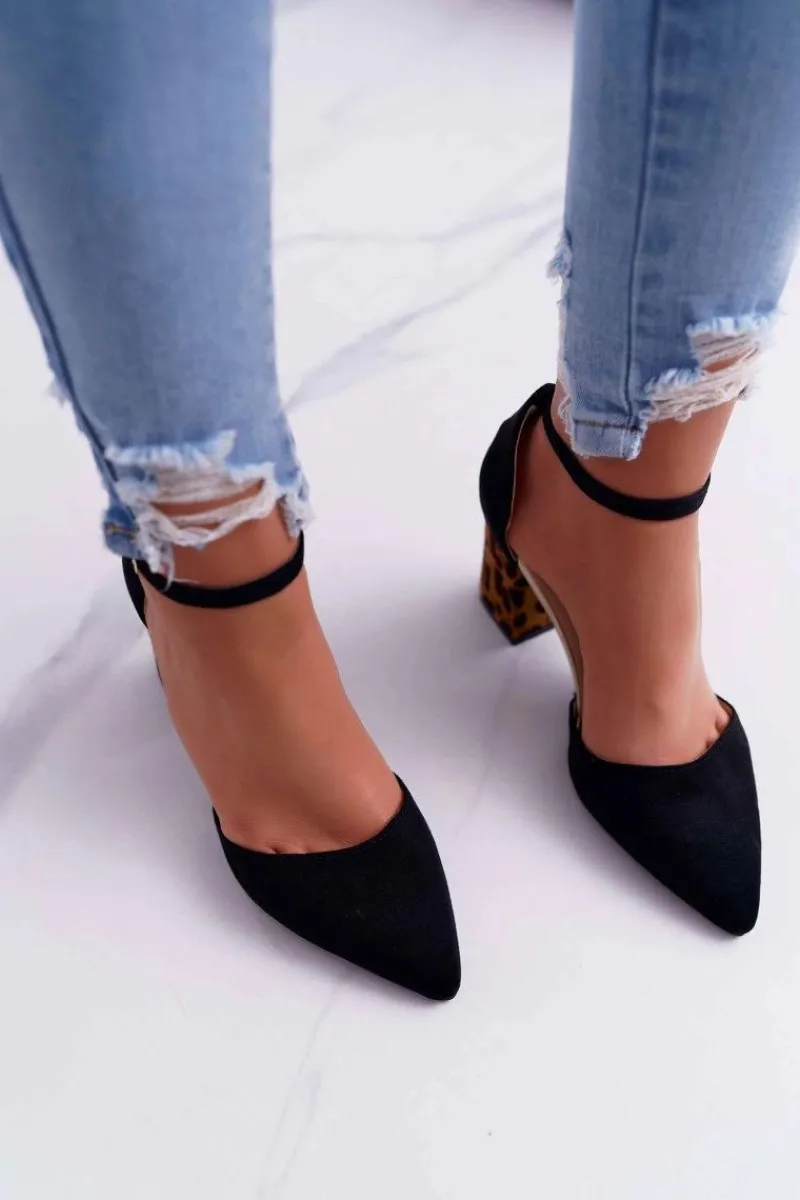 Hot Czółenka Damskie Na Słupku Panterki Czarne Ferri Damskie Czółenka Zamszowe|Czółenka Na Słupku