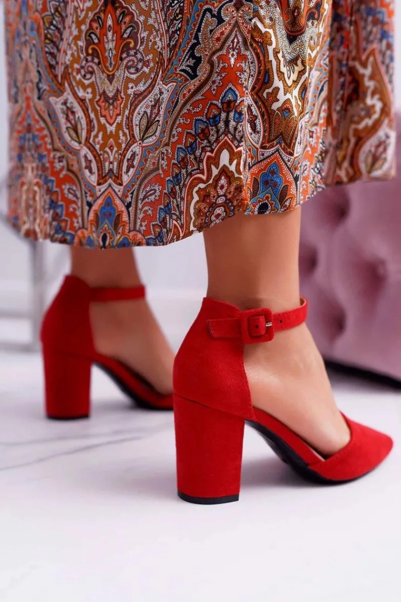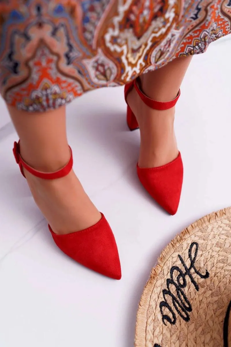 Hot Czółenka Damskie Na Słupku W Szpic Czerwone Elegante Damskie Czółenka Zamszowe|Czółenka Na Słupku