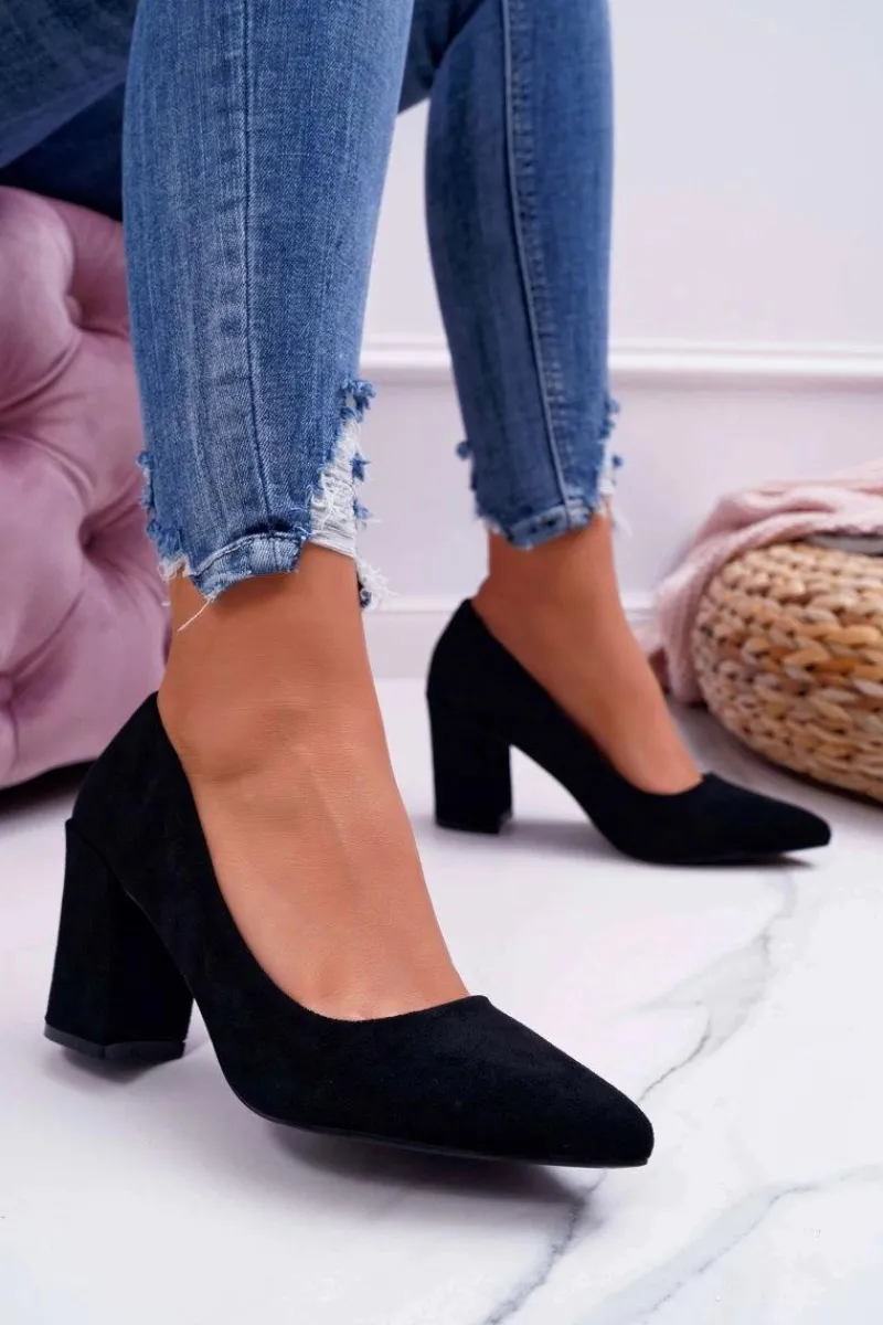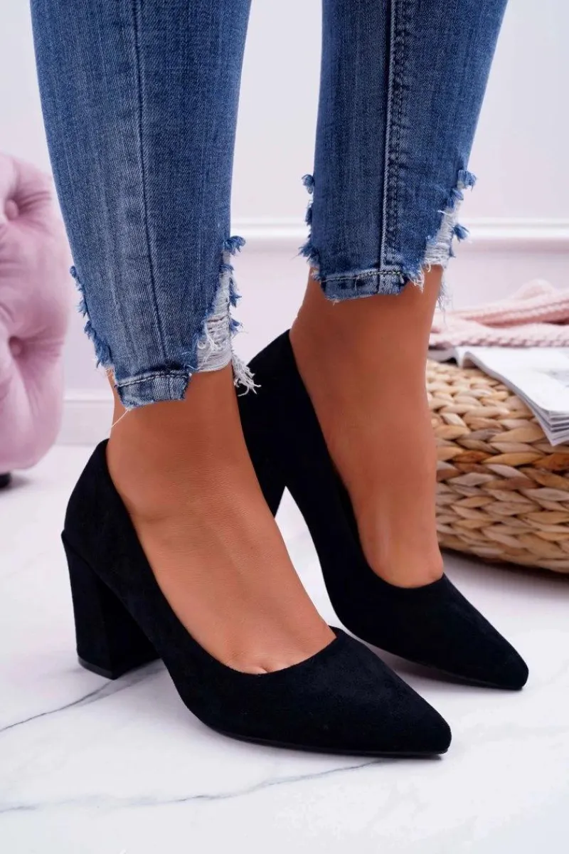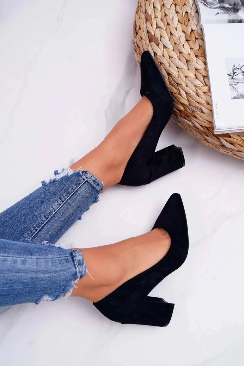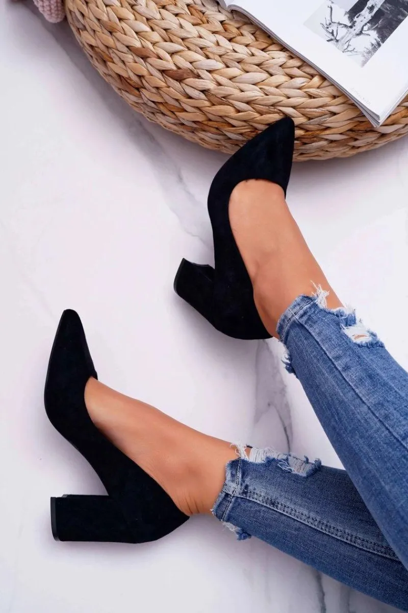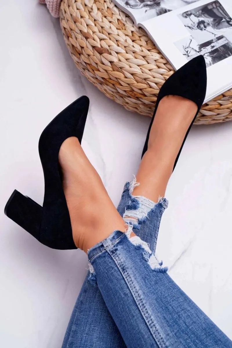 Hot Czółenka Damskie Na Słupku Zamszowe Czarne Femmini Damskie Czółenka Zamszowe|Czółenka Na Słupku