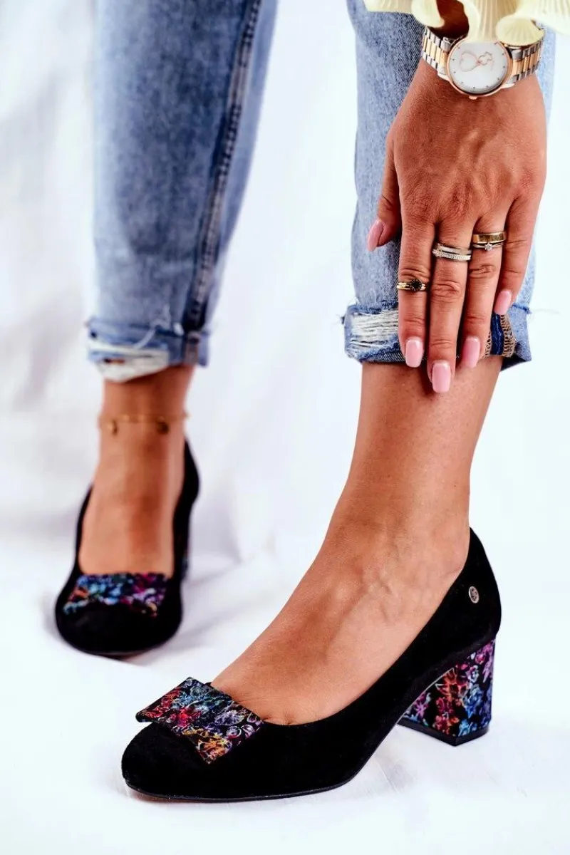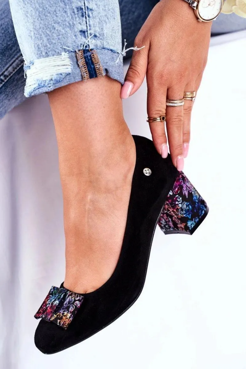 Hot Czółenka Damskie Zamszowe Czarne 3356A-62/00-1 Damskie Czółenka Zamszowe|Czółenka Klasyczne