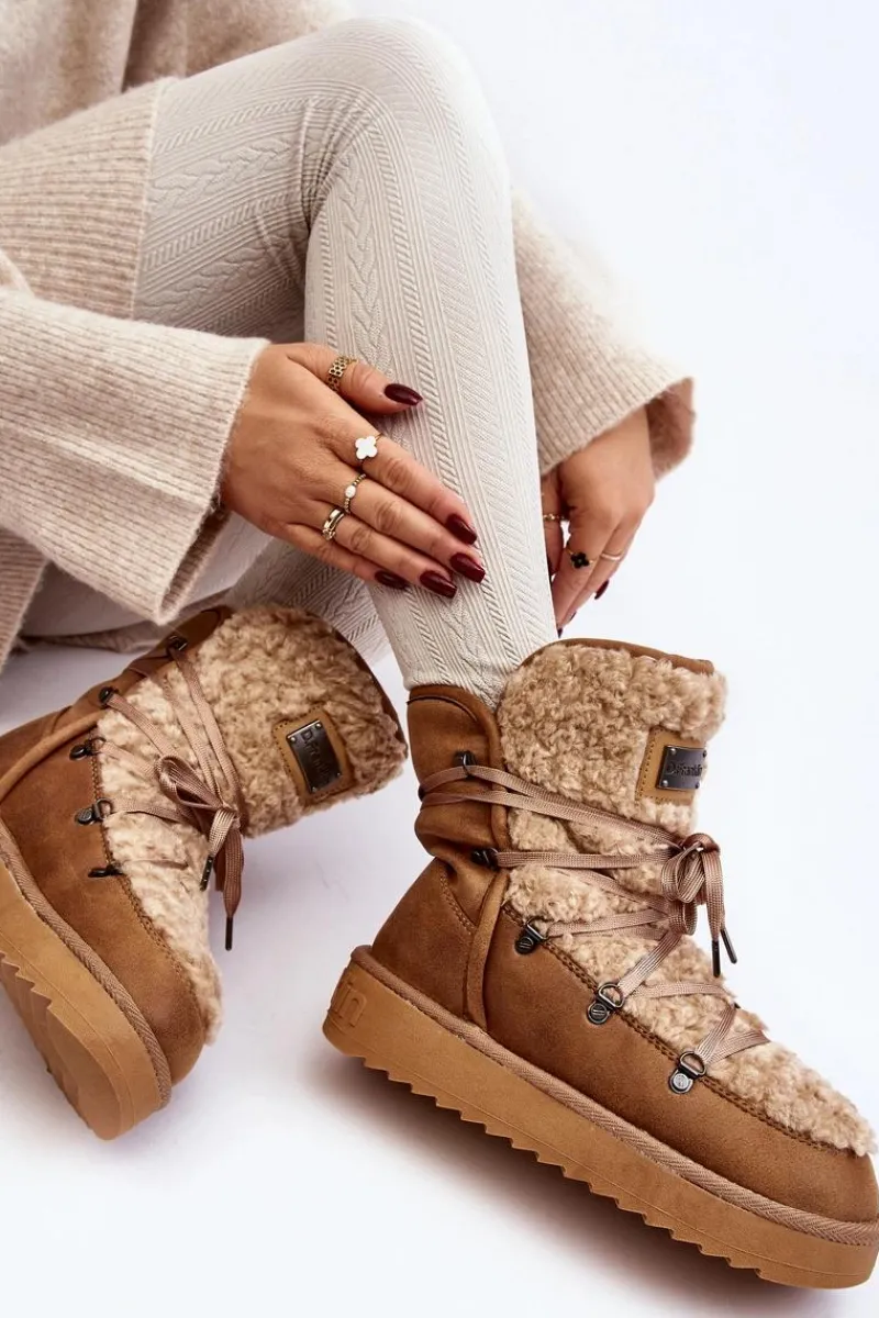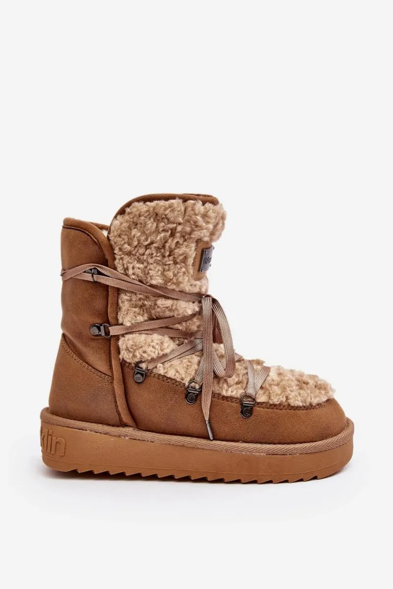 Śniegowce damskie wykonane z wysokiej jakości wodoodpornej tkaniny z mikrofibry. Osadzone na grubej antypoślizgowej podeszwie. Środek oraz przód ocieplony syntetycznym futerkiem. Model ten przeznaczony jest na najmroźniejsze dni. Śniegowce są wsuwane z dodatkowym wiązaniem. Wegańskie. Przy wyborze rozmiaru prosimy sugerować się tabelą rozmiarów.
