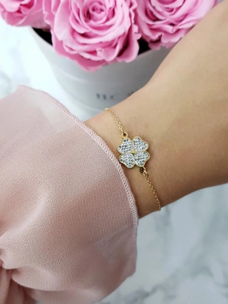 Hot Damska Bransoleta Na Łańcuszku Koniczynka Złota Selene Bransoletki