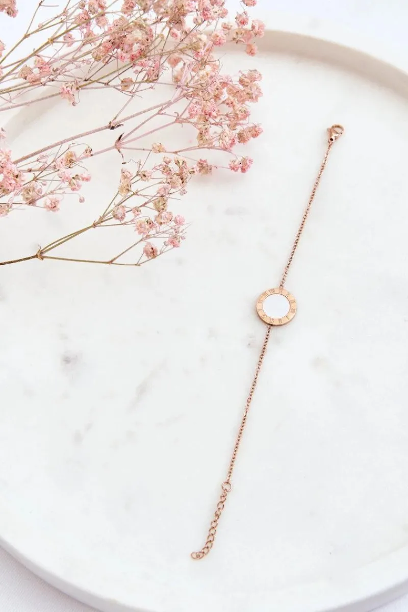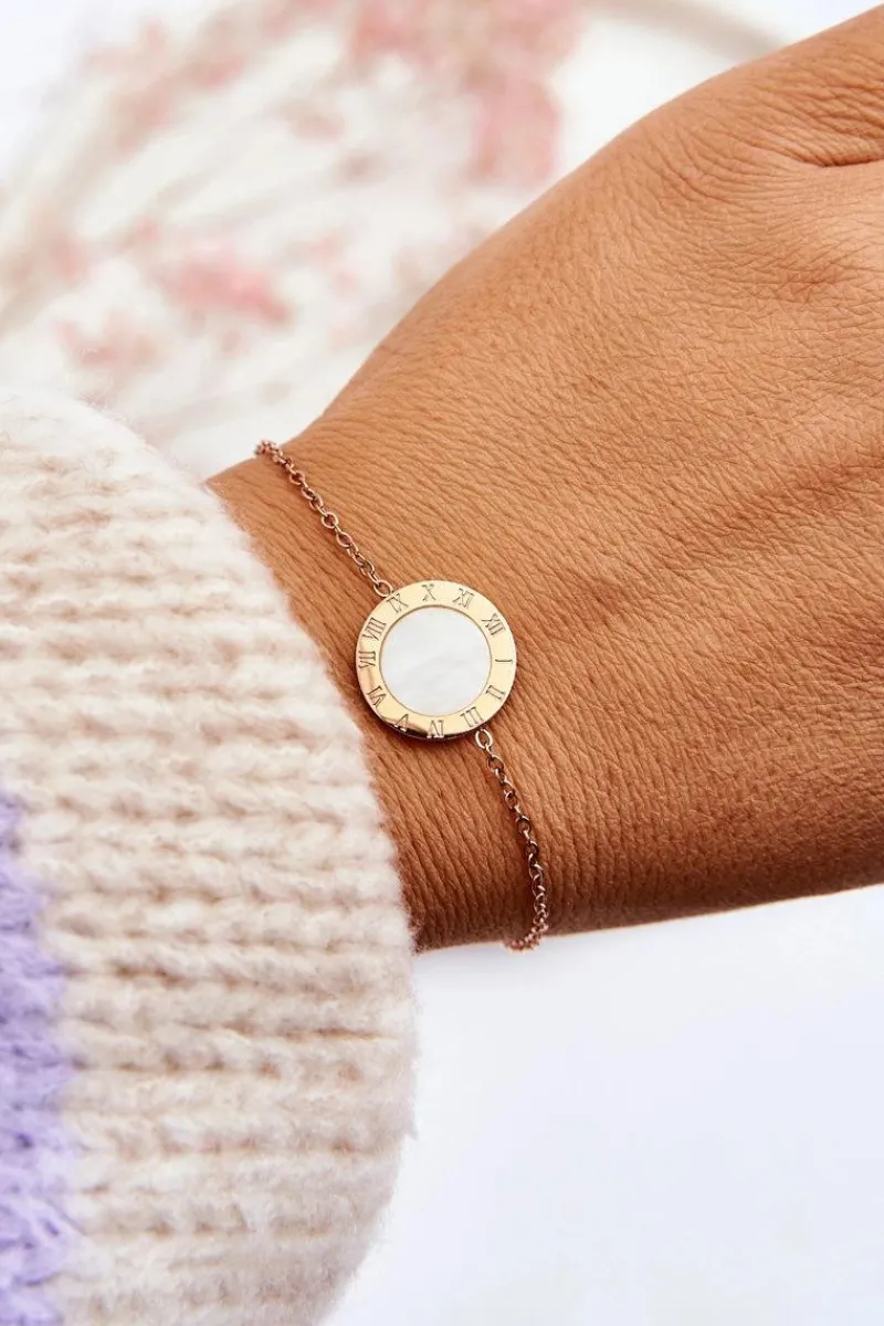 Damska bransoletka została wykonana ze stali nierdzewnej. Możliwość regulacji długości zapewni odpowiednie dopasowanie do tęgości nadgarstka. Całość wykonana z małych ogniw. Na środku znajduje się koło z cyframi rzymskimi. Bransoletka prezentuje się niezwykle elegancko. Sprawdź także pozostałą naszą ofertę biżuterii.