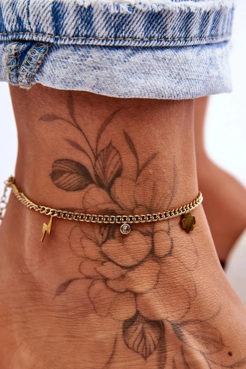 Hot Damska Bransoletka Pancerka Na Nogę Błyskawica I Koniczyna Złota Bransoletki