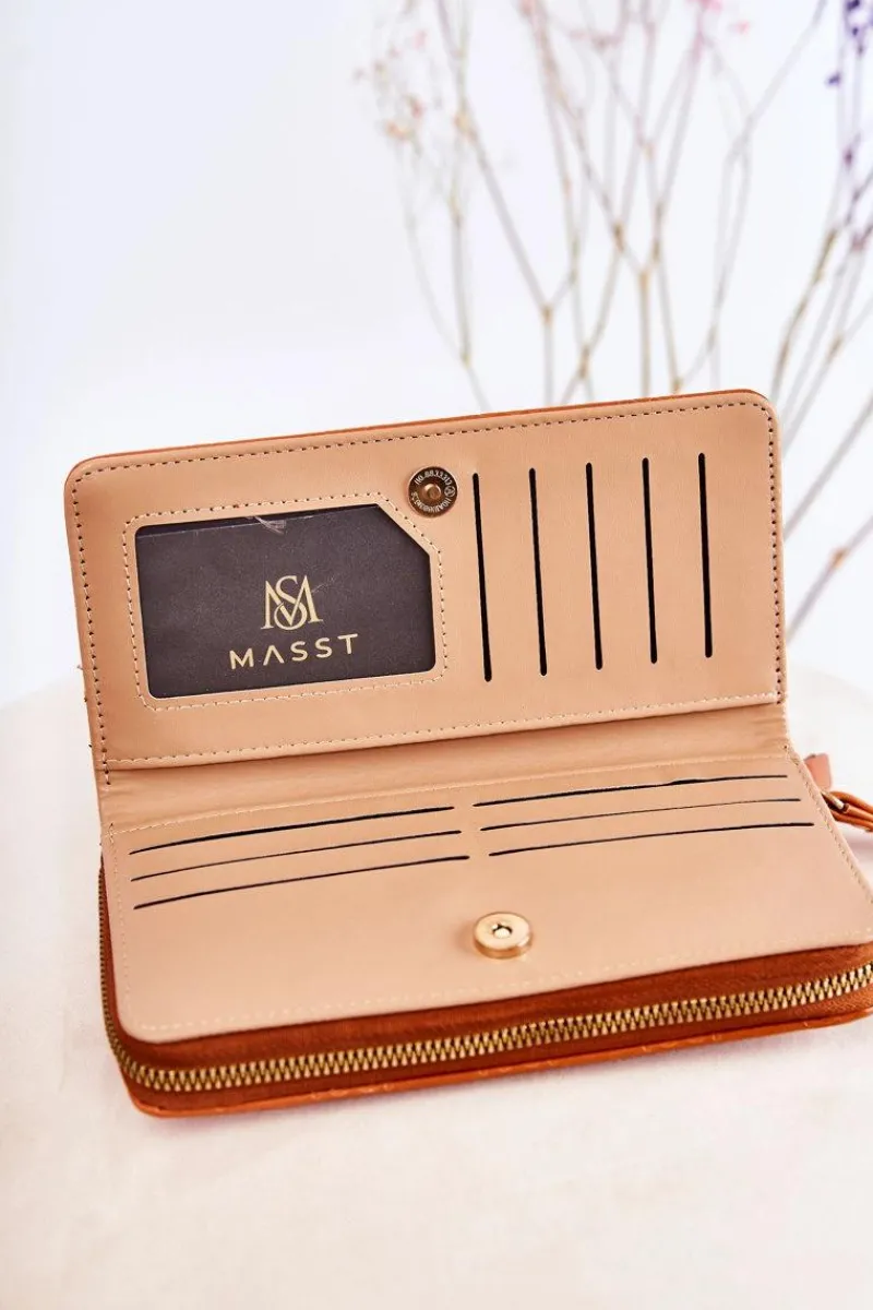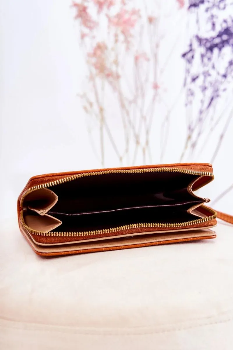 Duży i pojemny damski portfel został wykonany z wysokiej jakości eko skóry z tłoczeniem na całości. Zapinany na magnes oraz suwak. W środku posiada wiele kieszeni na karty czy wizytówki, a także miejsce na fotografię. Zamykana na suwak kieszonka pomieści bilony oraz banknoty. Na przodzie mieści się modny emblemat. Portfel dodatkowo posiada dopinany pasek. Ten niezbędny dodatek każdej kobiety sprawdzi się także idealnie jako prezent!