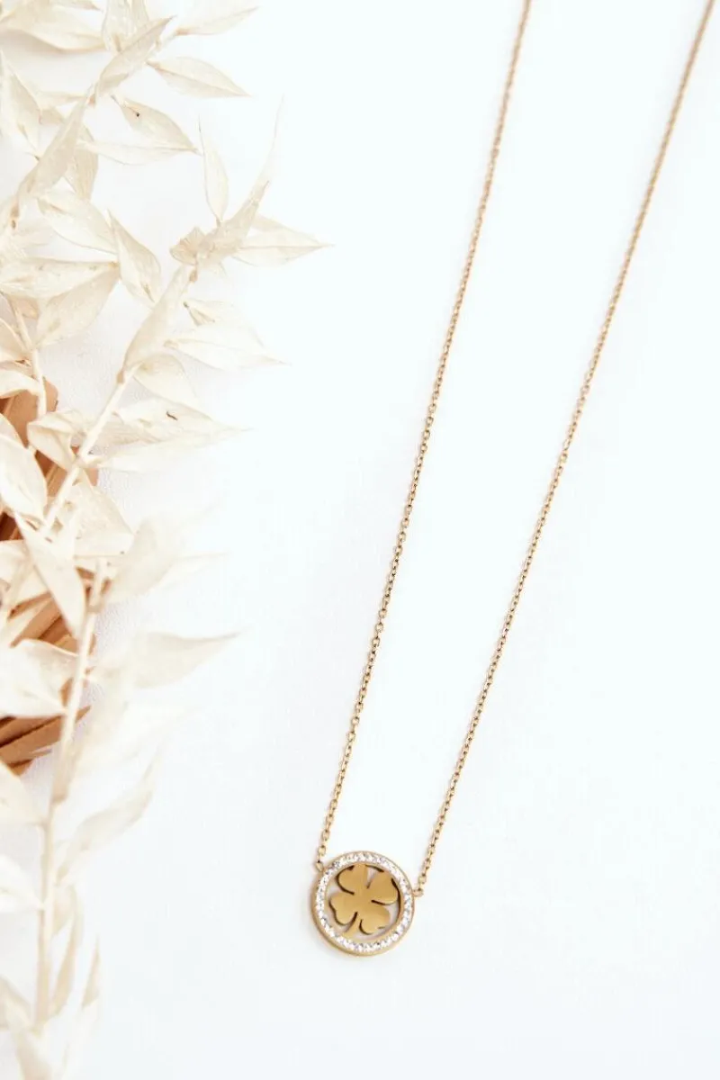Hot Damski Łańcuszek Z Kołem I Koniczyną Złoty Naszyjniki
