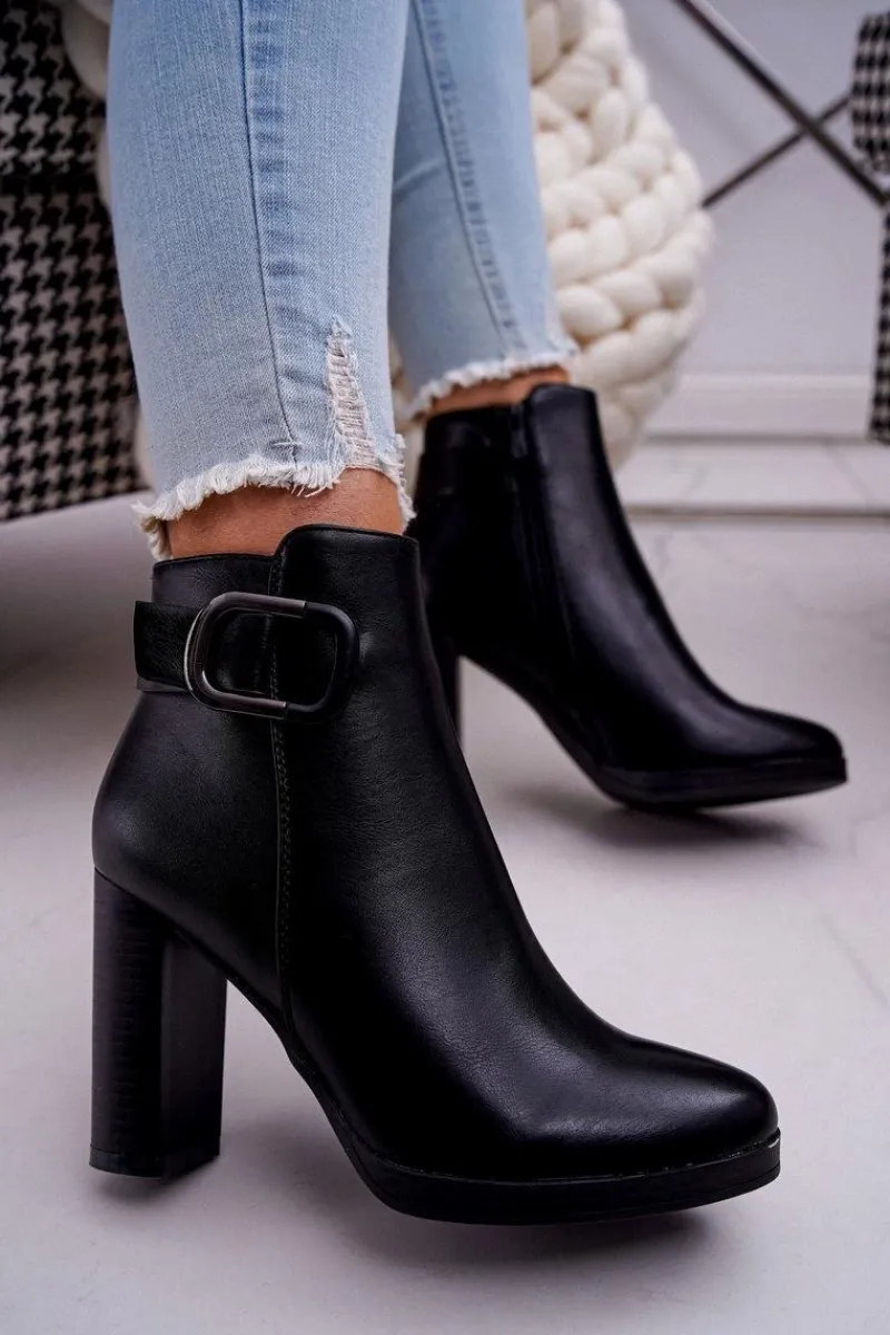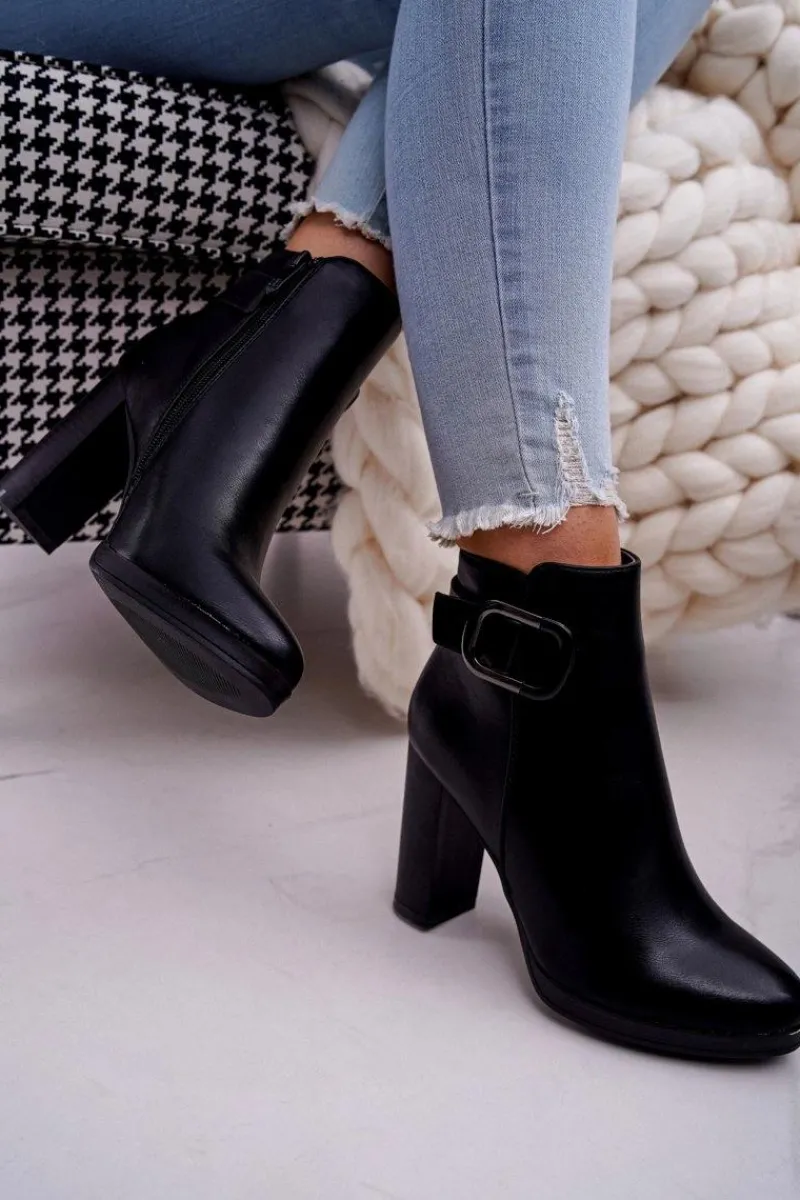 Hot Damskie Botki Na Słupku Czarne Mastor Damskie Botki Na Słupku|Botki Zimowe Damskie
