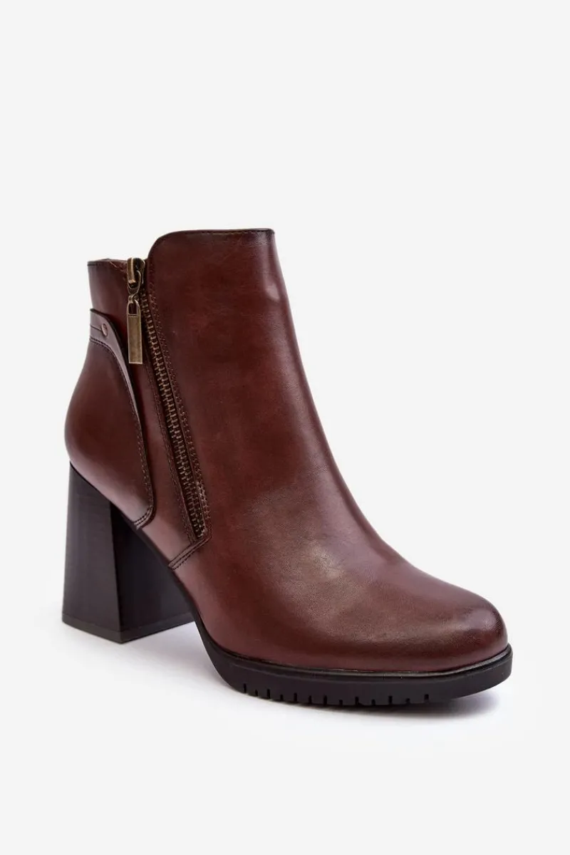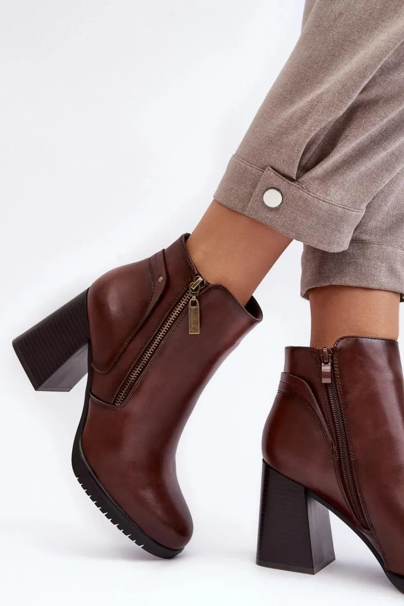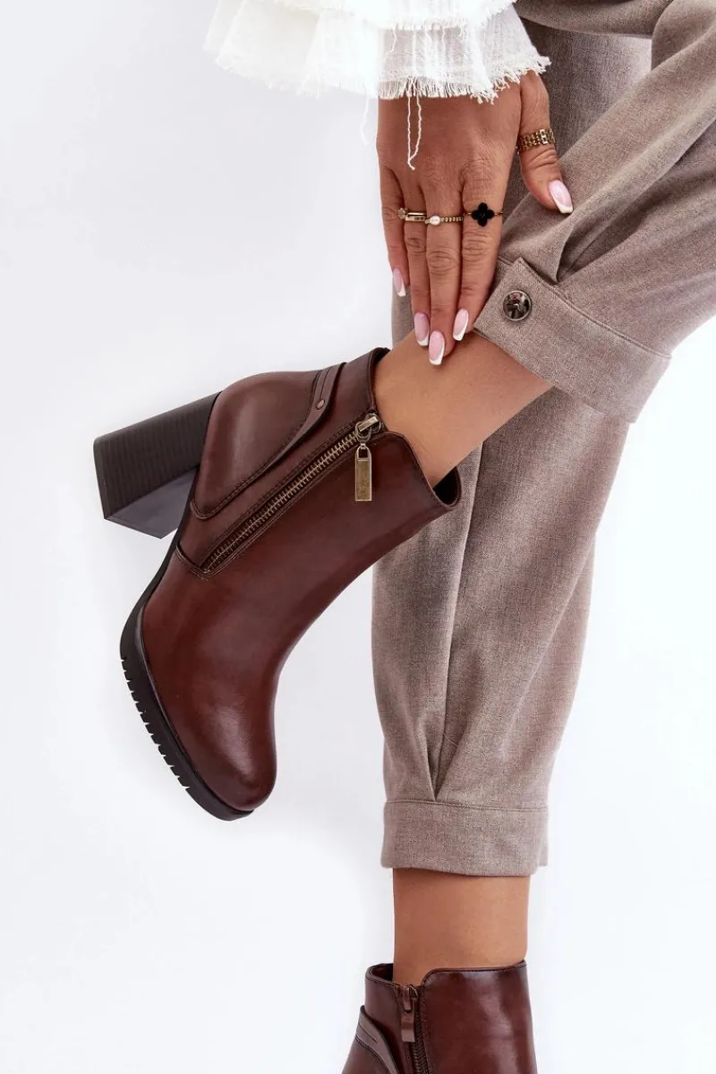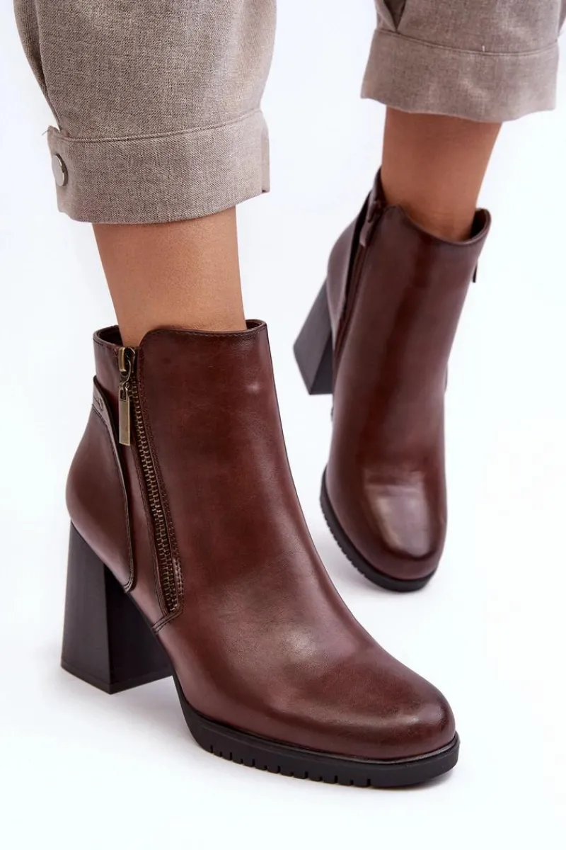 Botki damskie zostały wykonane z eko skóry. Osadzone na obcasie w postaci słupka. Noski zaokrąglone. Wewnątrz ocieplone miłym w dotyku kocem obuwniczym. Dodatkowo zapiętek jest usztywniany, co zwiększy stabilizację stopy. Zapinanie na suwak. Ten model powinien znaleźć się właśnie w Twojej szafie! Przy wyborze rozmiaru prosimy sugerować się tabelą rozmiarów.