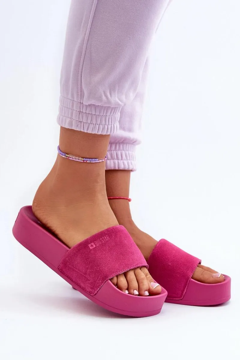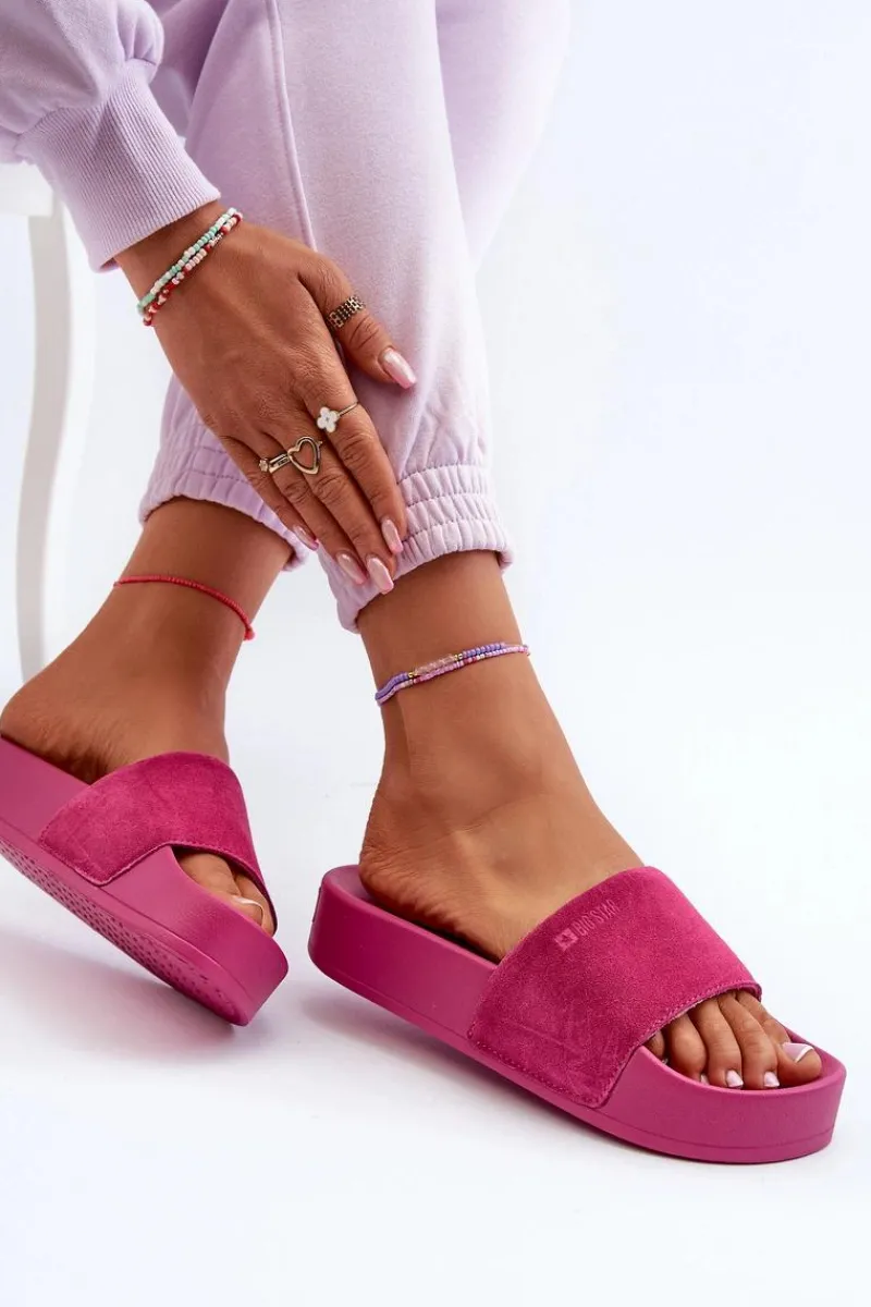 Klapki damskie Big Star to połączenie wygody i stylu. Wysoka platforma i szeroki, zamszowy pasek zapewniają stabilność i wygodę podczas noszenia. Idealne na letnie spacery czy wieczorne wyjścia ze znajomymi! Przy wyborze rozmiaru prosimy sugerować się tabelą rozmiarów.