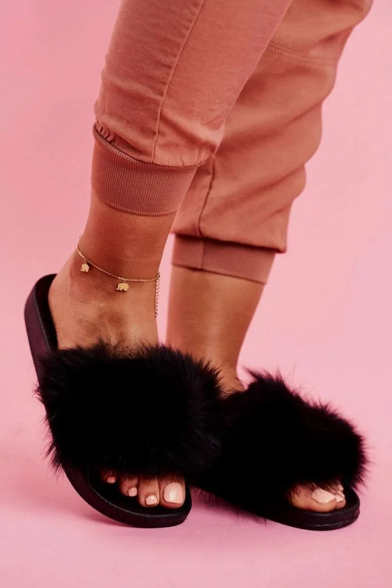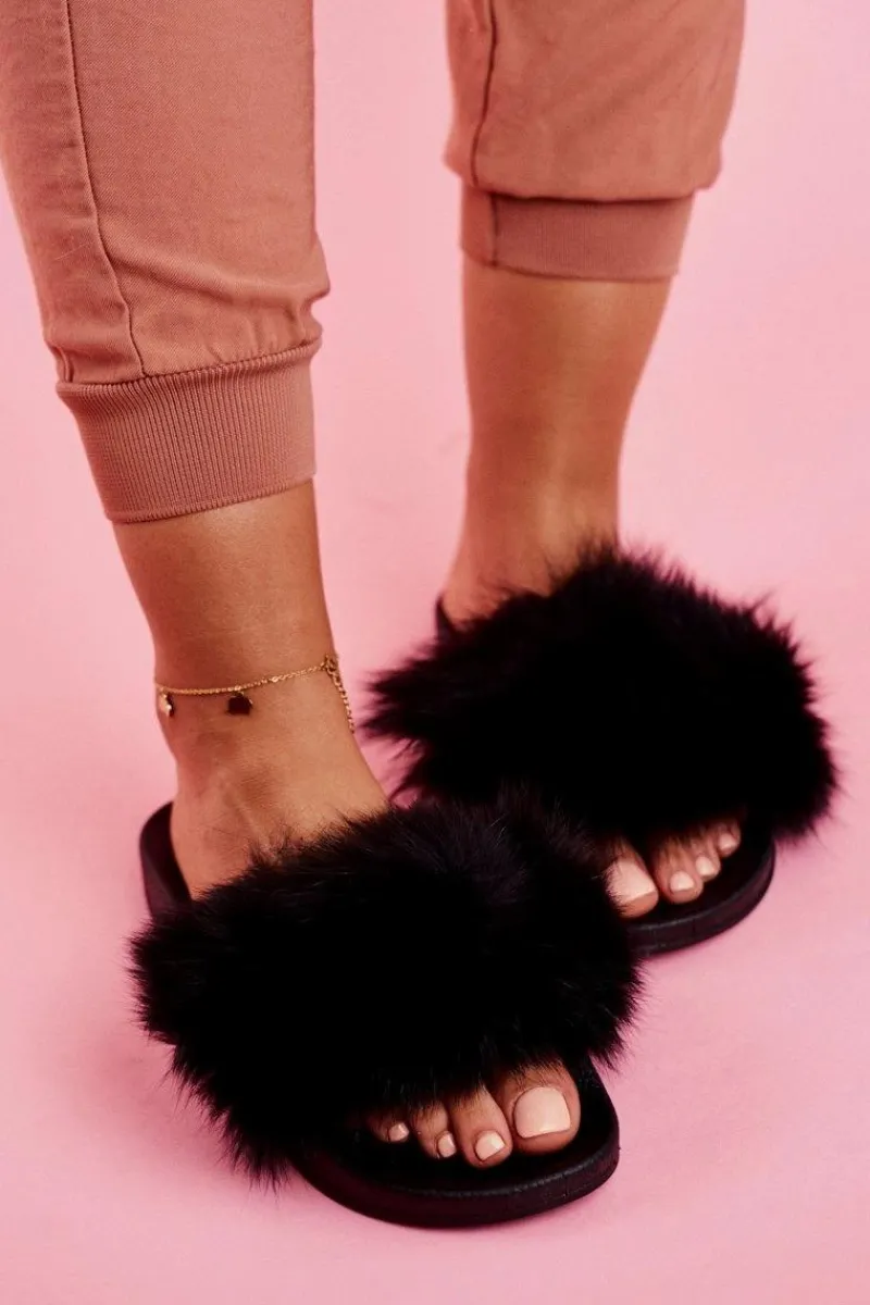 Hot Damskie Klapki z Futerkiem Czarne Belmondo Damskie Klapki Z Futerkiem|Klapki Damskie Klasyczne
