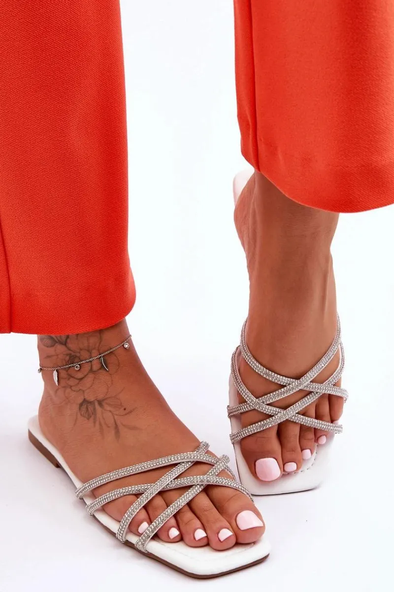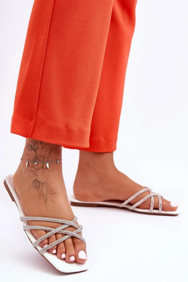 Hot Damskie Klapki Z Paseczkami I Dżetami Białe Leomi Damskie Klapki Damskie Klasyczne