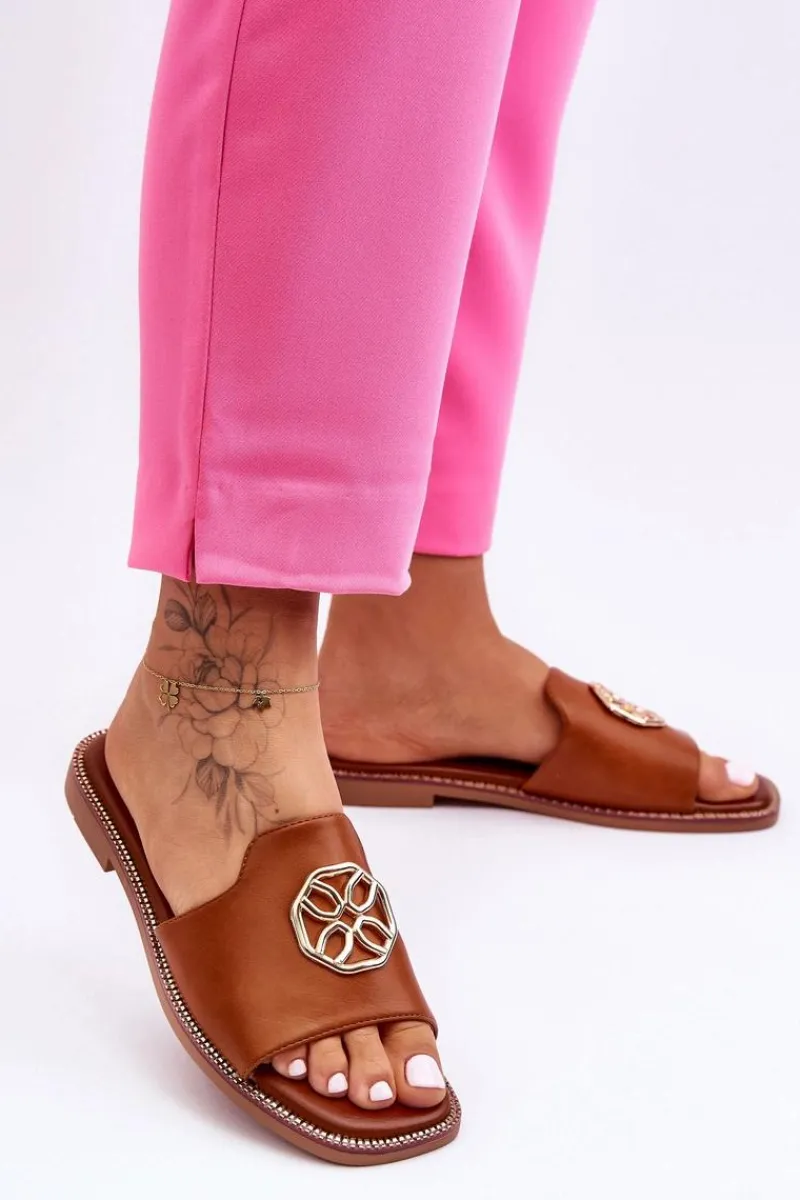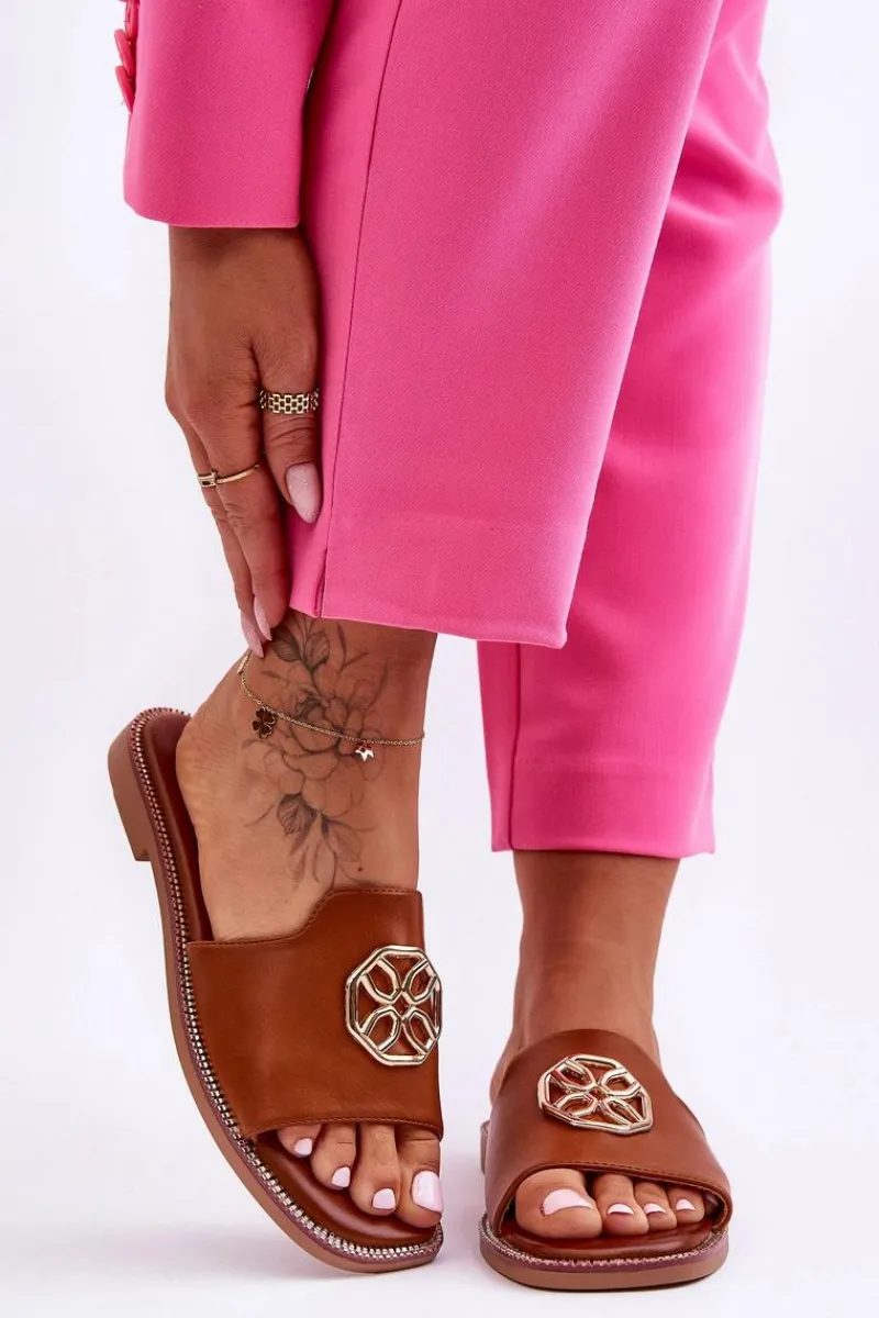 Klasyczne, damskie klapki zostały wykonane z eko skóry. Model ten posiada ozdobę wykonaną z tworzywa sztucznego. Klapki osadzono na delikatnej platformie oraz płaskim obcasie. Wkładka jest niezwykle miękka i wygodna w użytkowaniu. Nosek jest odkryty i lekko kwadratowy. Ten model powinien znaleźć się właśnie w Twojej garderobie! Przy wyborze rozmiaru prosimy sugerować się tabelą rozmiarów.