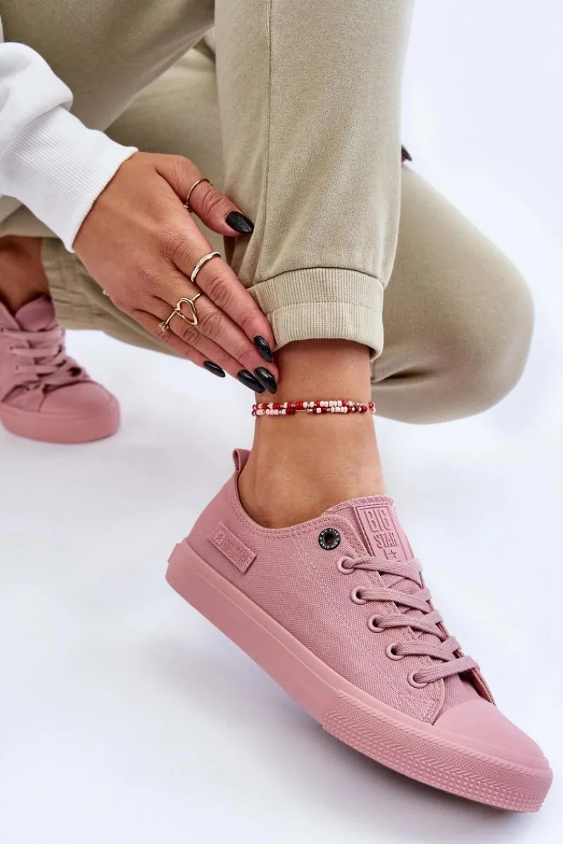 Damskie trampki polskiej marki Big Star. Klasyczny model pasuje do wielu stylizacji. Buty dobrze dopasowują się do kształtu stopy. Posiadają miękką, materiałową wkładkę oraz antypoślizgową podeszwę wykonaną z gumowego tworzywa. Zapiętek w tych trampkach jest usztywniany. Koniecznie sprawdź całą naszą kolekcję butów BIG STAR.Przy wyborze rozmiaru prosimy sugerować się tabelą rozmiarów.