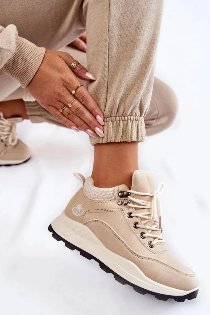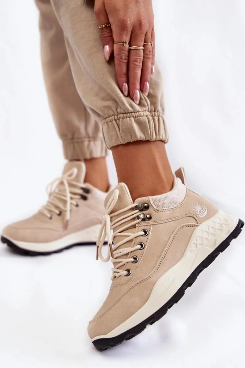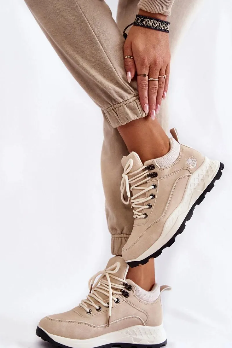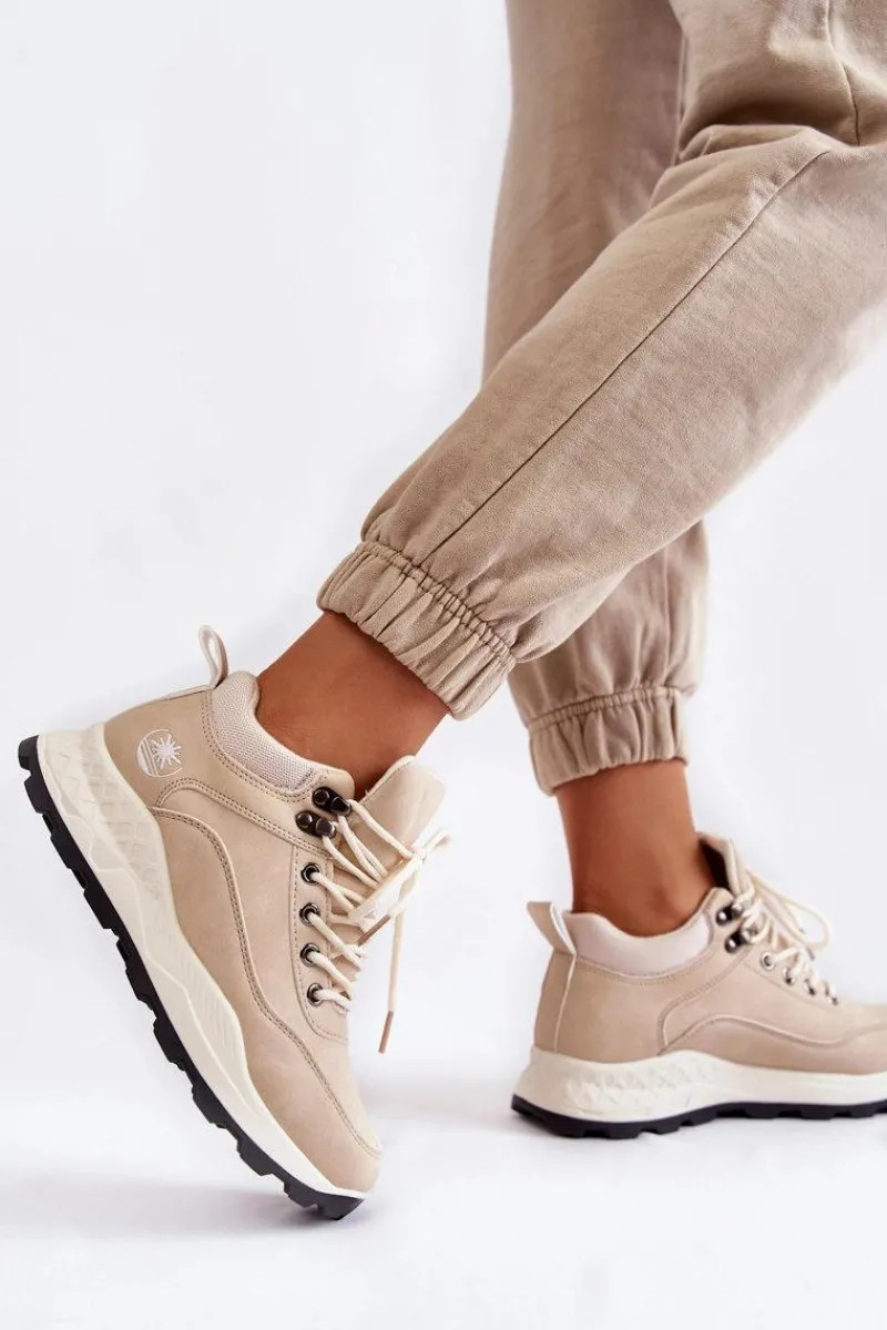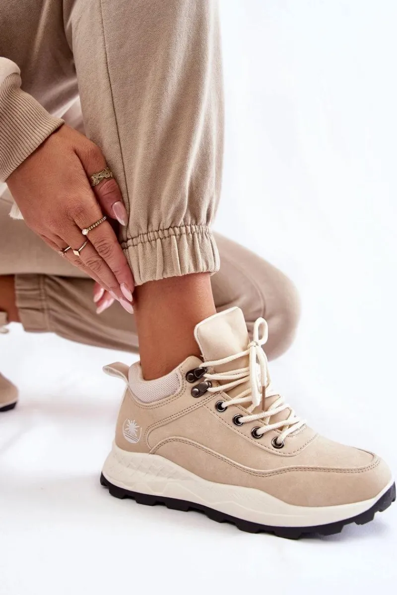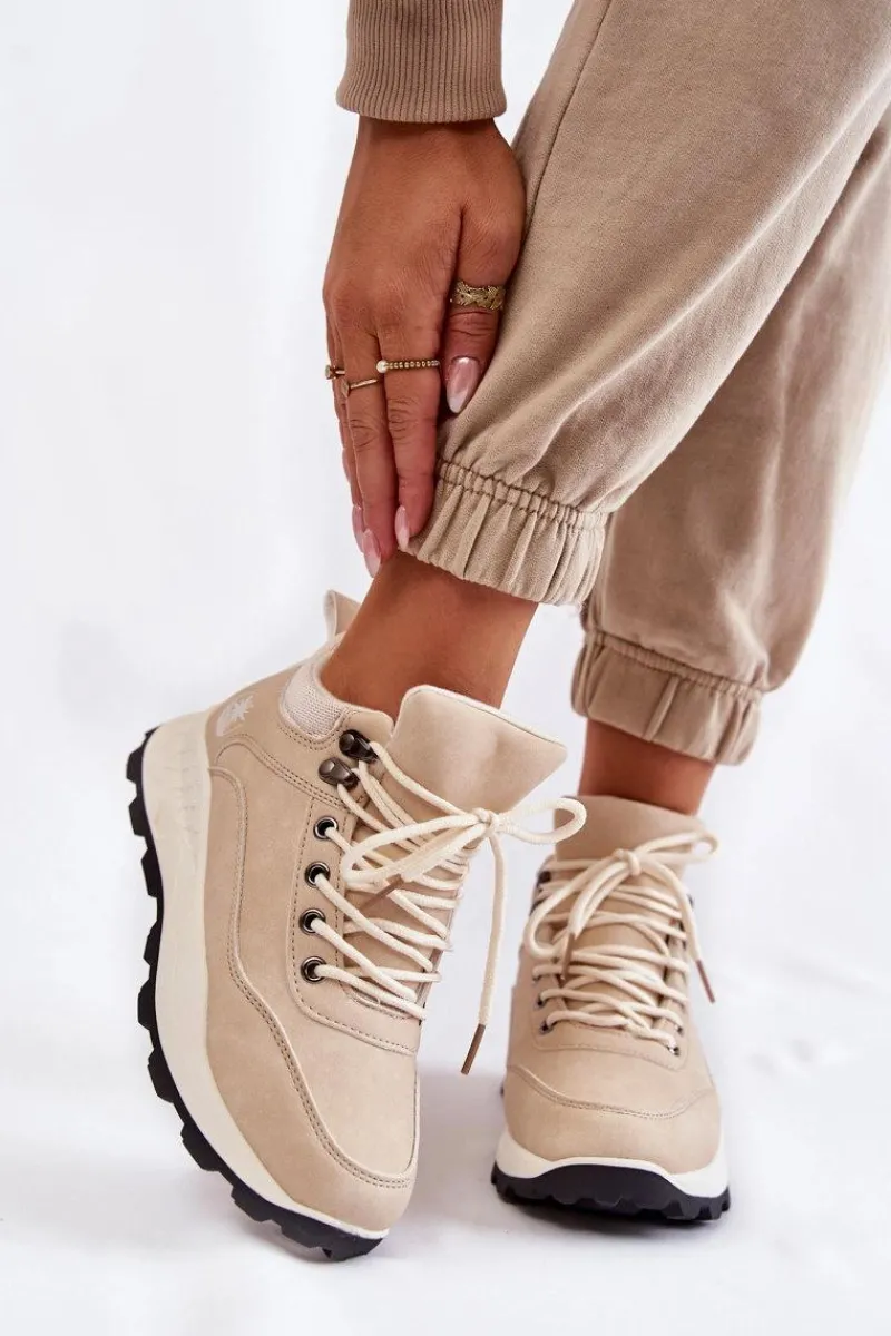 Wygodne buty trekkingowe świetnie sprawdzą się podczas jesienno-zimowych dni. Fason w stylu traperów. Wykonane z eko skóry. Buty te posiadają z boku ozdobne tłoczenie. Klasyczne sznurowanie zapewni odpowiednie dopasowanie do tęgości nogi. Trapery posiadają w środku ocieplenie w postaci futerka. Osadzone na platformie z podeszwą z bieżnikiem. Przy wyborze rozmiaru prosimy kierować tabelą rozmiarów.
