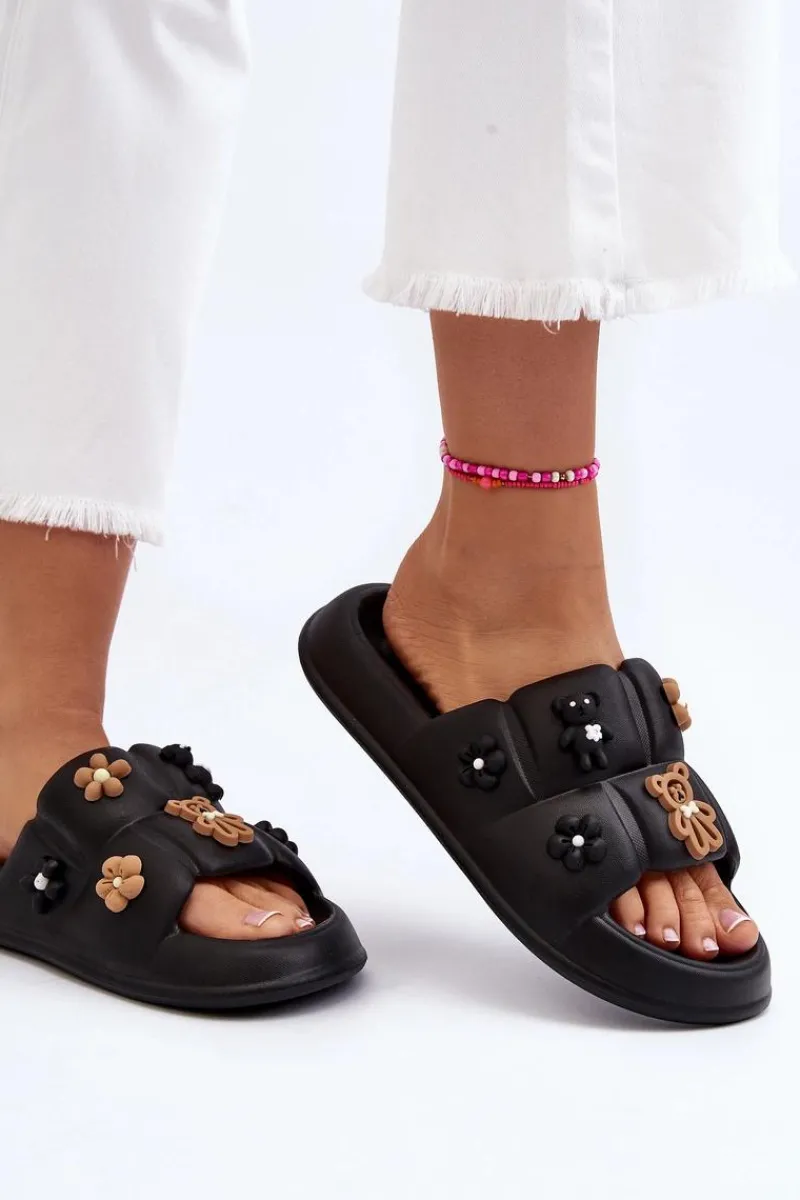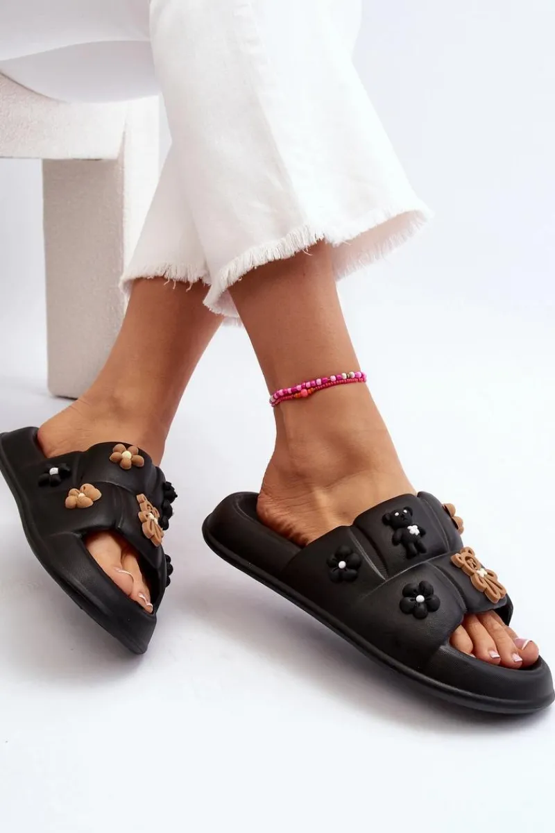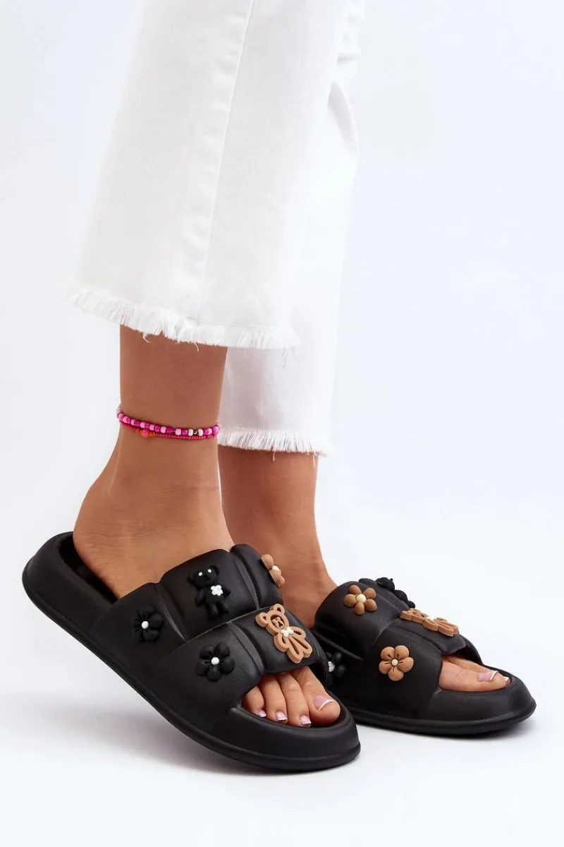 Hot Damskie Piankowe Klapki Z Ozdobami Czarne Cambrina Damskie Klapki Na Platformie|Klapki Damskie Klasyczne