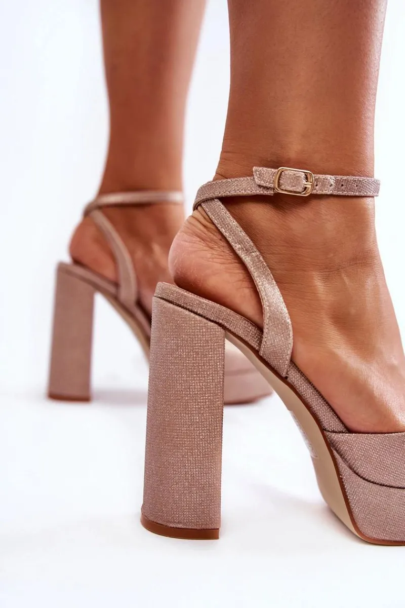 Hot Damskie Sandały Brokatowe Na Słupku Złote Rosel Damskie Sandały Na Słupku|Sandały Na Obcasie