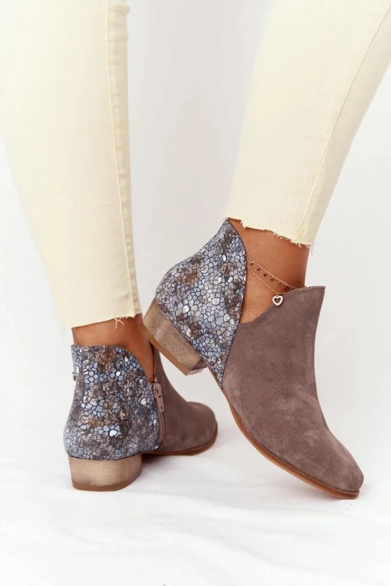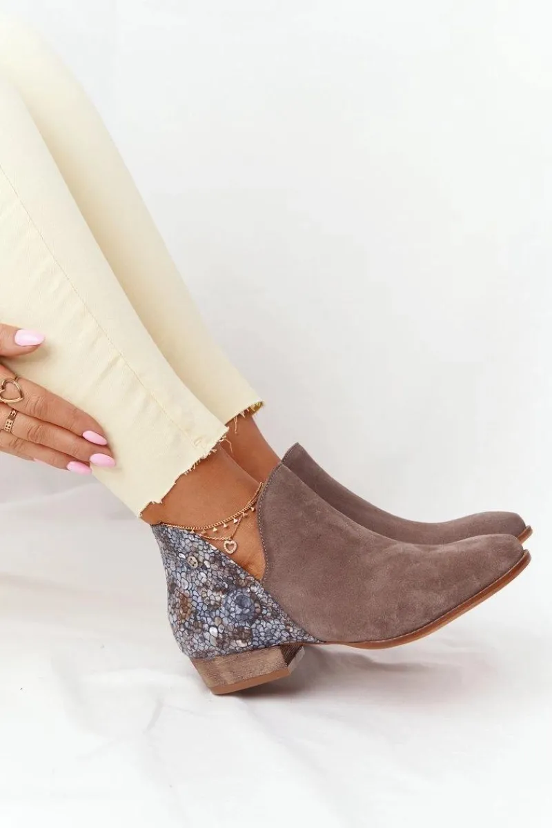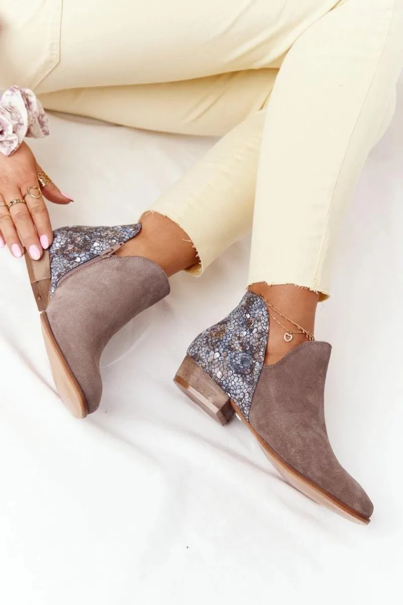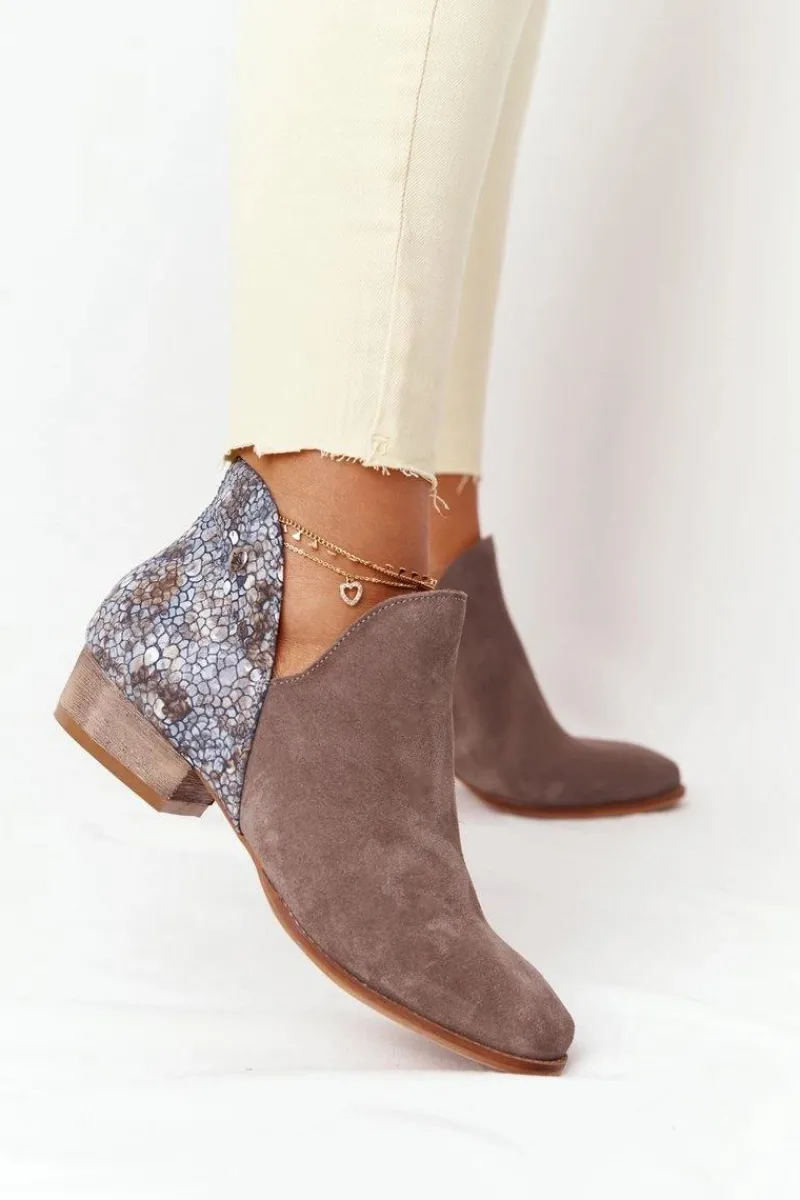 Hot Damskie Skórzane Botki Ciemny Beż 04091-65 Damskie Botki Wiosenne|Botki Maciejka