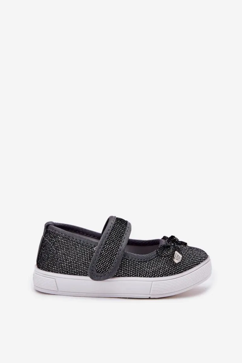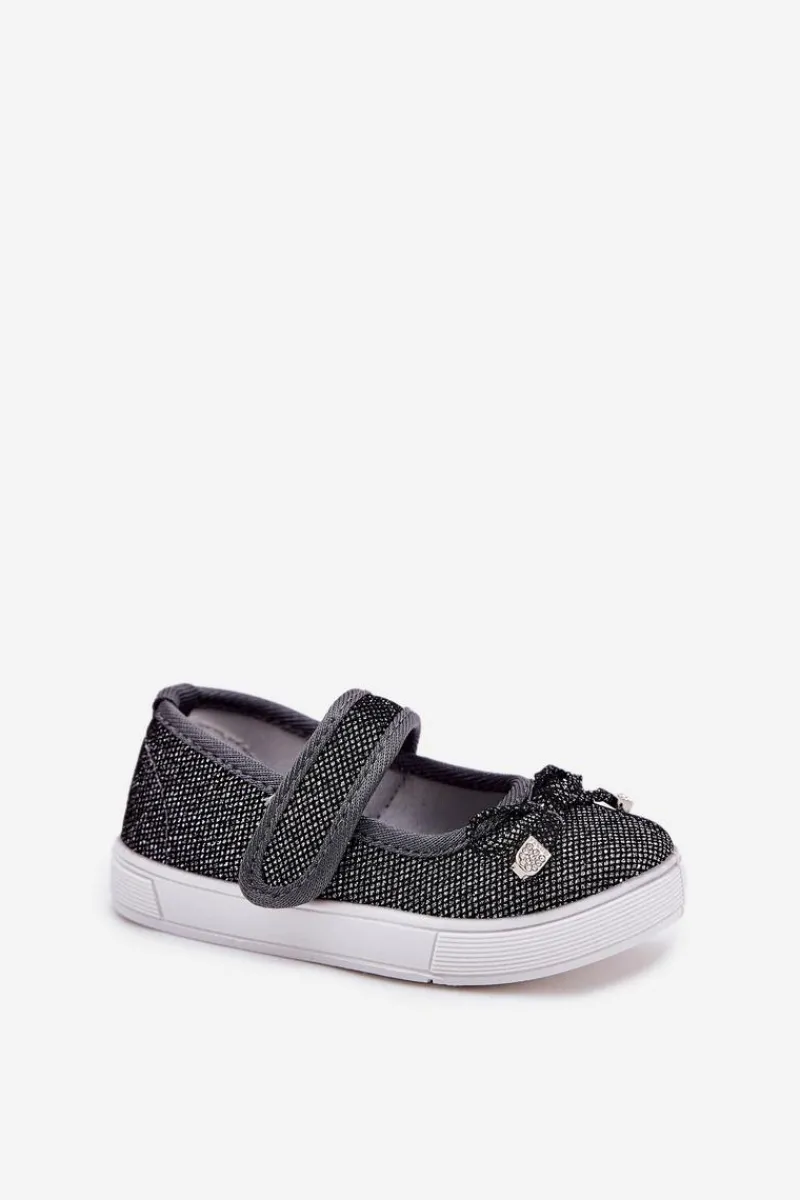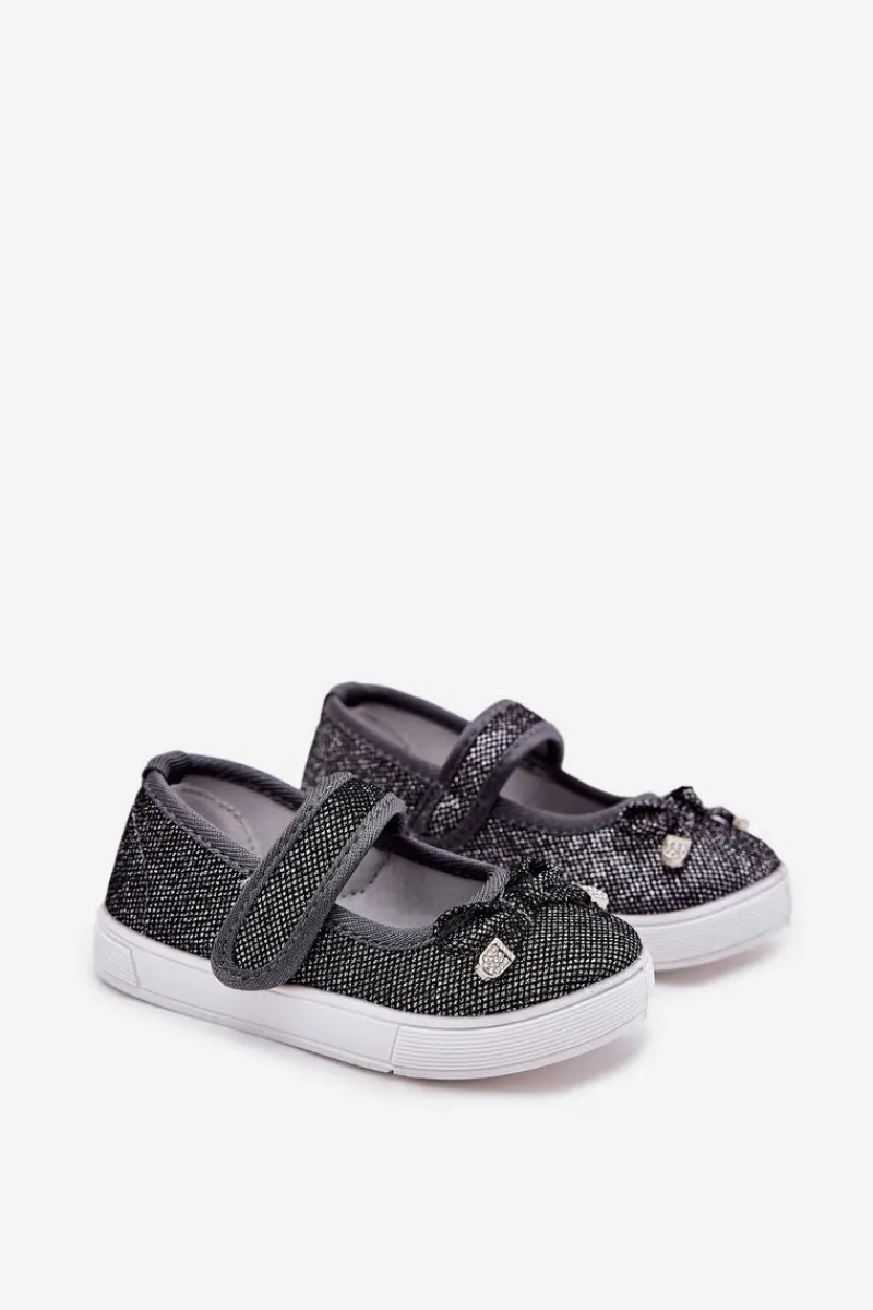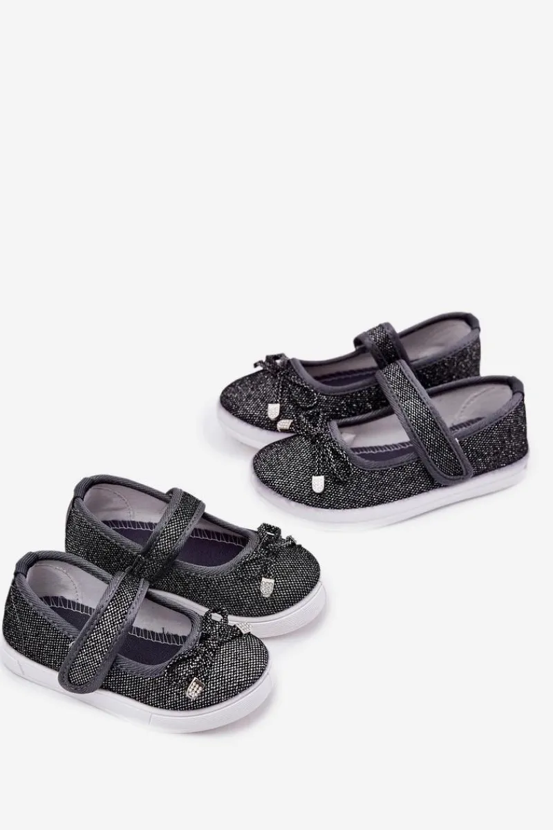 Dziecięce balerinki wykonane z materiału tekstylnego. Dzięki elastycznej podeszwie maluchy mogą swobodnie biegać i bawić się przez cały dzień. Model zapinany na rzep ułatwia zakładanie i zdejmowanie butów, a urocza kokardka z przodu dodaje im dziewczęcego uroku. Zaokrąglone noski i materiałowa wkładka gwarantują komfort i odpowiednią wentylację stóp, czyniąc te balerinki idealnym wyborem na co dzień. Przy wyborze rozmiaru prosimy sugerować się tabelą rozmiarów.