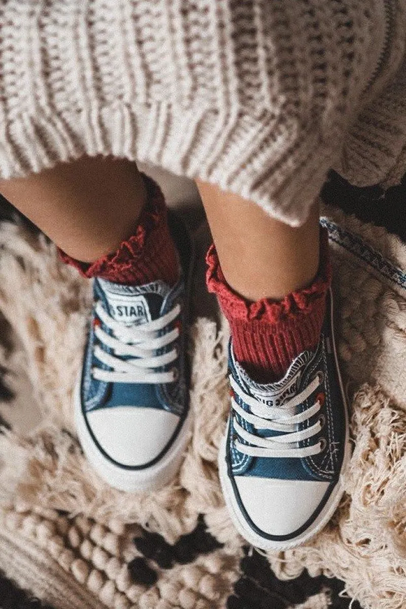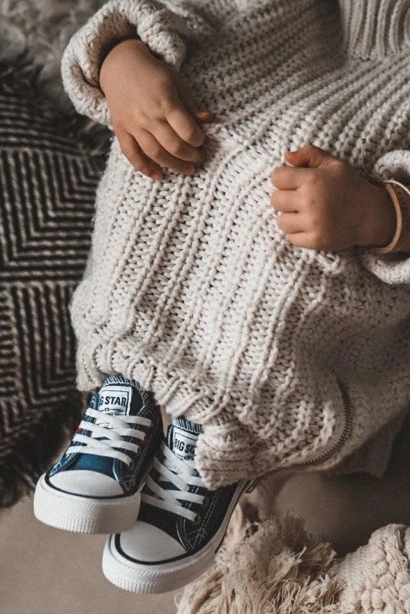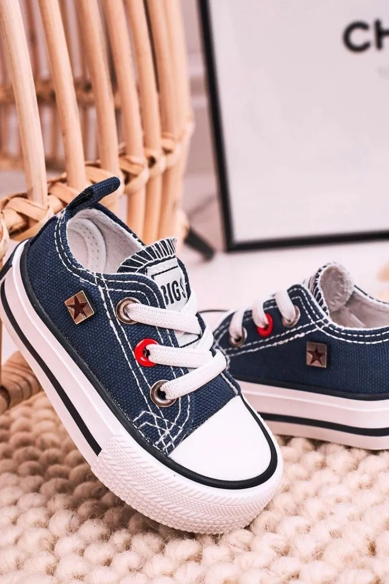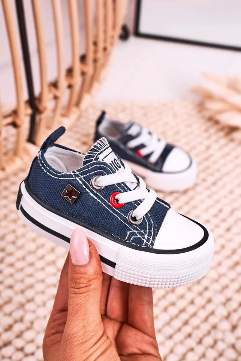 Klasyczne trampki od firmy BIG STAR. Trampki wykonane są z wysokiej jakości materiału, który jest odporny na działanie czynników zewnętrznych. Trampki dobrze dopasowują się do kształtu stopy oraz posiadają funkcjonalną, antypoślizgową podeszwę. Ponadczasowy wzór dostępny w wielu kolorach. Koniecznie sprawdź całą naszą kolekcję butów BIG STAR. Rozmiary 17-21 posiadają trzy oczka do sznurówek, natomiast rozmiary 22-27 posiadają 4 oczka. Przy wyborze rozmiaru prosimy sugerować się tabelą rozmiarów.