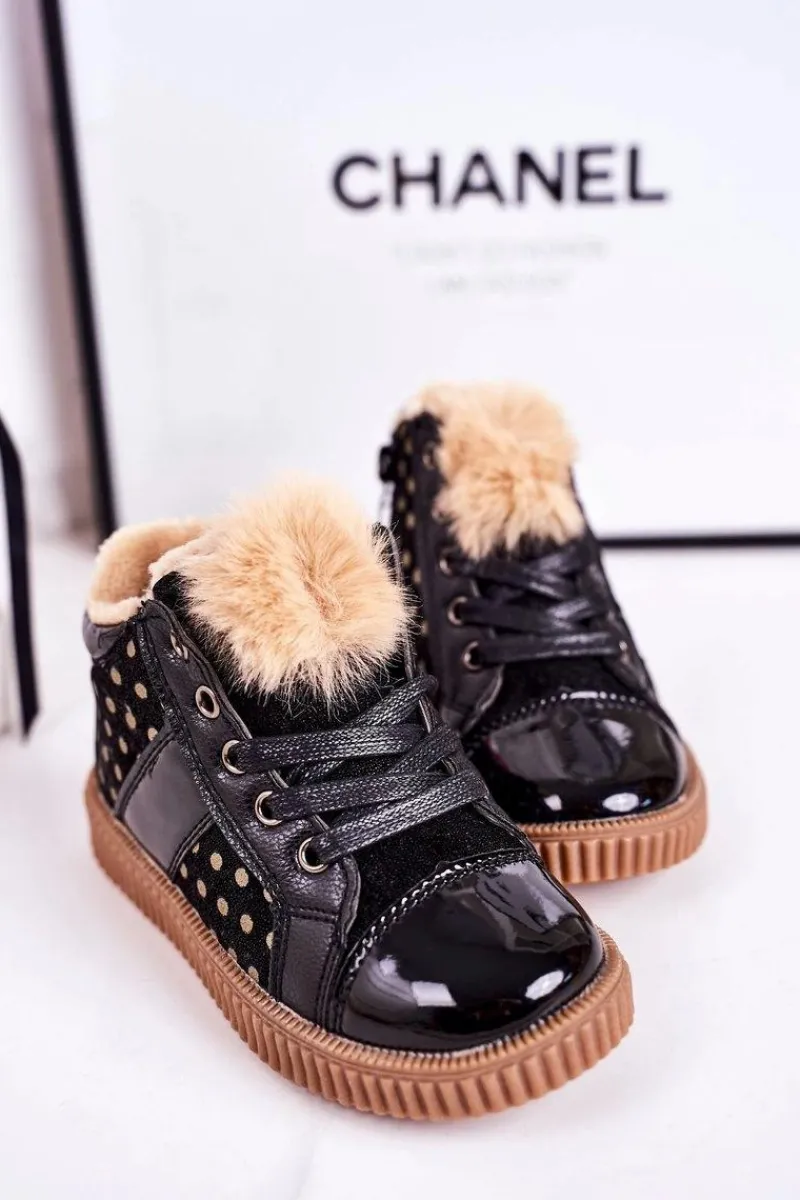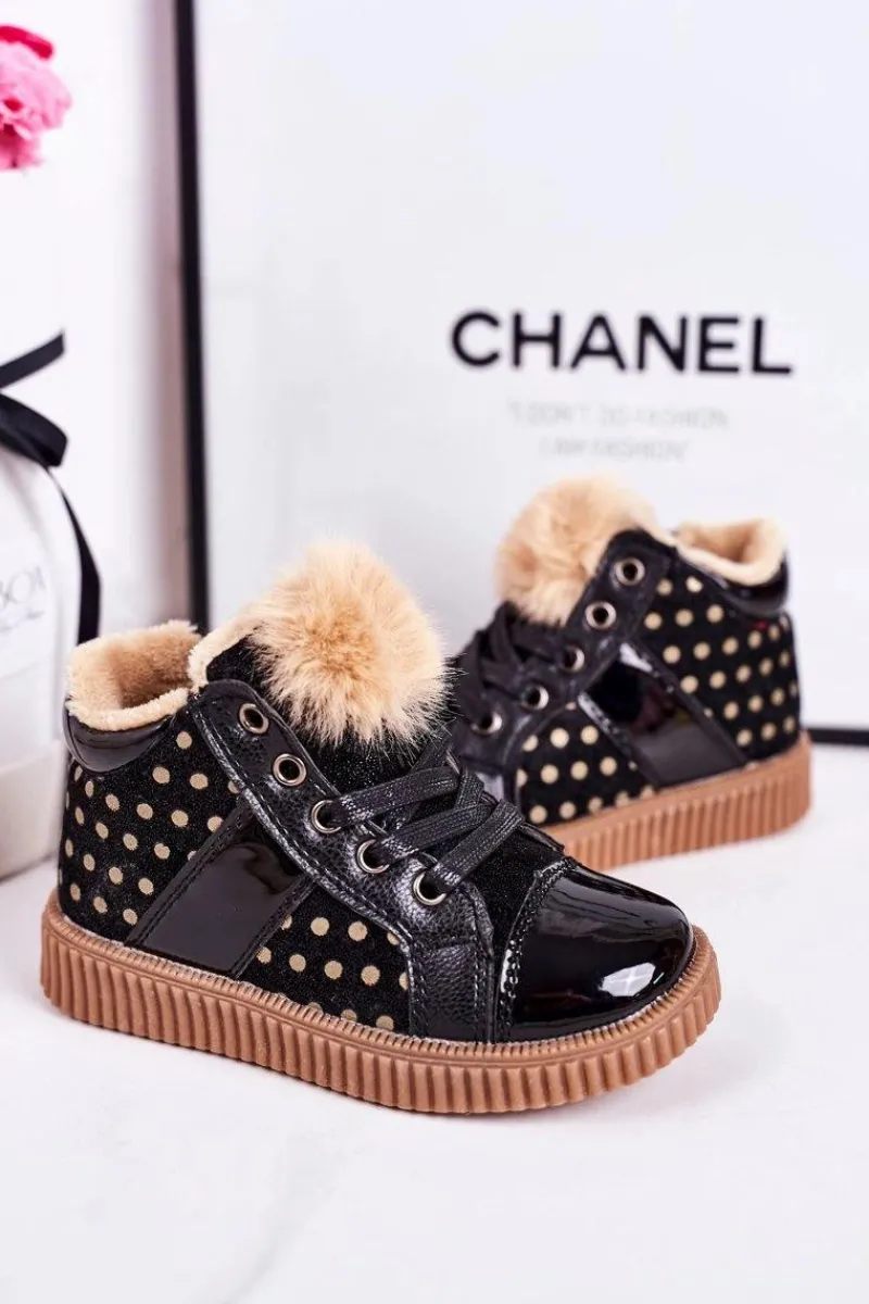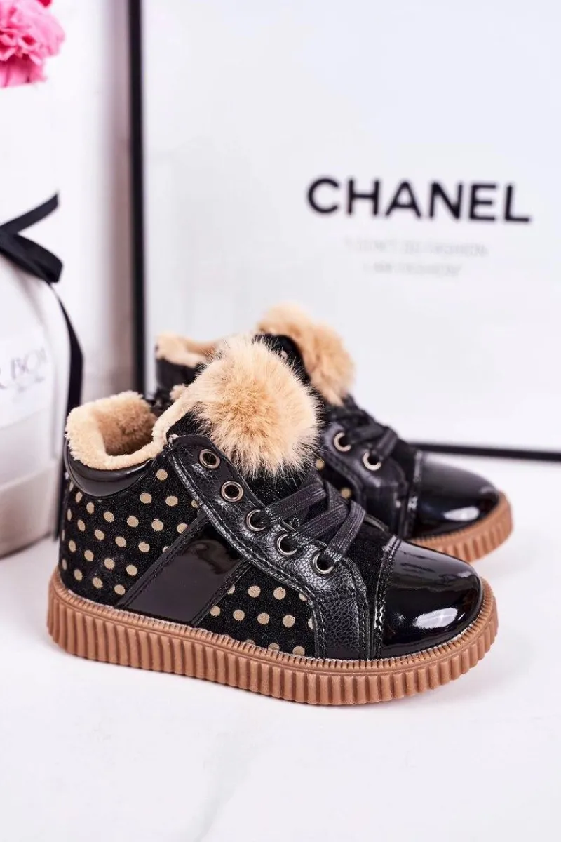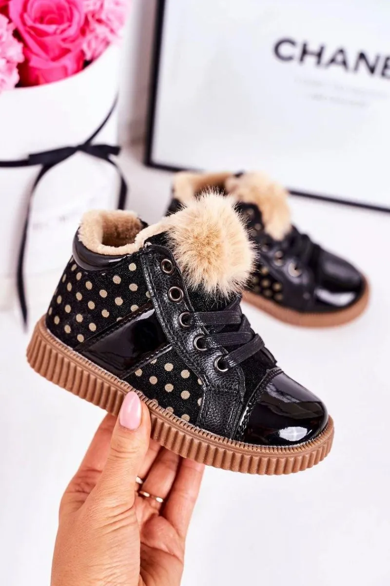 Hot Dziecięce Ocieplane Botki Trampki W Groszki Czarne Anastasia Dzieci Dziewczęce|Dziewczęce