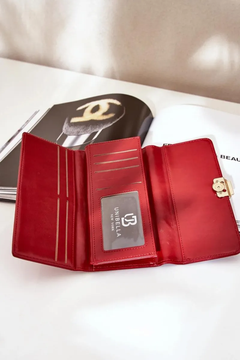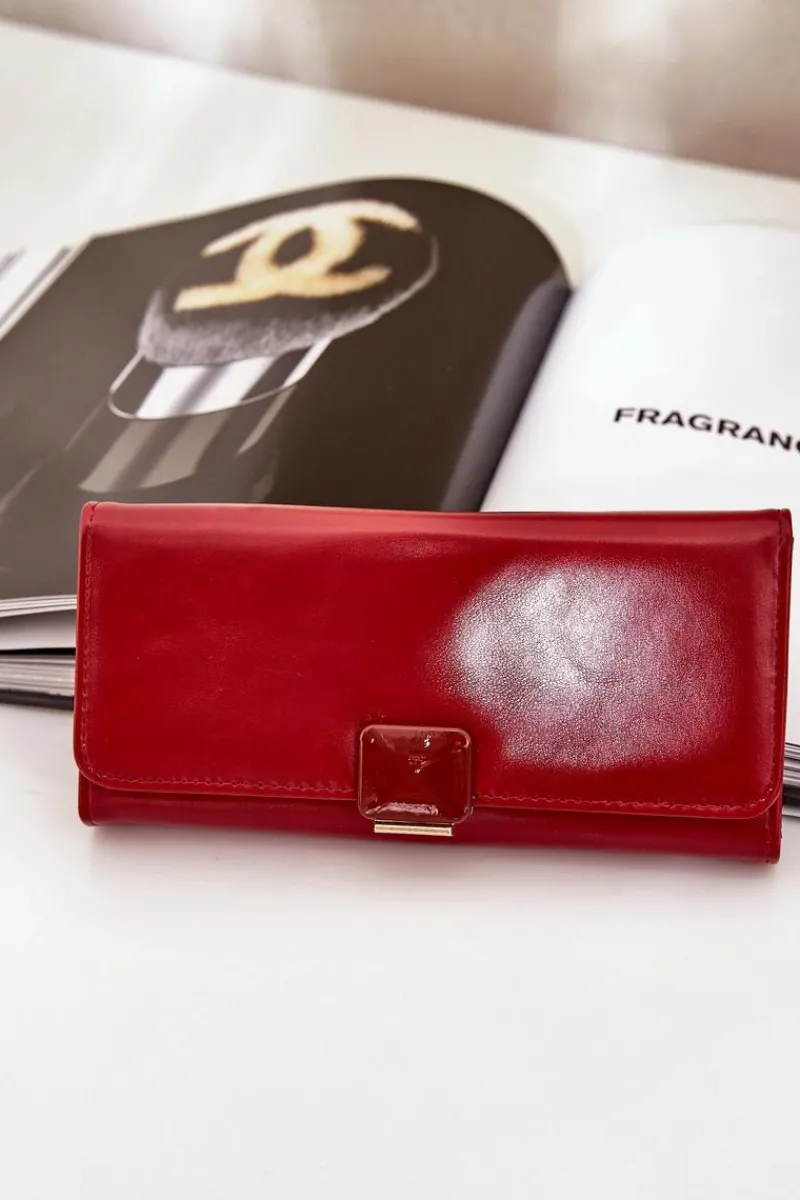 Stylowy damski portfel wykonany z eko skóry, zapinany na magnes. Wnętrze wyposażone w kieszeń na monety, przegródki na karty, miejsce na banknoty oraz fotografię. Elegancki i funkcjonalny, doskonały zarówno na co dzień, jak i jako prezent dla bliskiej osoby!