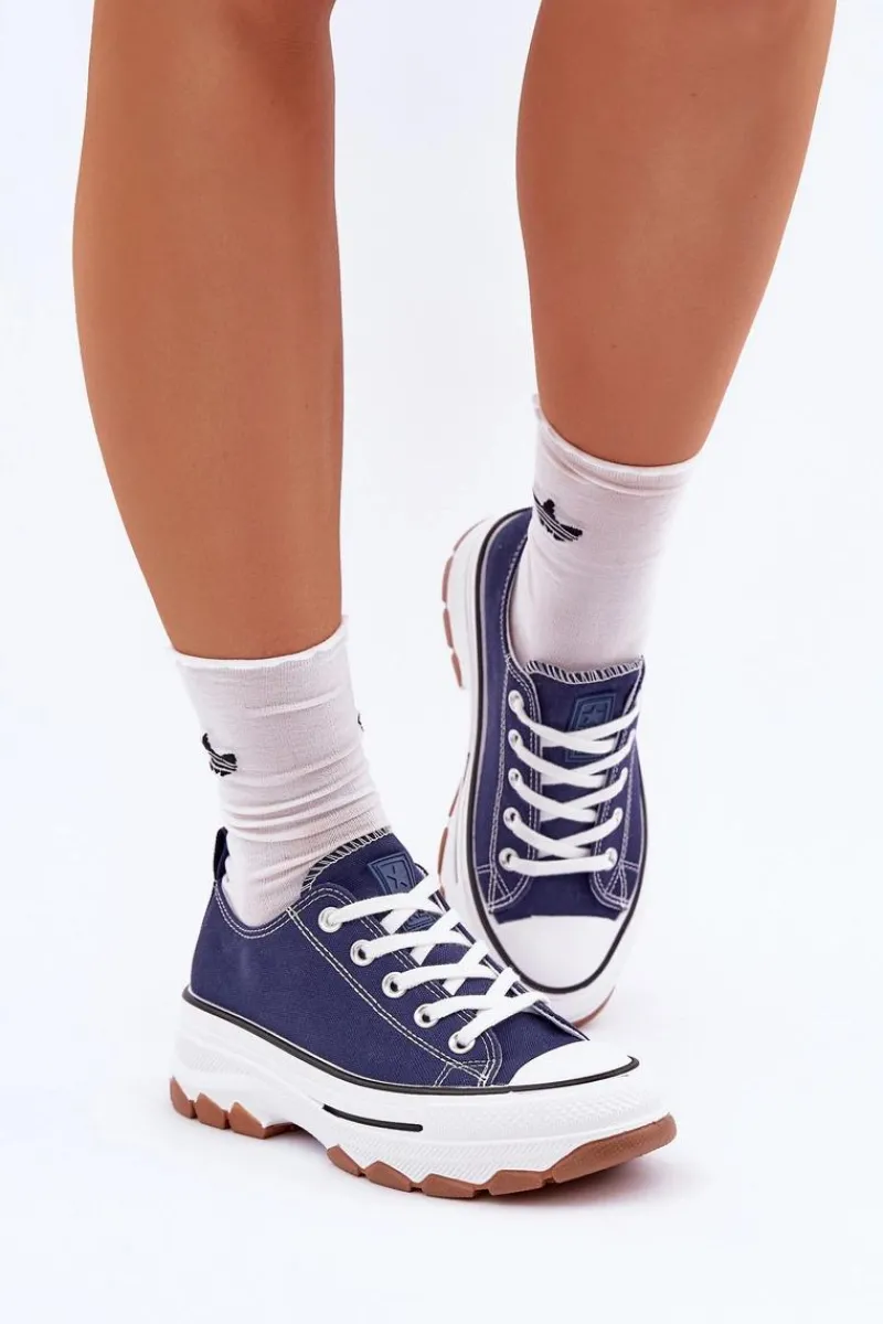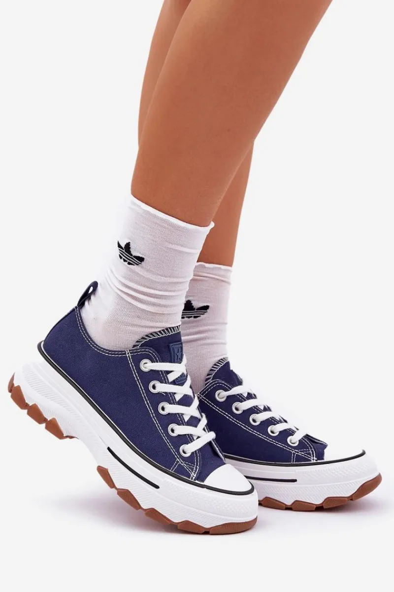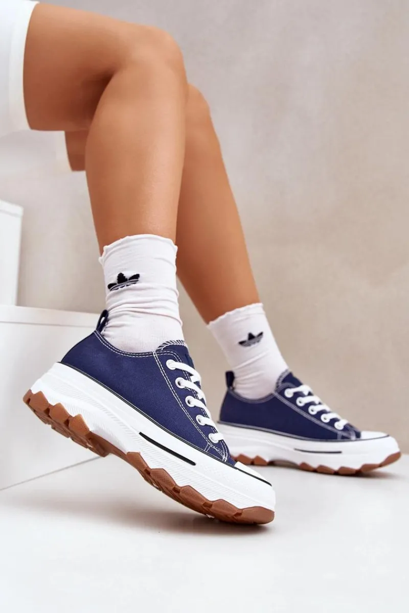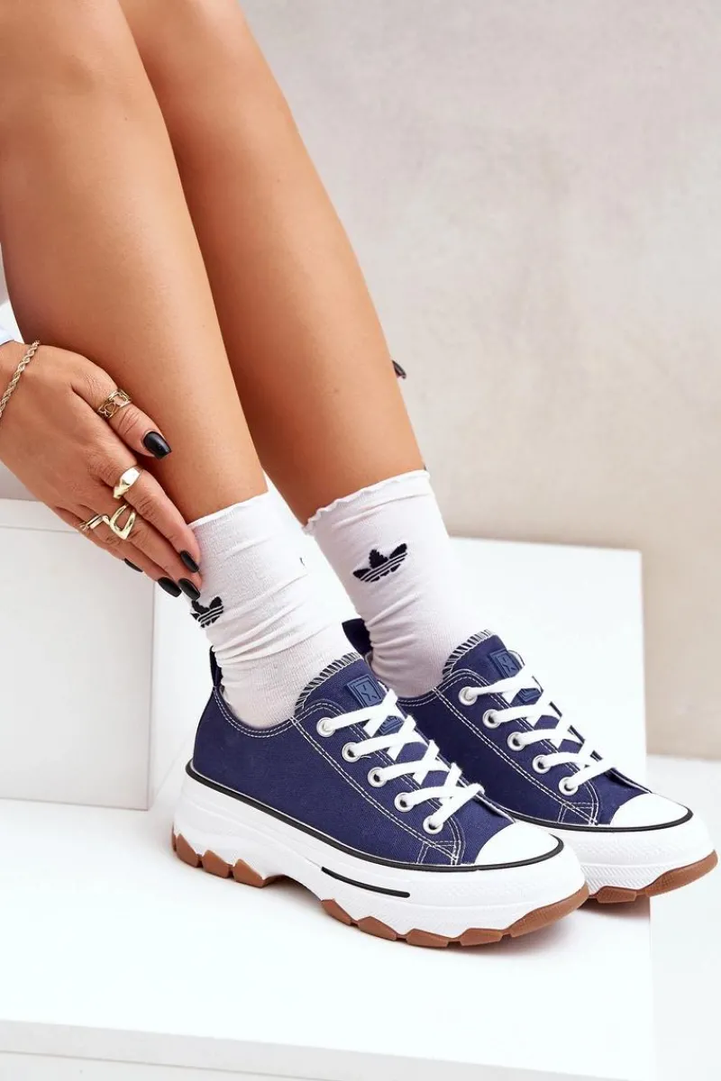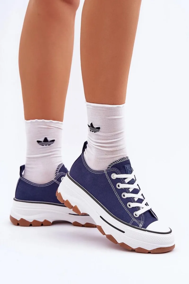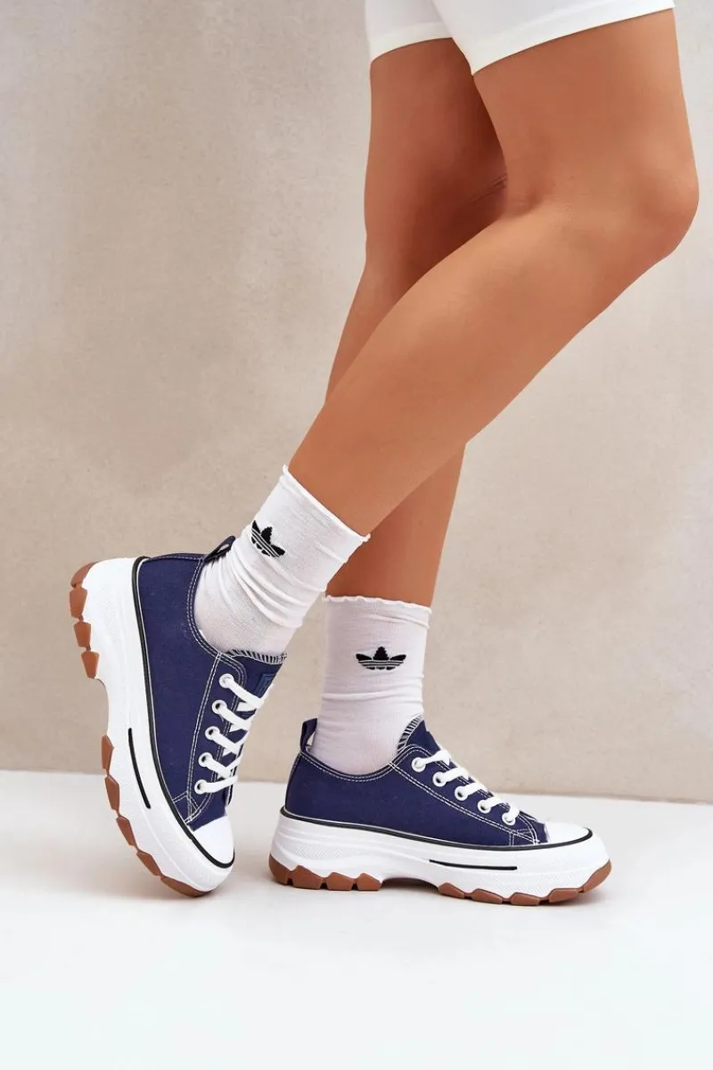 Hot Evento Niskie Trampki Damskie Na Platformie Granatowe Aradwin Niebieski