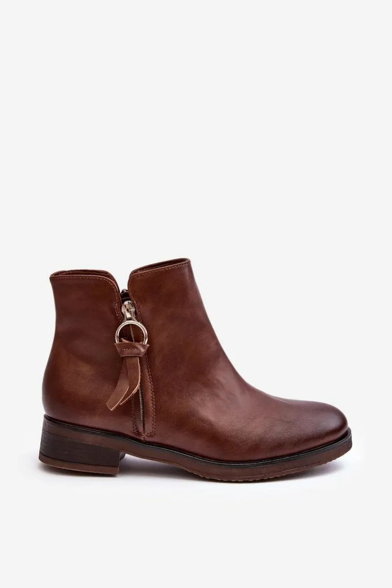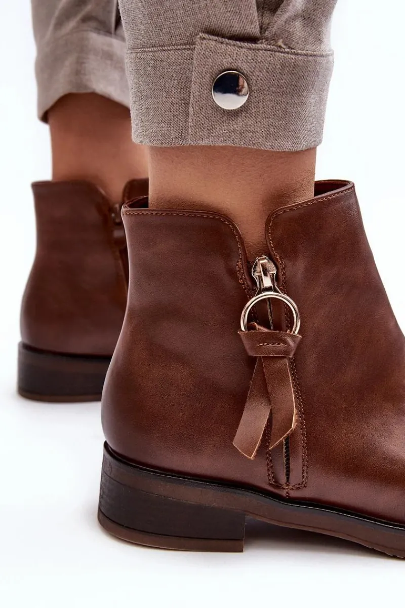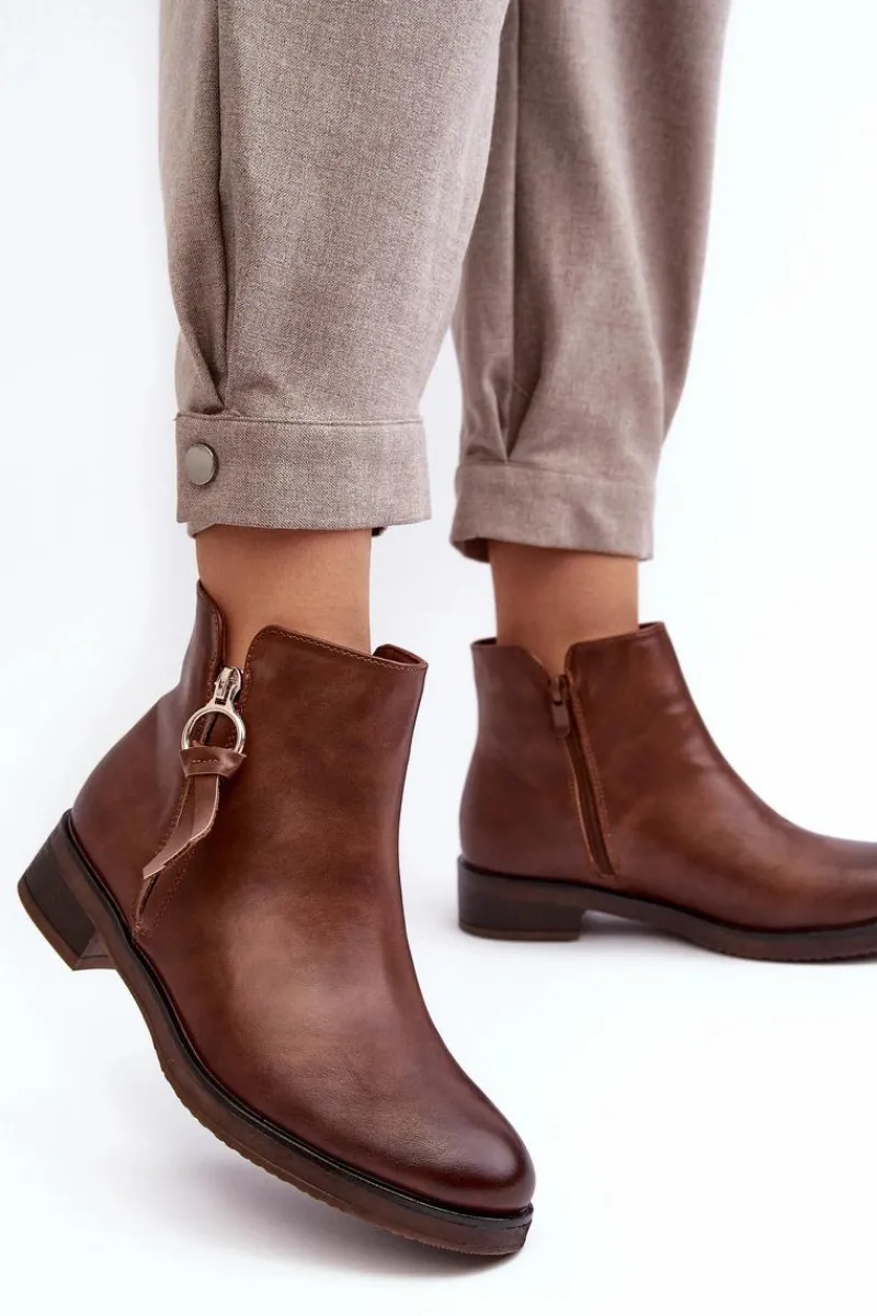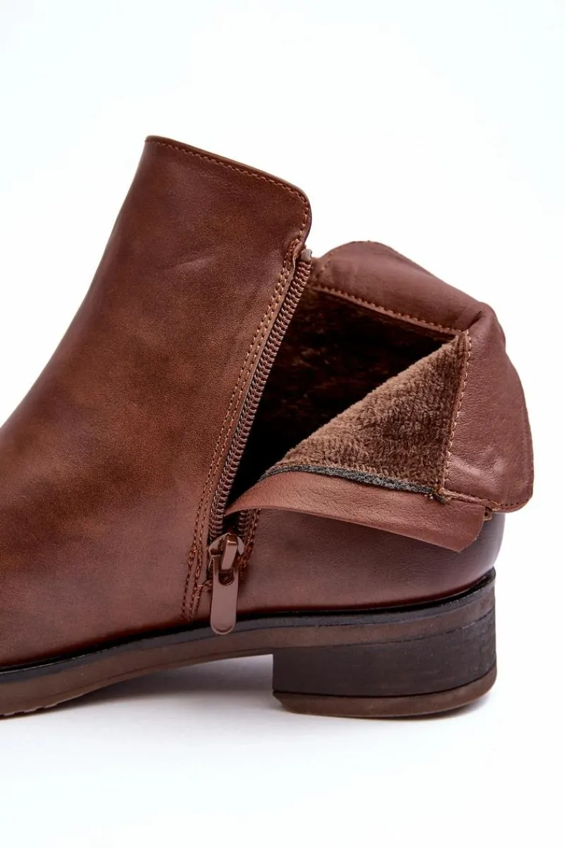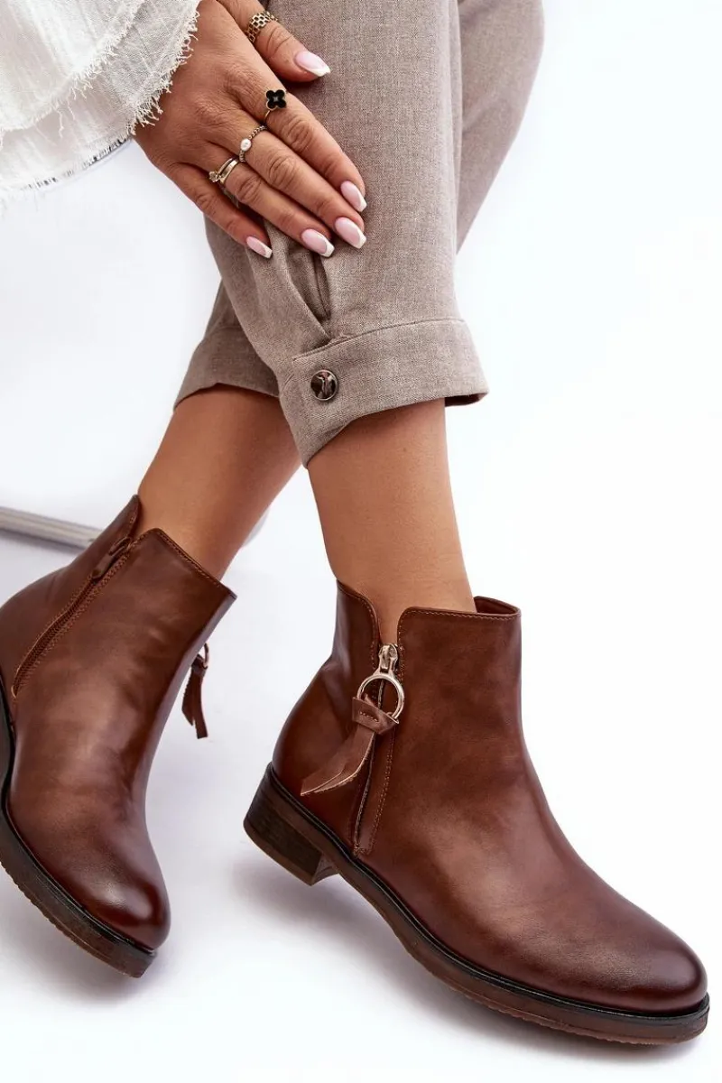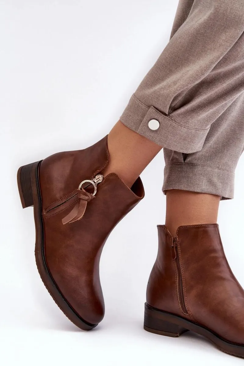 Damskie botki wykonane z eko skóry. Osadzone na płaskim obcasie. Cholewka jest zapinana na suwak po wewnętrznej stronie, natomiast drugi suwak jest ozdobny. Środek ocieplono miłym kocem obuwniczym. Model ten dodatkowo posiada usztywniany zapiętek. Koniecznie powinnaś je mieć! Przy wyborze rozmiaru prosimy sugerować się tabelą rozmiarów.