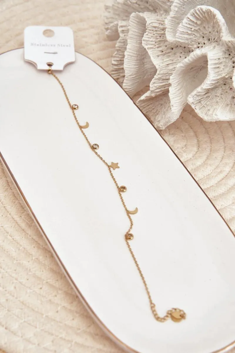 Hot Glam Chic Bransoletka Na Nogę Z Księżycami I Gwiazdką Złota