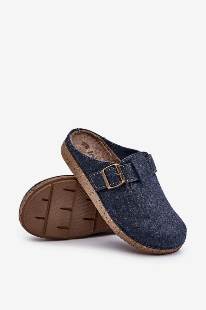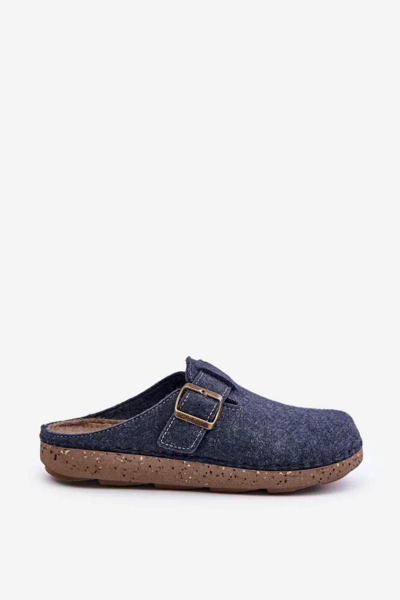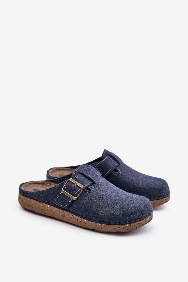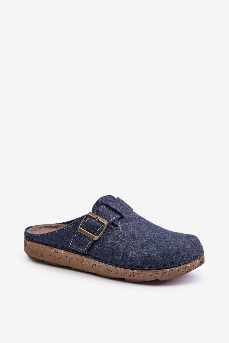 Hot INBLU Kapcie Męskie Z Klamrą Klapki Profilaktyczne MT000012 Granatowe Niebieski