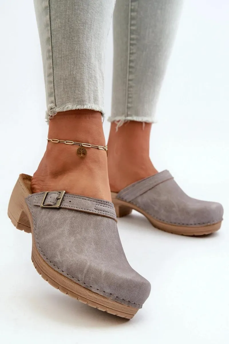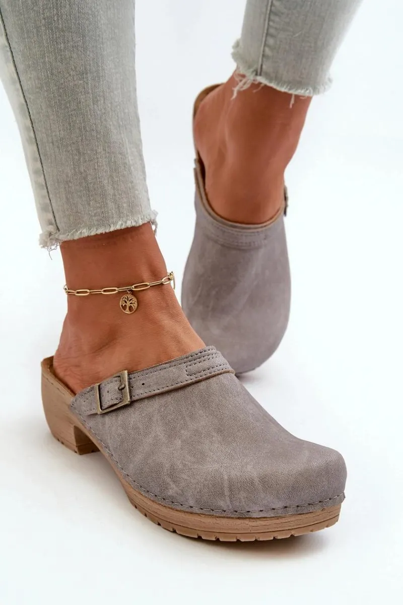 Klapki damskie od marki INBLU. Wykonane z wysokiej jakości skóry ekologicznej. Osadzone na niskim obcasie. Ozdobione paseczkiem z klamrą. Wkładka COMFORT ANATOMICO jest profilowana, dostosowana do kształtu anatomicznego stopy, wykonana z miękkiej, naturalnej skóry. Spód wykonany z lekkiego i elastycznego tworzywa – zapewnia sprężystość i bardzo dobre przenoszenie obciążeń na podłoże. Przy wyborze rozmiaru prosimy sugerować się tabelą rozmiarów.