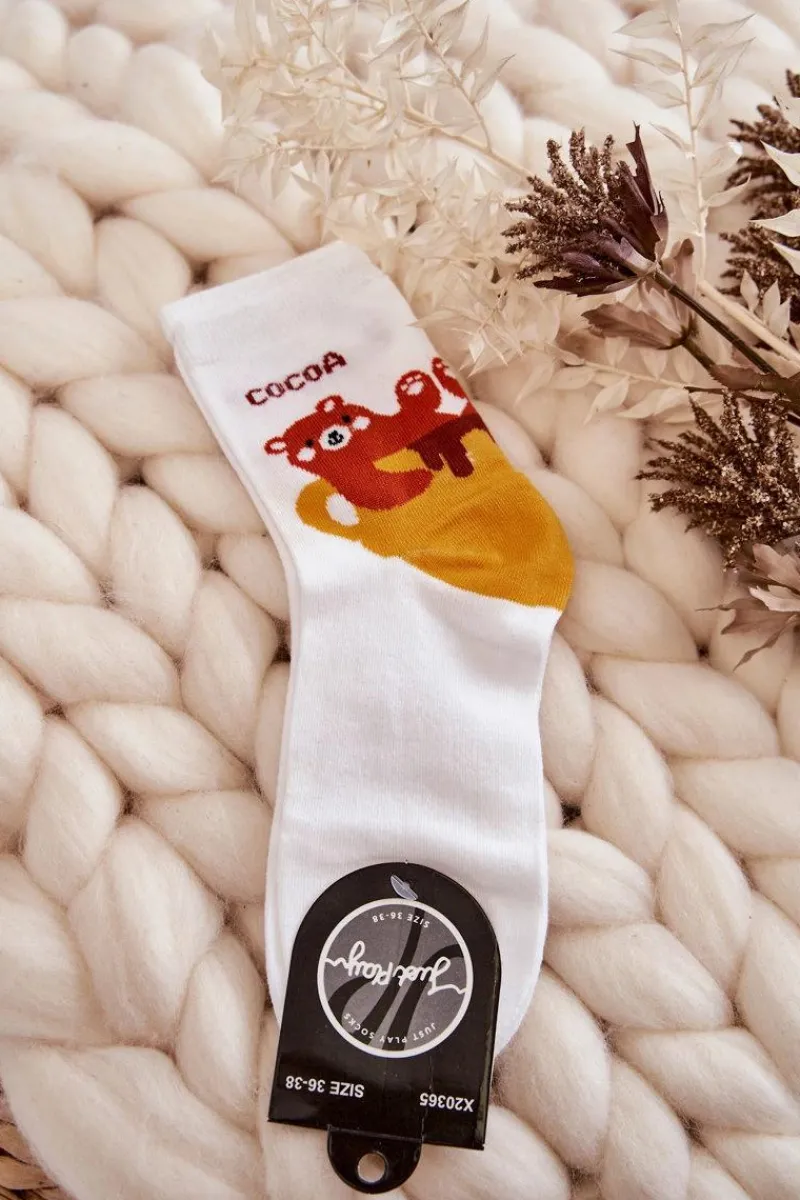 Damskie skarpetki zostały wykonane z bawełnianego materiału. Posiadają śmieszny wzór ze zwierzątkiem w filiżance. Model komfortowy w użytkowaniu. Skarpetki te posiadają ściągacz. Skarpetki świetnie sprawdzą się także na urodzinowy czy imieninowy prezent dla bliskiej osoby. Sprawdź także pozostałe modele skarpetek!